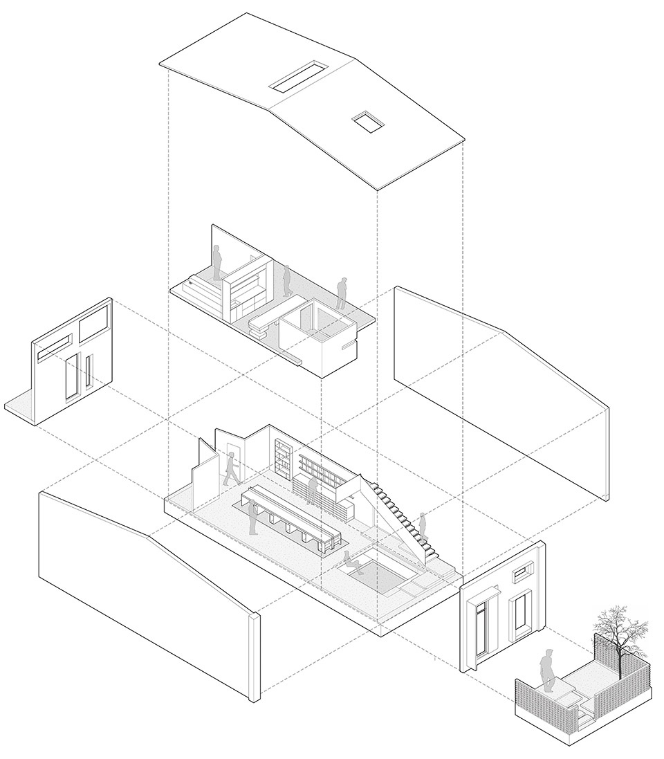 光线处理:我们利用软件模拟了原有建筑室内空间在被太阳光照射的情况,根据模拟情况,我们在前后墙面、屋顶上增加几处大小不同的开口,保证室内有均匀的自然采光以及通风性能。在午后的阳光对室内空间的照射下,营造出一种温馨而又自然的空间氛围,并且随着时间及太阳高度的变化,室内光线缓缓移动,呈现光线上的“通透”。