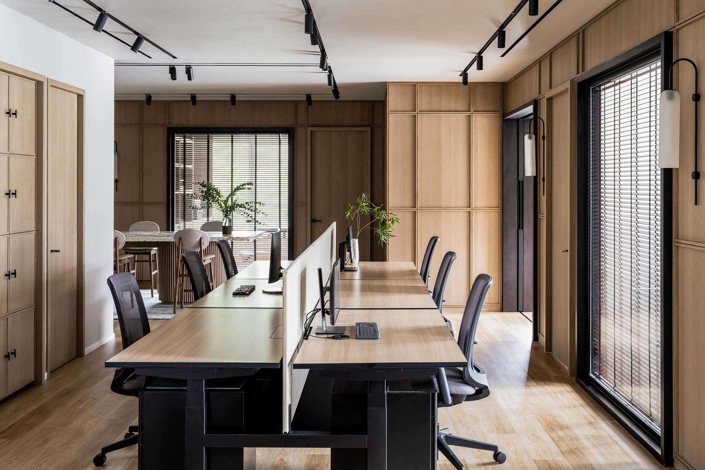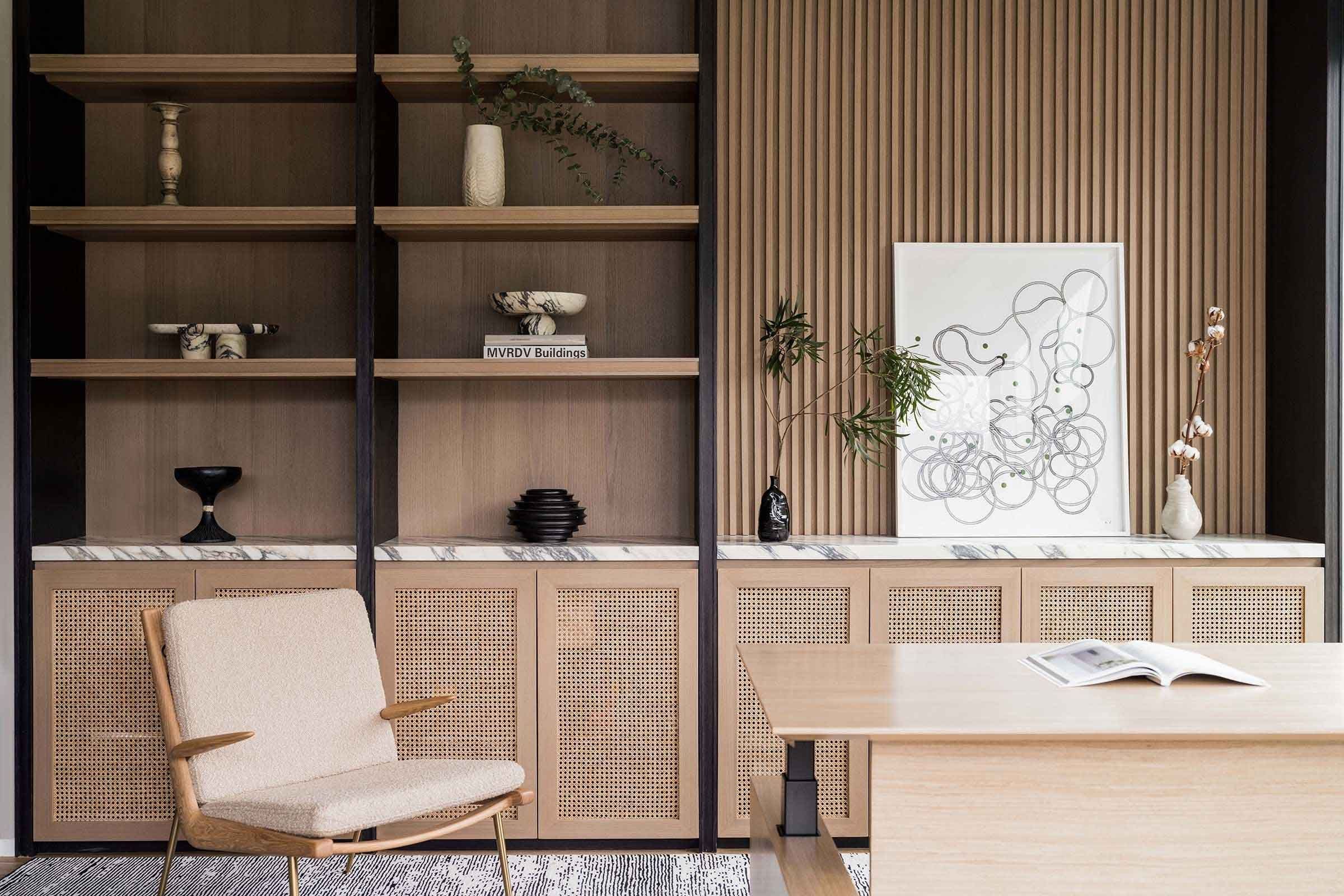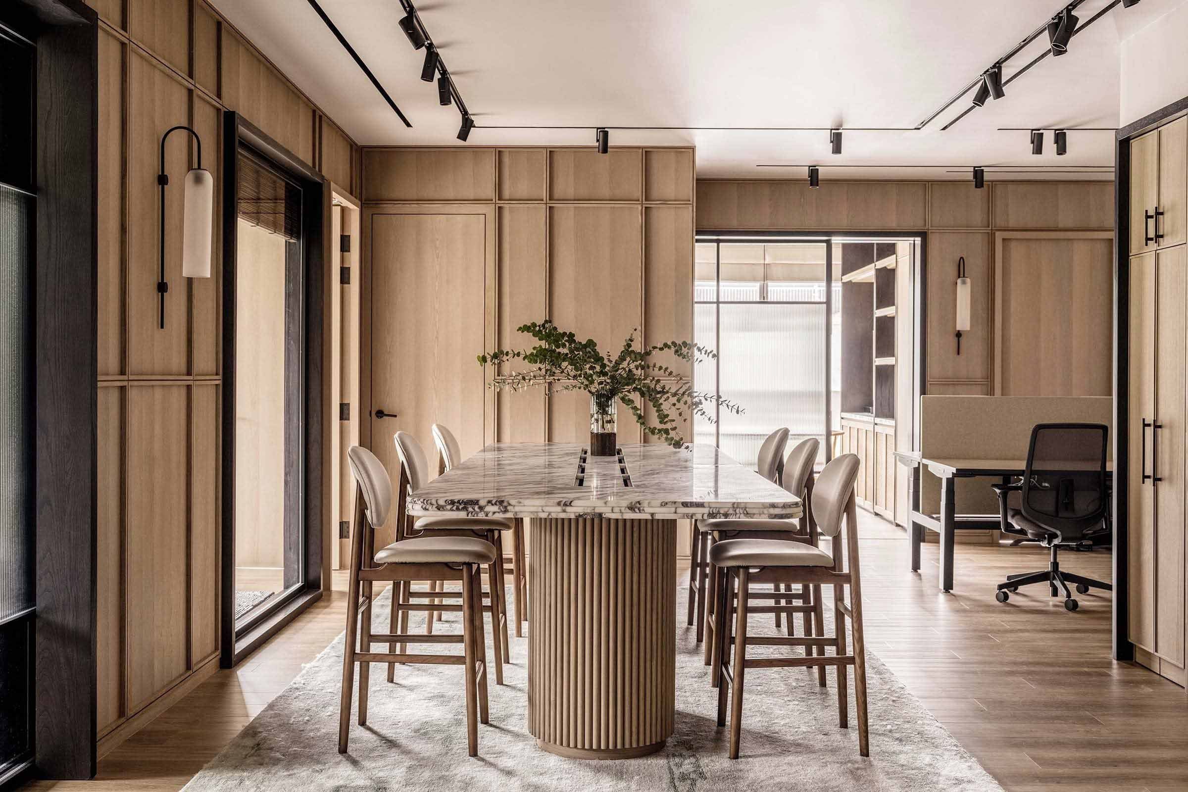 设计团队将这些怀旧元素融入到办公空间中。墙壁上是精致的木板,为房间注入了永恒的优雅和熟悉的氛围,柳条和藤制扶手椅的结合进一步巩固了与家庭的联系。通过和谐地整合这些现代而怀旧的材料,唤起珍贵的回忆,该设计不仅提供了一个实用的工作空间,而且还证明了几代人之间持久的纽带。它概括了家庭之爱的本质,并强调了创造空间的重要性,同时促进生产力和保存珍贵的记忆。