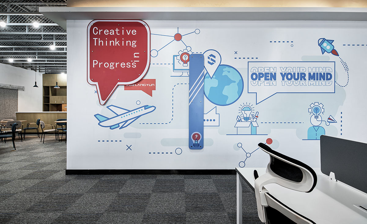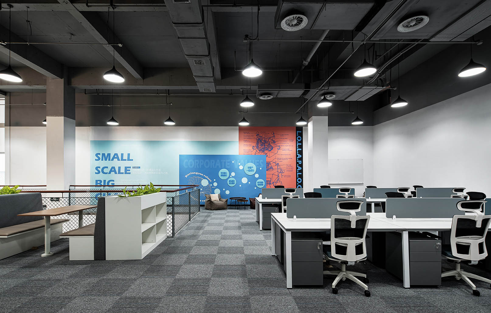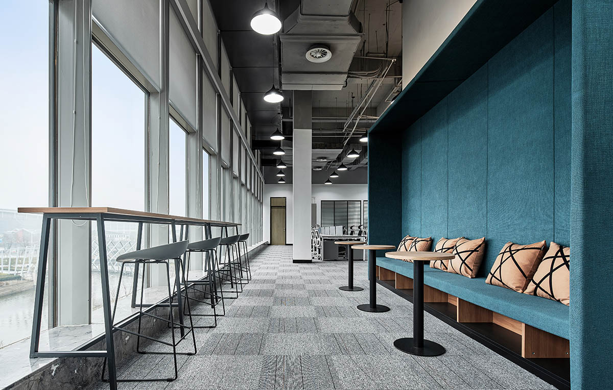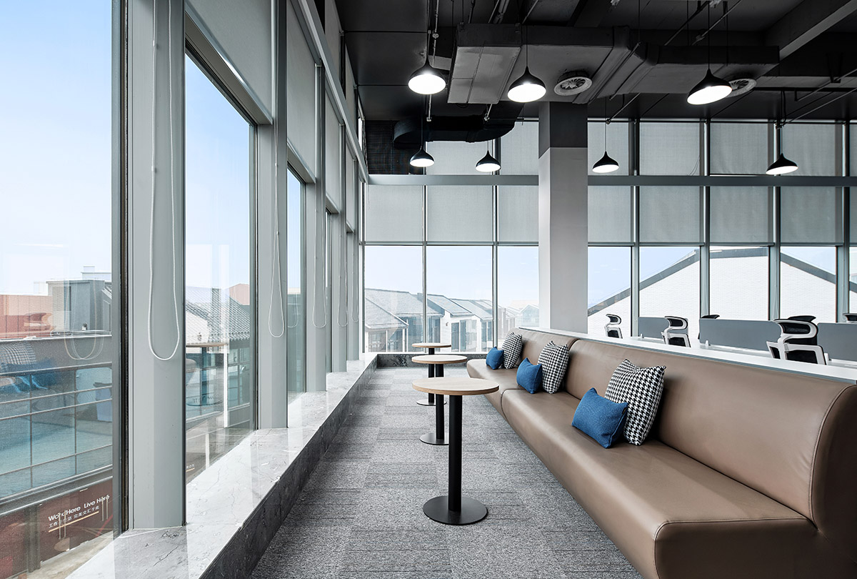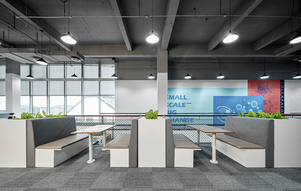 大面积的灰色地坪,原木材质,线型灯,乃至喷绘成白色的裸露电线,点点滴滴无不诉说着空间的高级。办公环境,本身就该是一种态度。