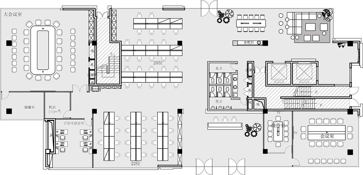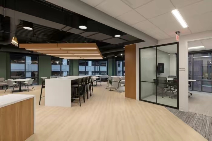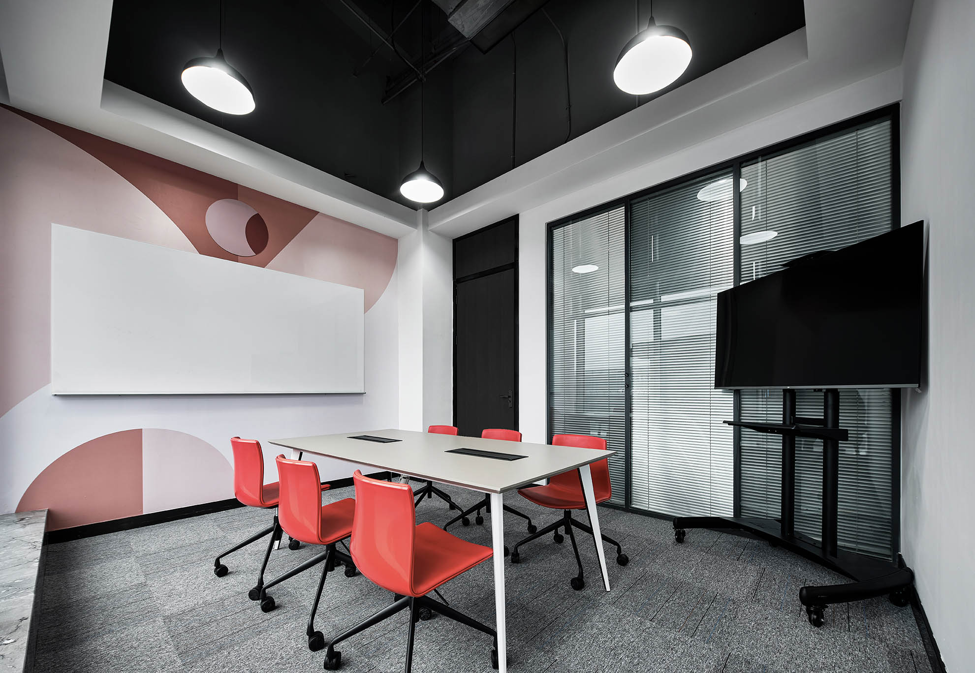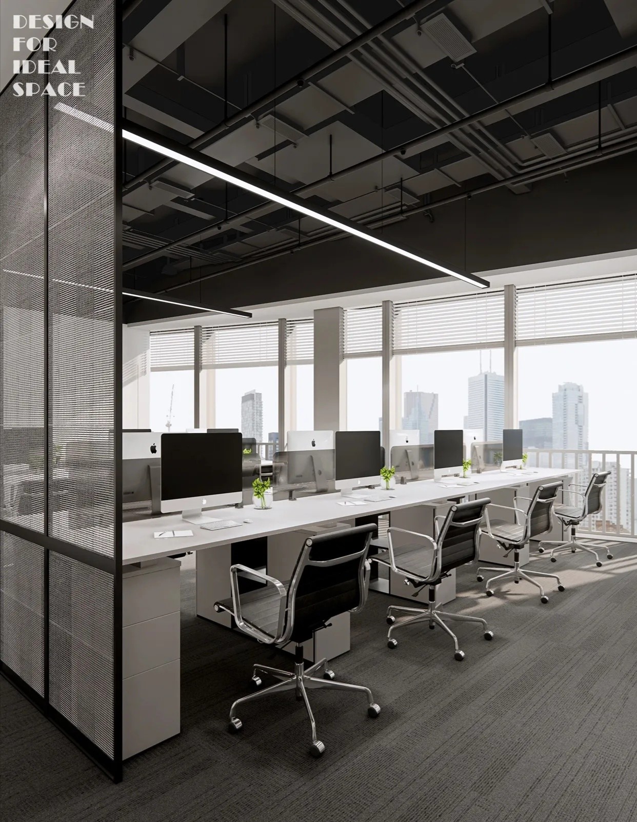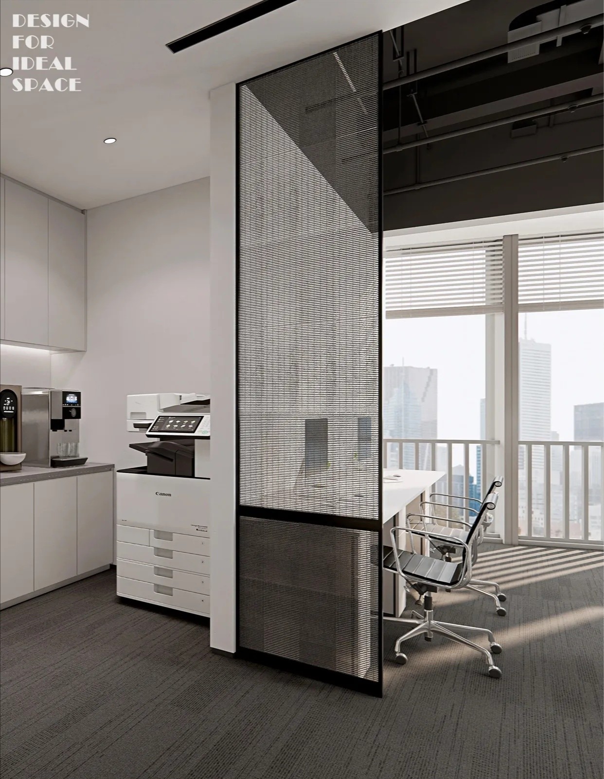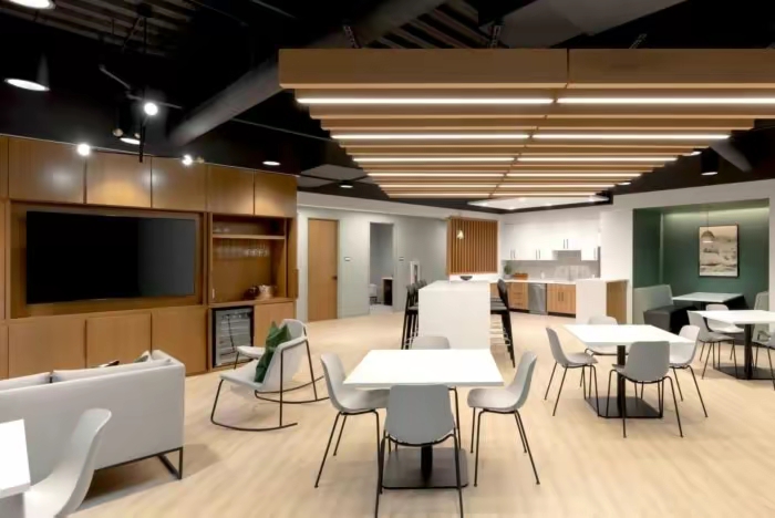 大面积的灰色地坪,原木材质,线型灯,乃至喷绘成白色的裸露电线,点点滴滴无不诉说着空间的高级。办公环境,本身就该是一种态度。