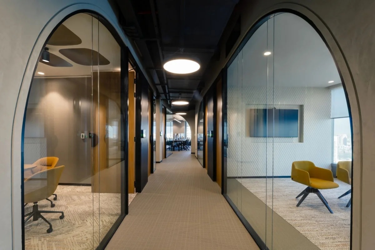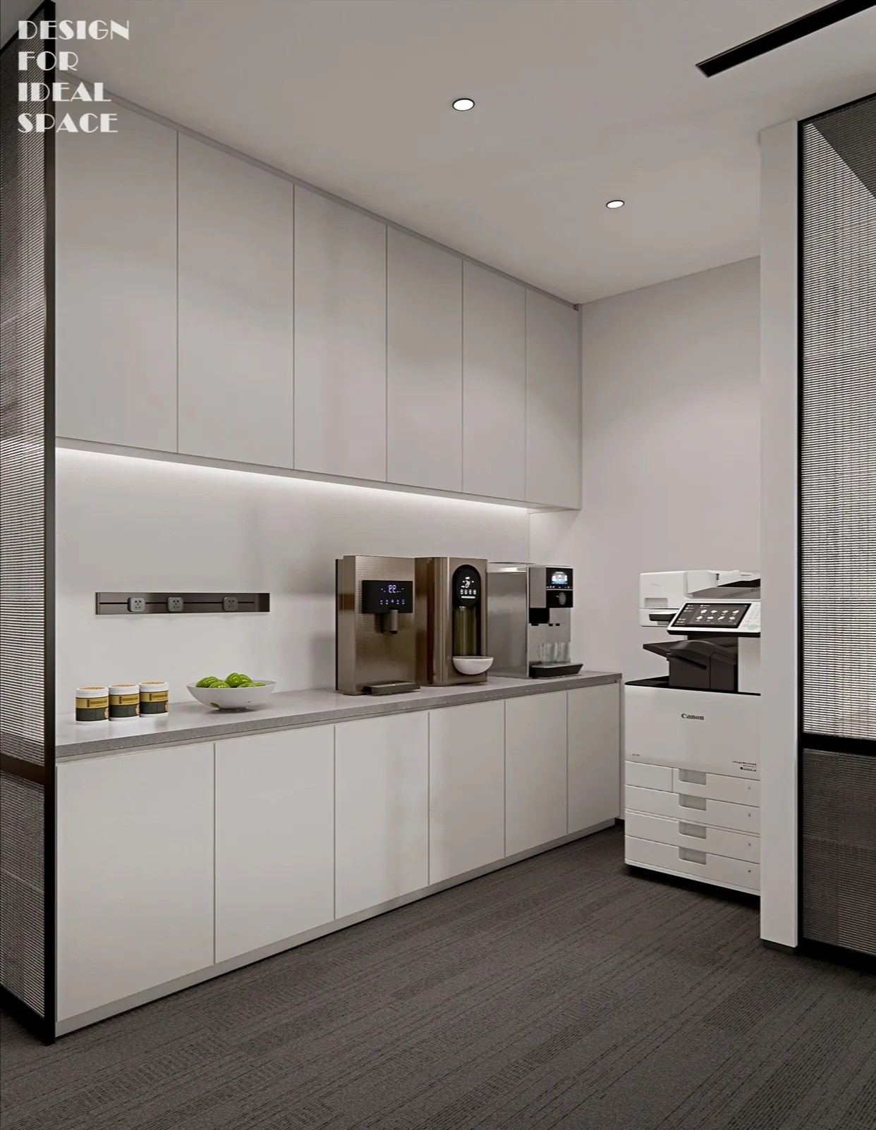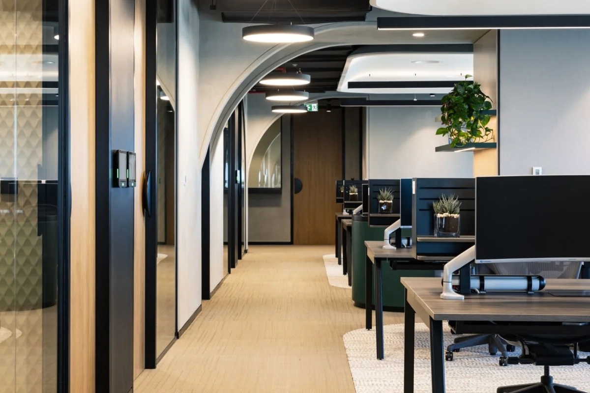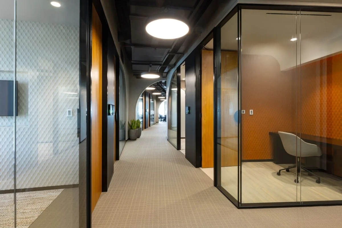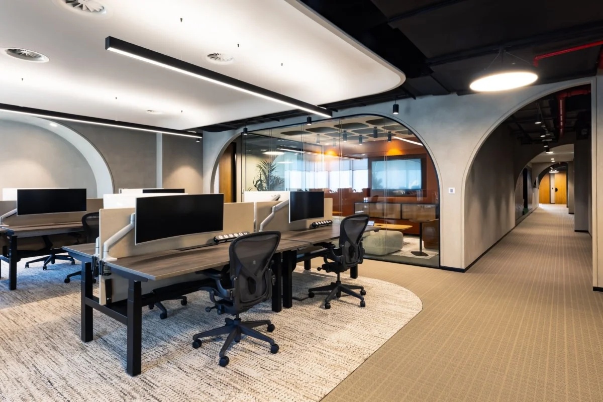 大面积的灰色地坪,原木材质,线型灯,乃至喷绘成白色的裸露电线,点点滴滴无不诉说着空间的高级。办公环境,本身就该是一种态度。
