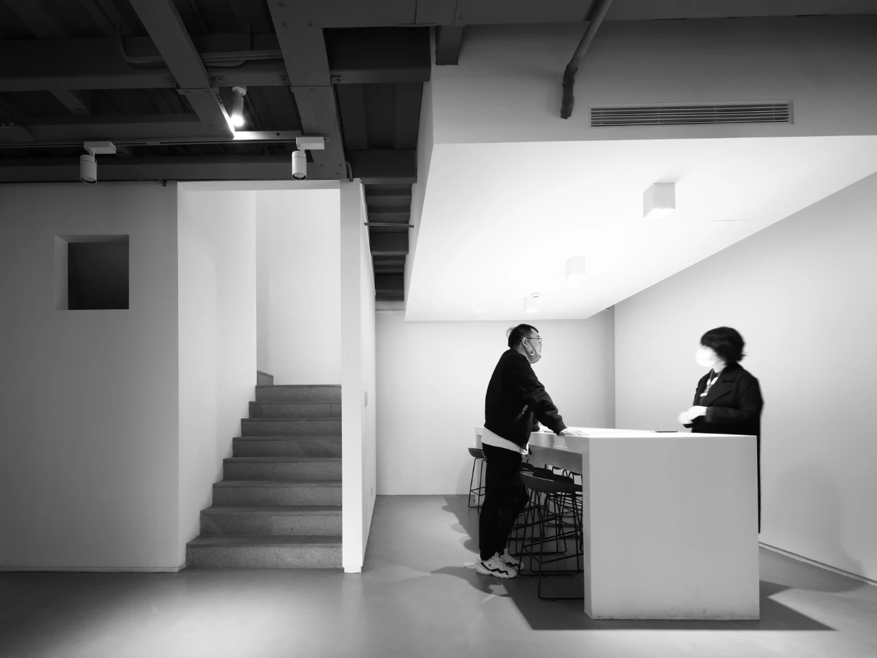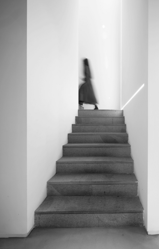 空间委托白色进行扩展,仿佛思维的边界不可寻觅,又通过立体感的几何动线,简洁分明地划分出隐秘性。