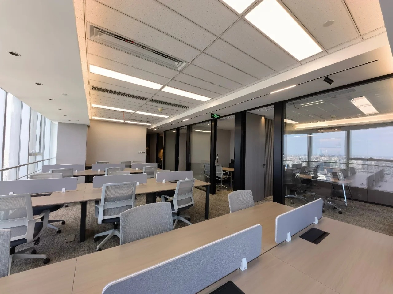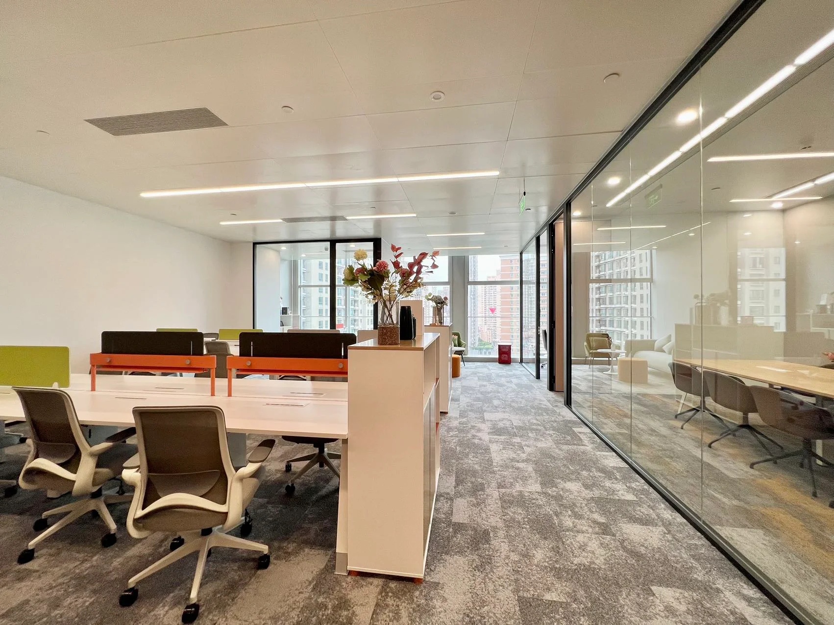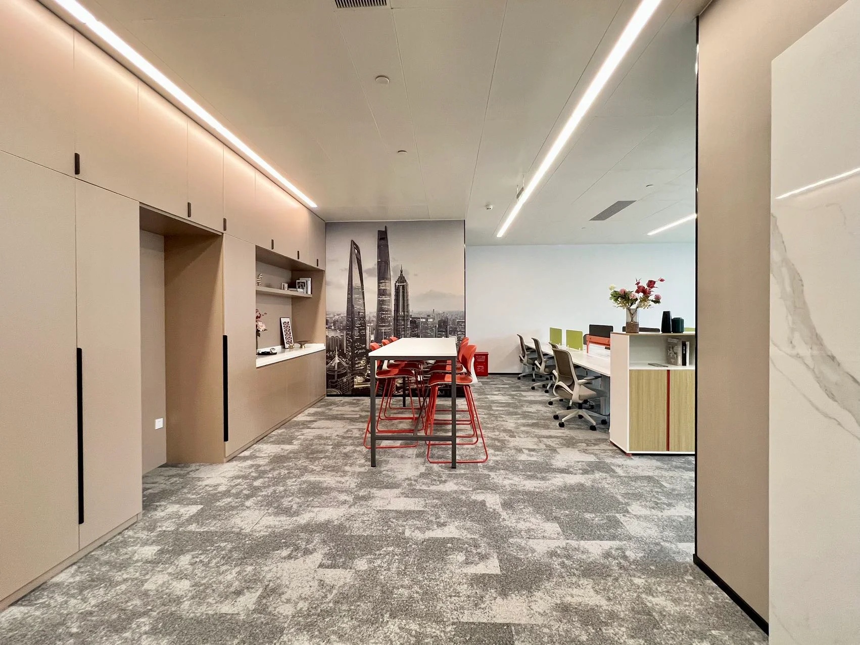办公室内空间整体以白色为基调,红色作为点缀。我们希望以简洁的设计语言和纯粹的颜色搭配呈现更耐看的办公环境。自由开放是这次设计的核心。整个办公室,不同区域有不同形式的座位方式,员工可以自由选择自己喜欢的工位,以更好的激发员工的工作效率。