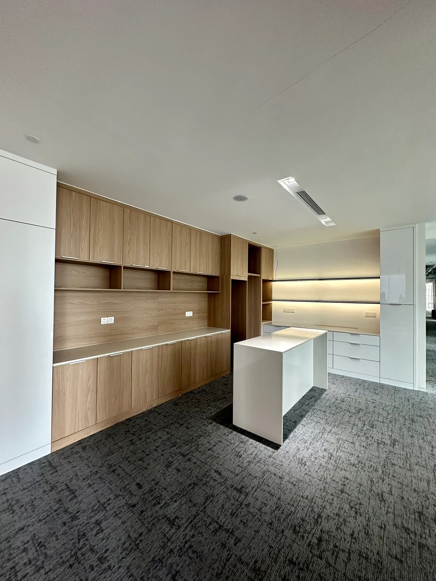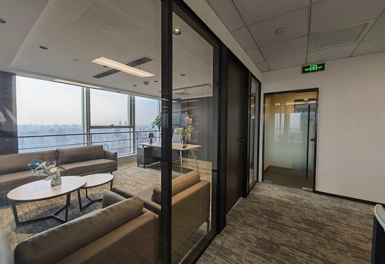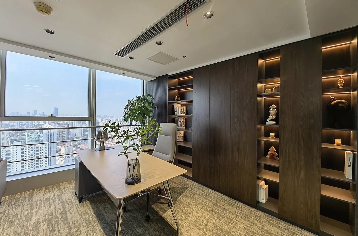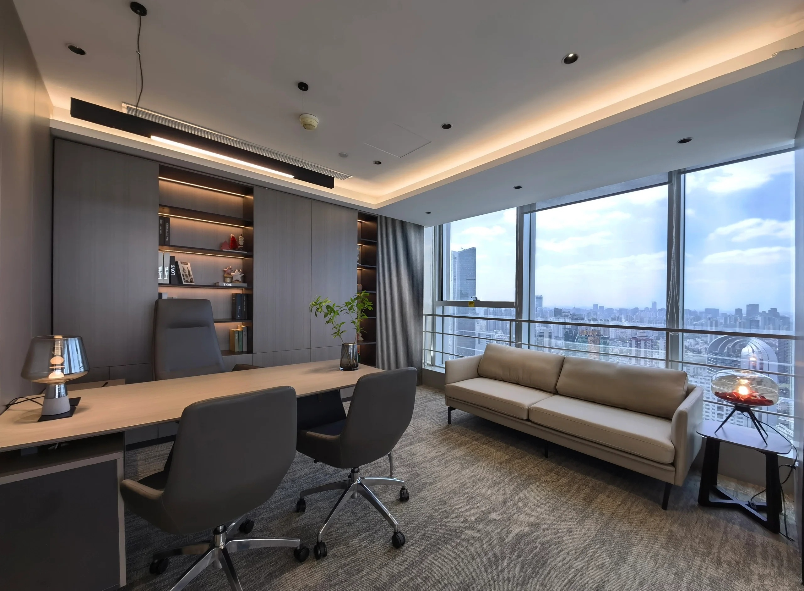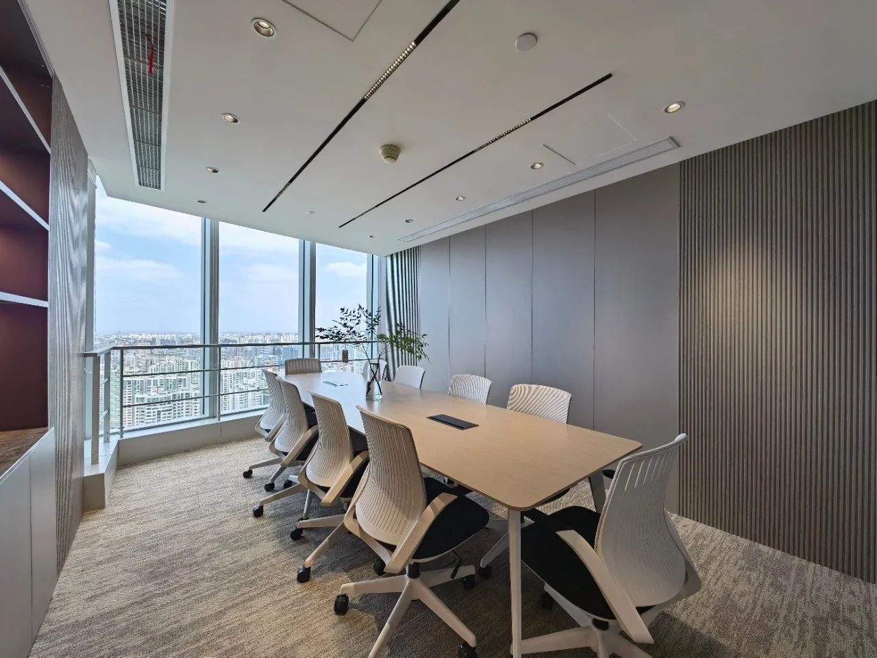 会议室和水吧是空间的核心筒,由此形成一个环形的动线。客人与员工进入公司分别有不同的路径,员工通过刷卡可以从侧面入口更有效的进入办公区域。来访的客人则需要环绕会议室外围一圈进入公司区域,这样的设计,能让客人沿途参观到公司项目和部分工艺与材料的展示,让到访者更好地了解公司的各方面业务能力。