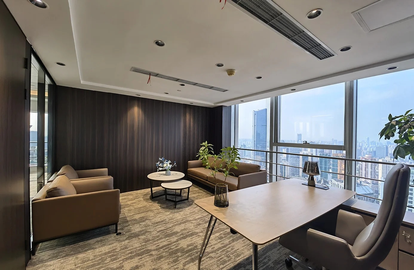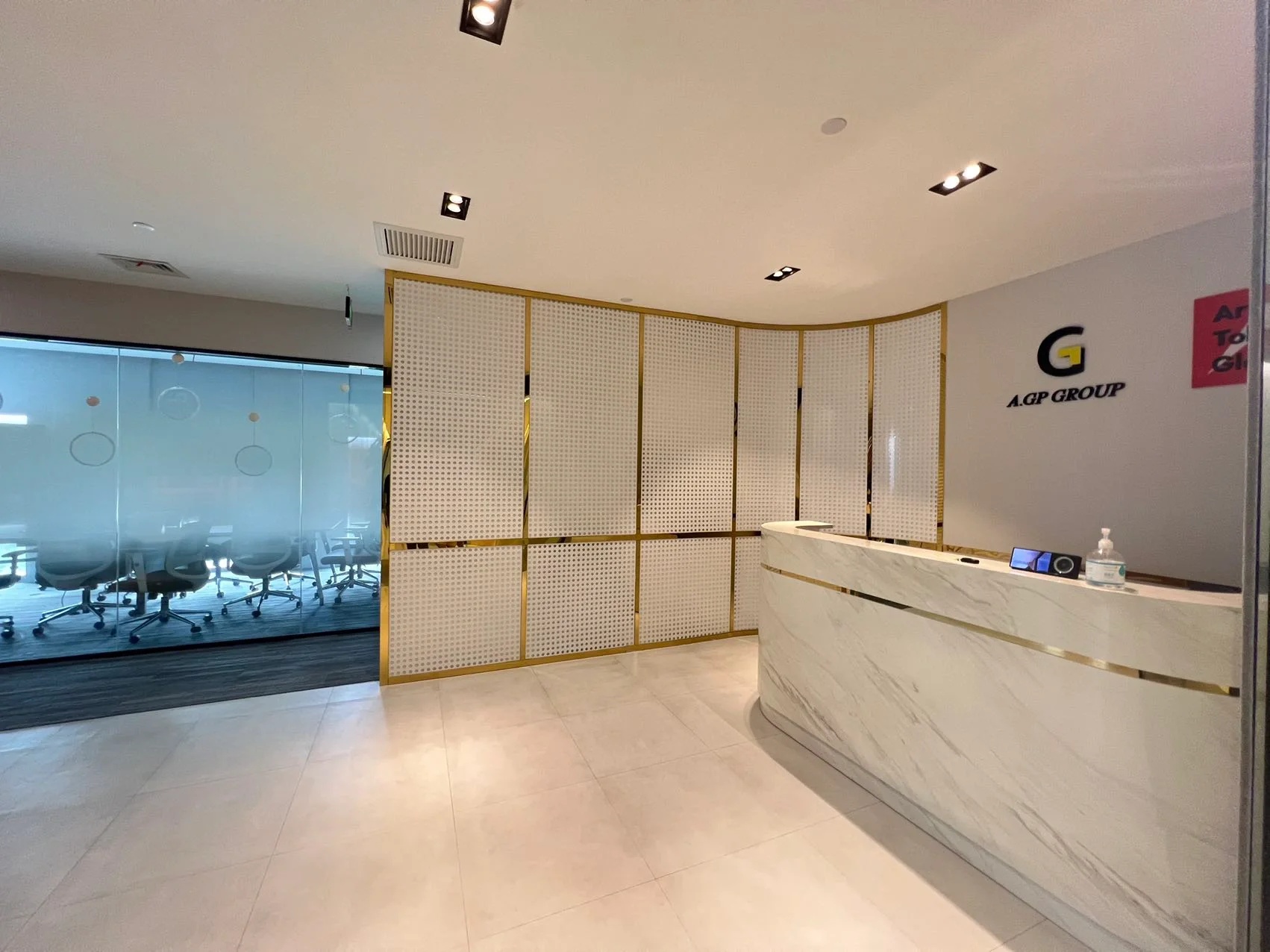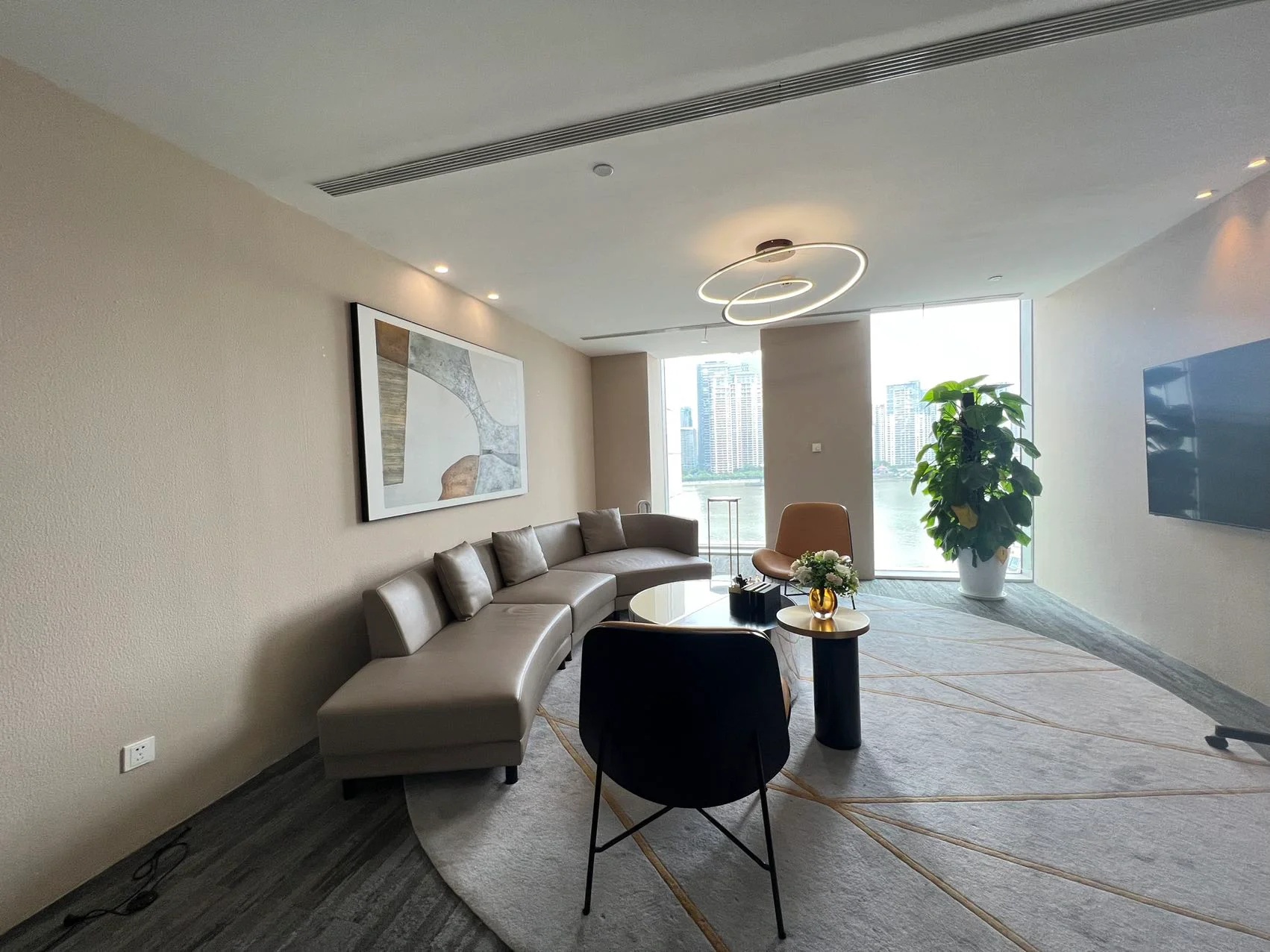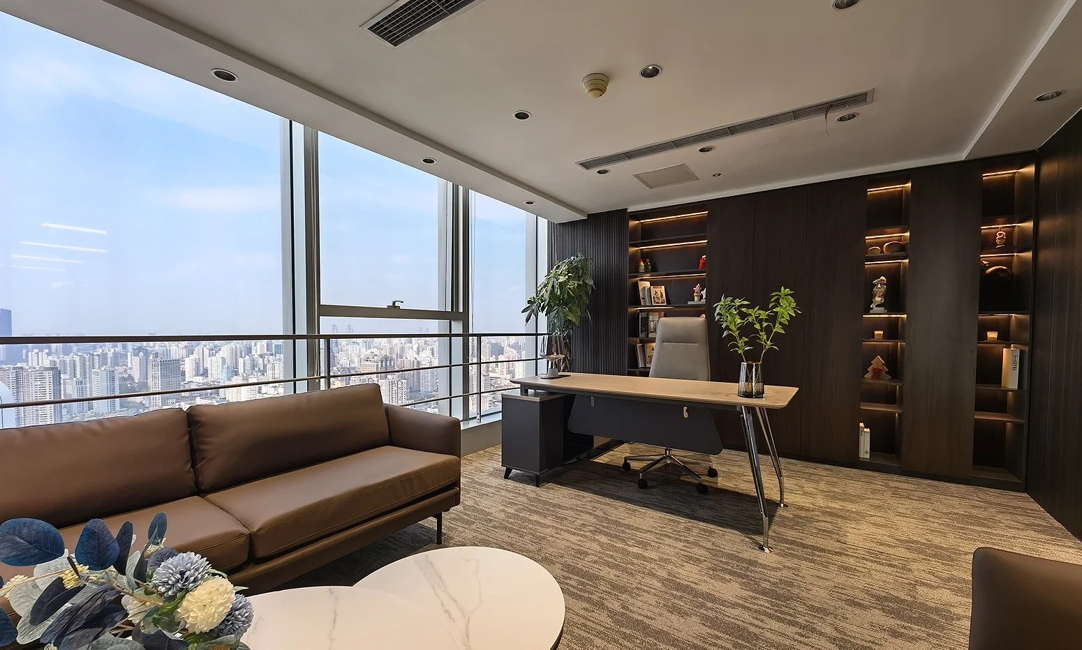 会议室和水吧是空间的核心筒,由此形成一个环形的动线。客人与员工进入公司分别有不同的路径,员工通过刷卡可以从侧面入口更有效的进入办公区域。来访的客人则需要环绕会议室外围一圈进入公司区域,这样的设计,能让客人沿途参观到公司项目和部分工艺与材料的展示,让到访者更好地了解公司的各方面业务能力。