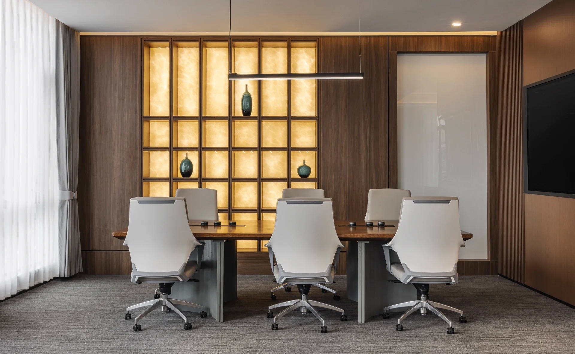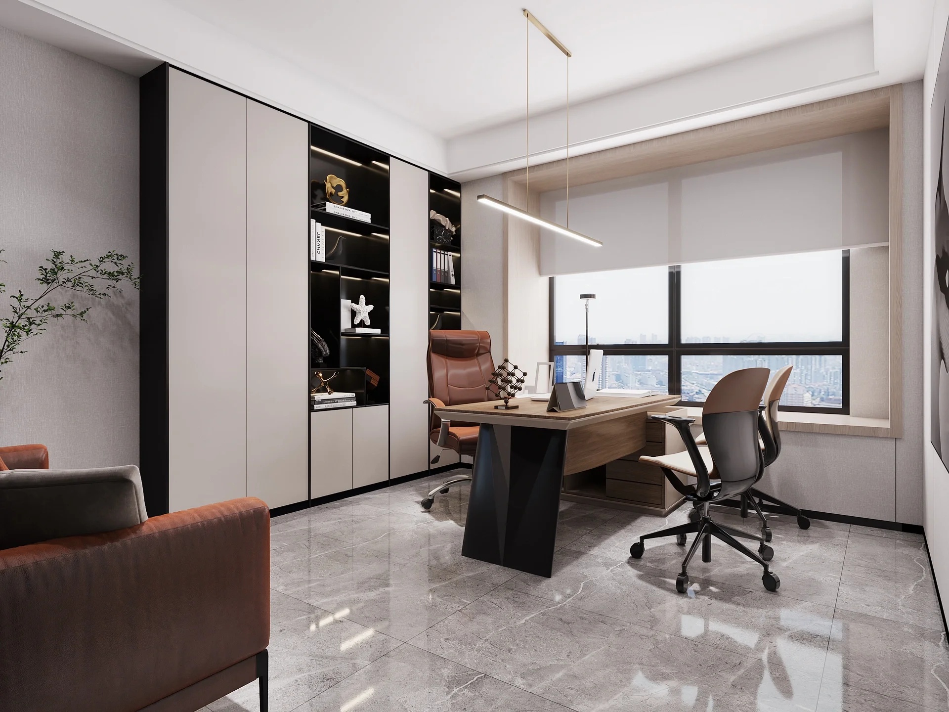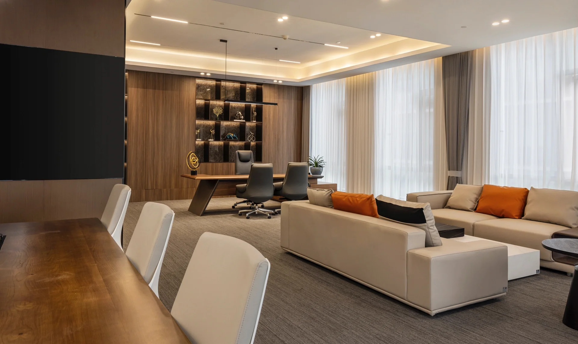 经理办公室采用了半开放式的设计,采用少量的栅栏作为与外界的区隔。同时每个经理室都是一个独立的盒子造型,创造了一种灵活性、连通性且与空间相融合。