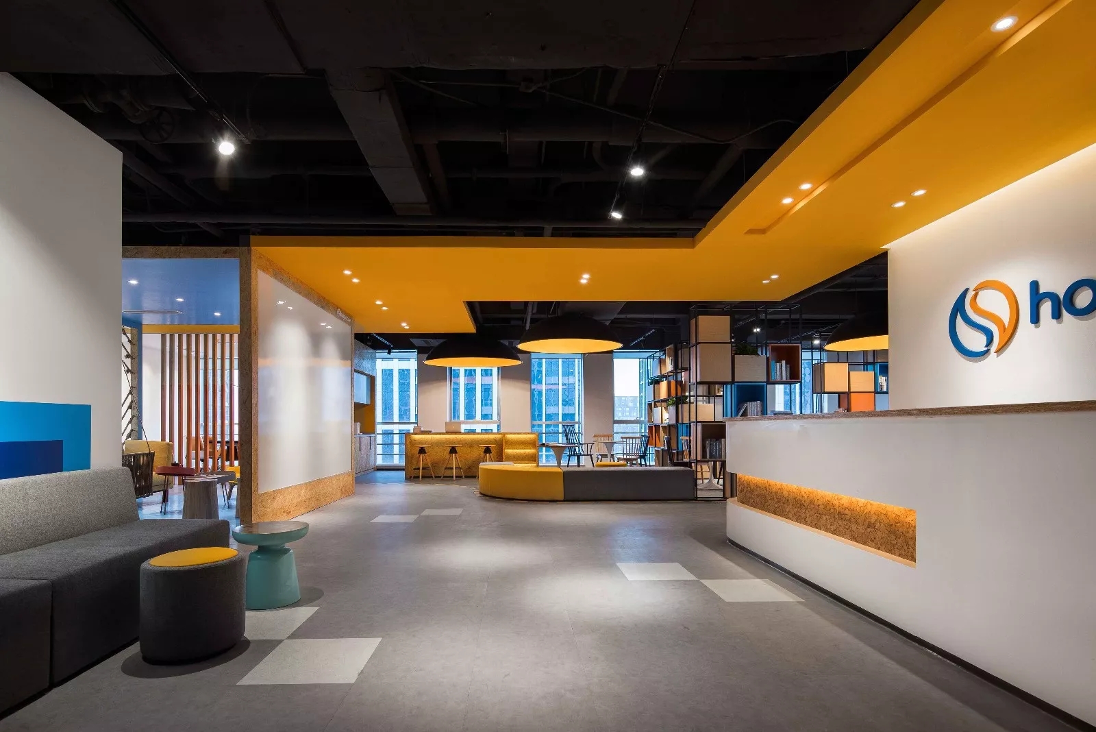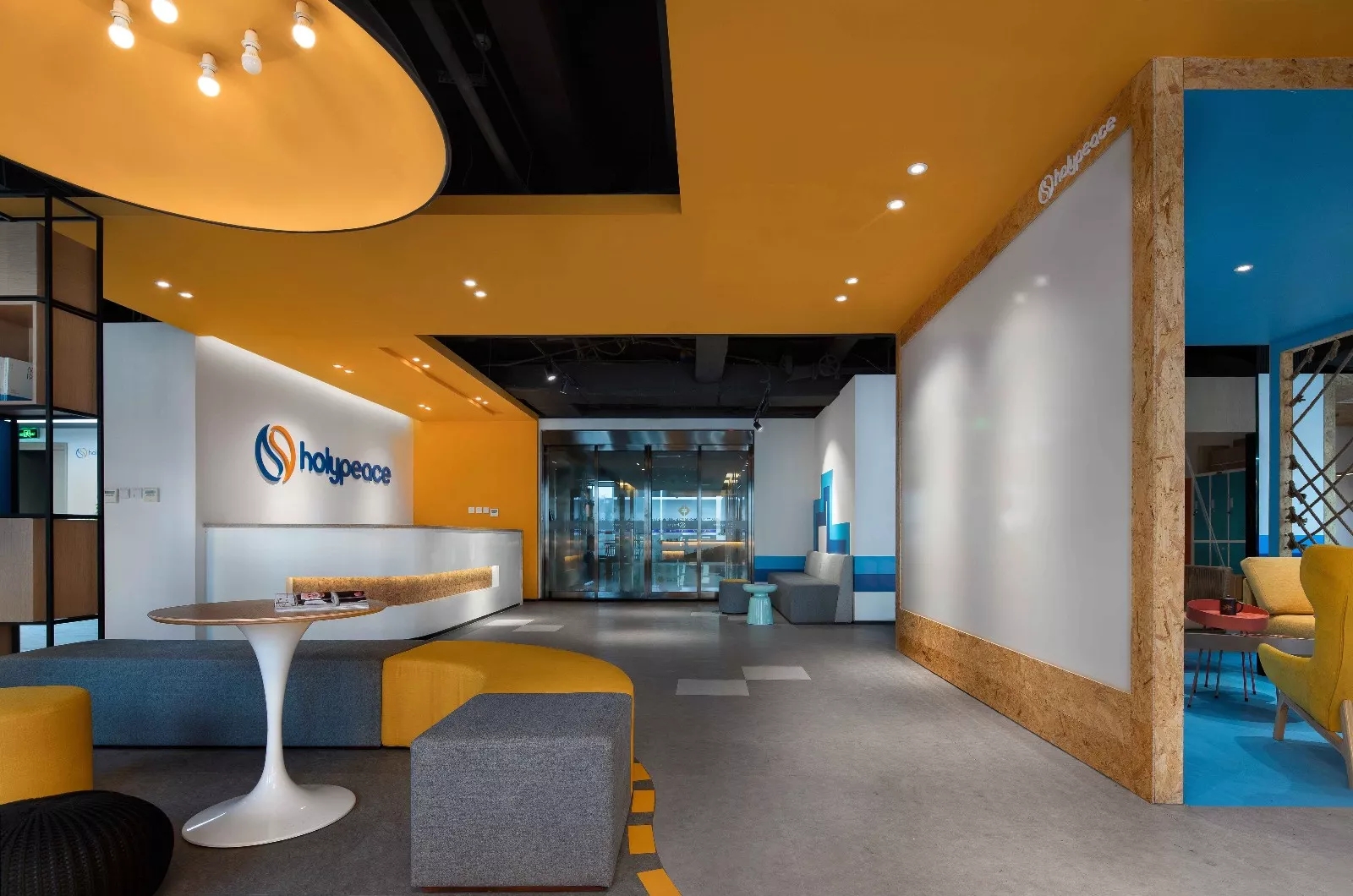 保险代理公司也可以变为乌托邦情节的宣泄地,色彩、高效、充满活力成为了本案的代名词,整个办公空间我们大部分采用敞开式的设计方式,使得整个空间具有连通性和互动性。迎合了当今欧美提倡的轻松办公的理念,让员工在舒适惬意的环境里迸发各种good idea。此处设计师使用logo的两个主色,橘色和蓝色作为贯穿整个空间的设计主线。