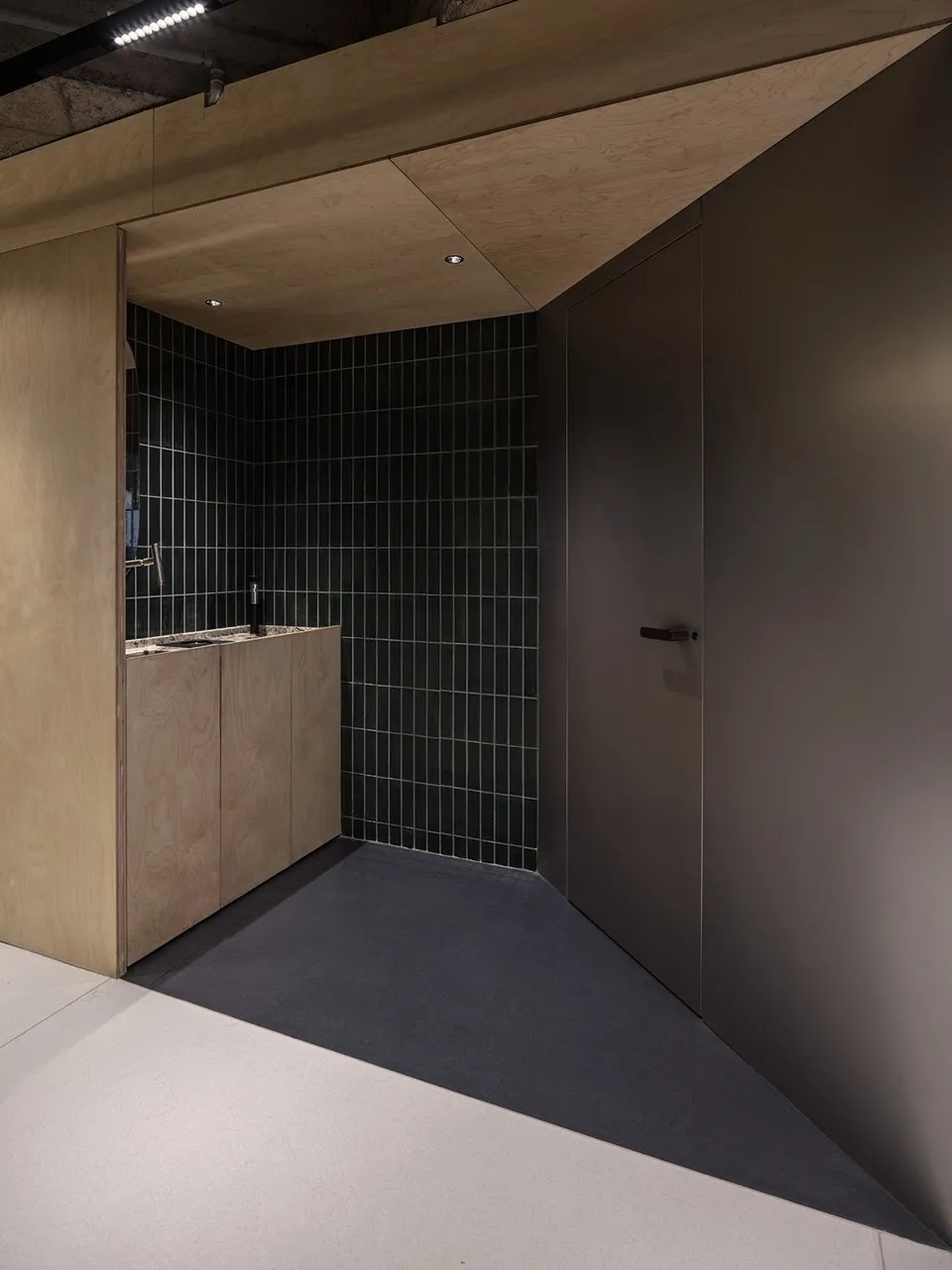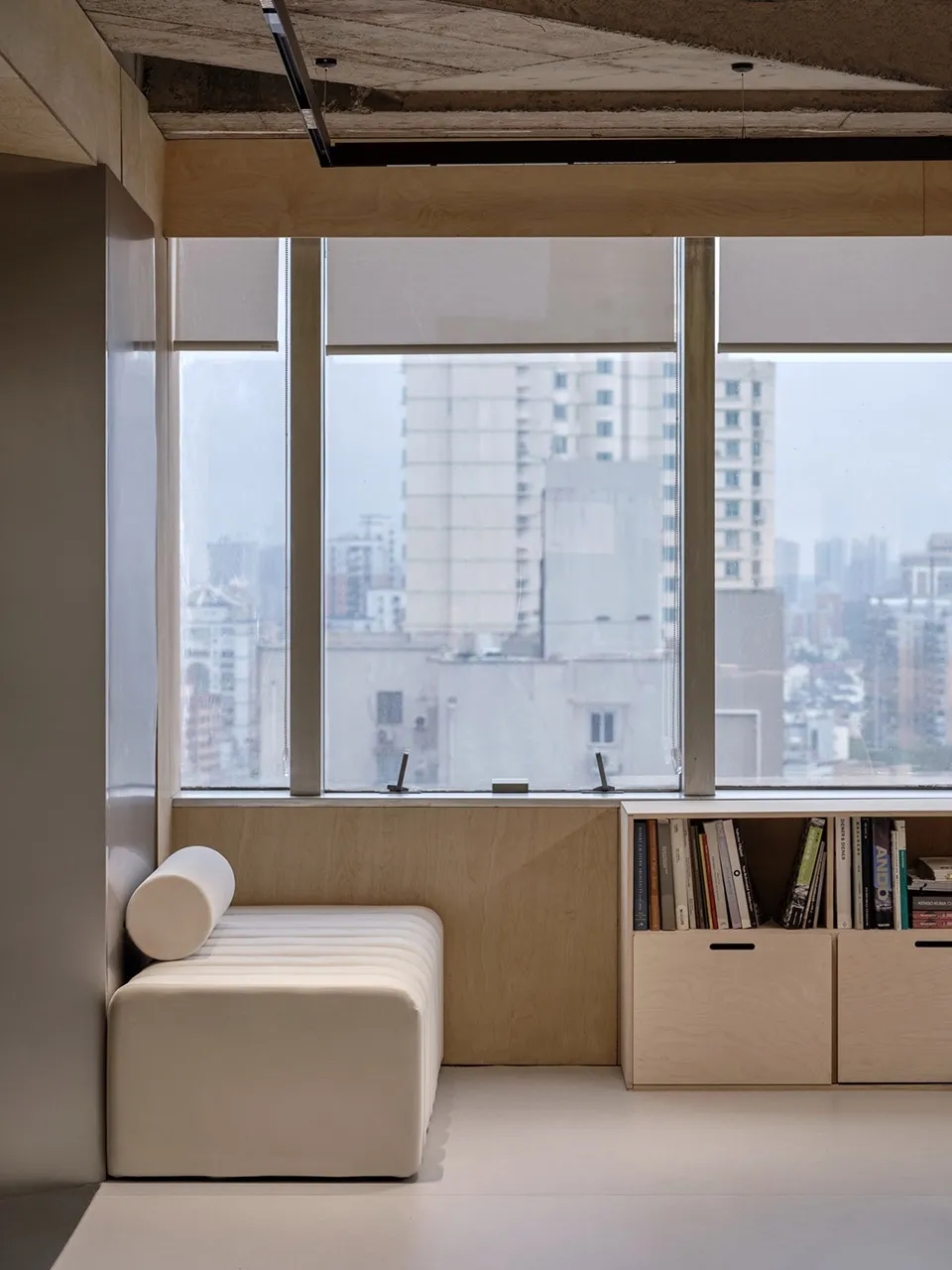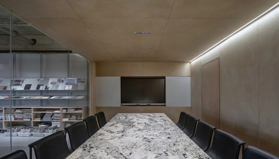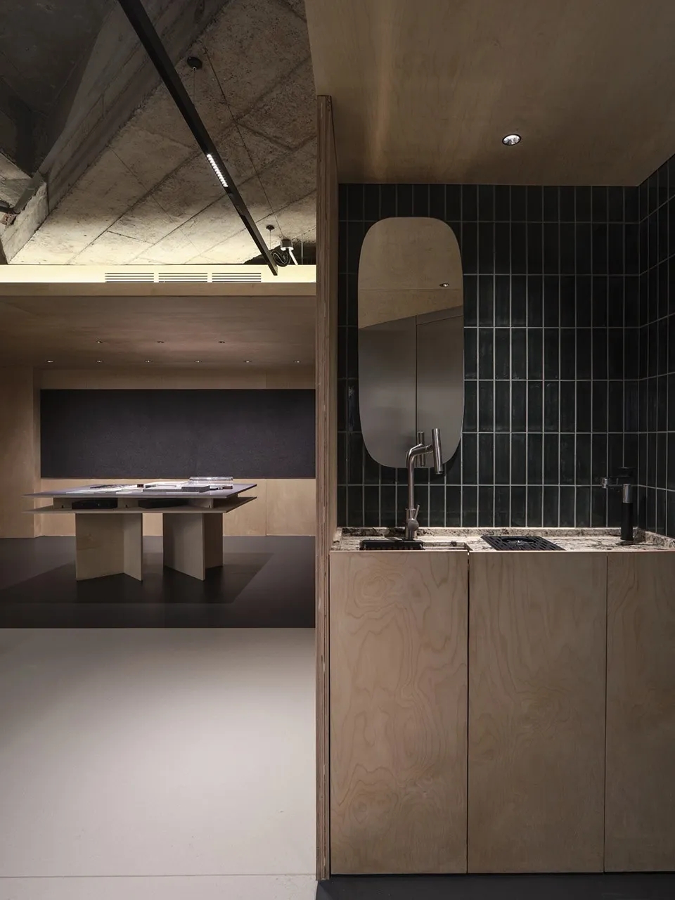 采用装配式带来的另外一个好处是成本的节约,用桦木多层板直接作为面层材料,在基层龙骨排版上已经考虑到材料的块幅,最大化的减少损耗与浪费,自然留缝既是材料装饰性的表达,也是背后装配逻辑的外在表现。这也延续了WEA一贯的室内设计理念,追求自然而真实的美而非涂脂抹粉式的装饰。