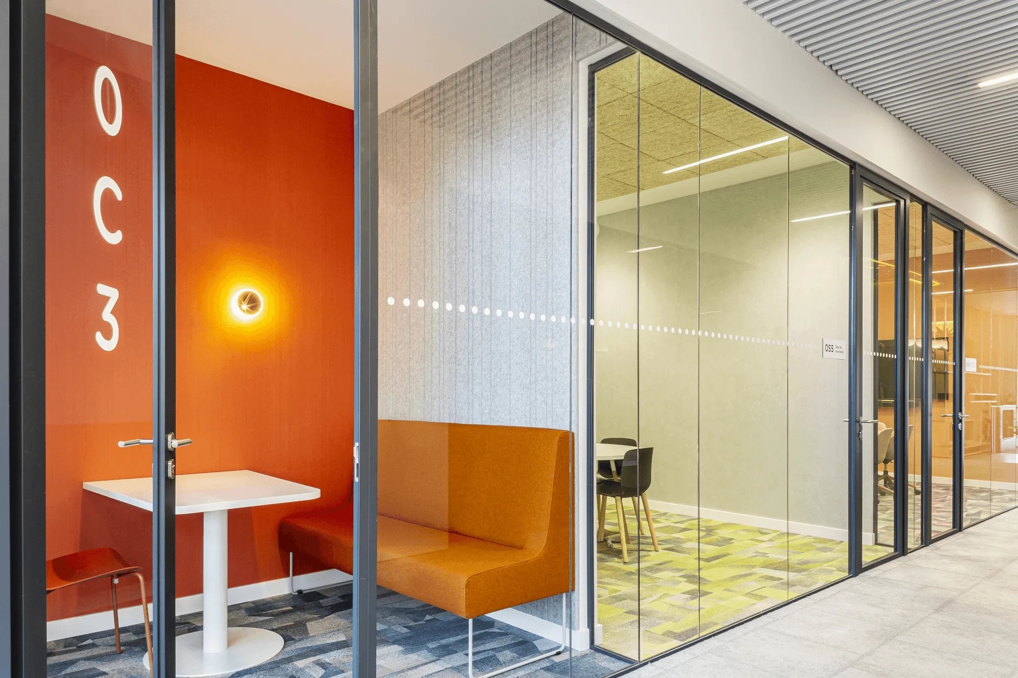 该区域是一个旨在推广灵活、协作式工作模式的场所,有各种各样的聚会空间,既可以举行正式或非正式的会议,也可以进行社交活动,还可以集中精力完成个人任务。这些协作空间大多由两个交叉的托架组成,使邻里之间井然有序,并控制了开放空间的大小。