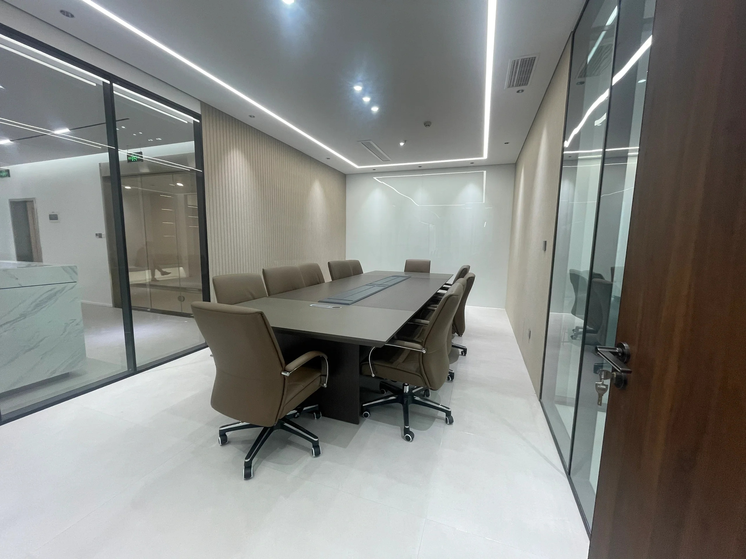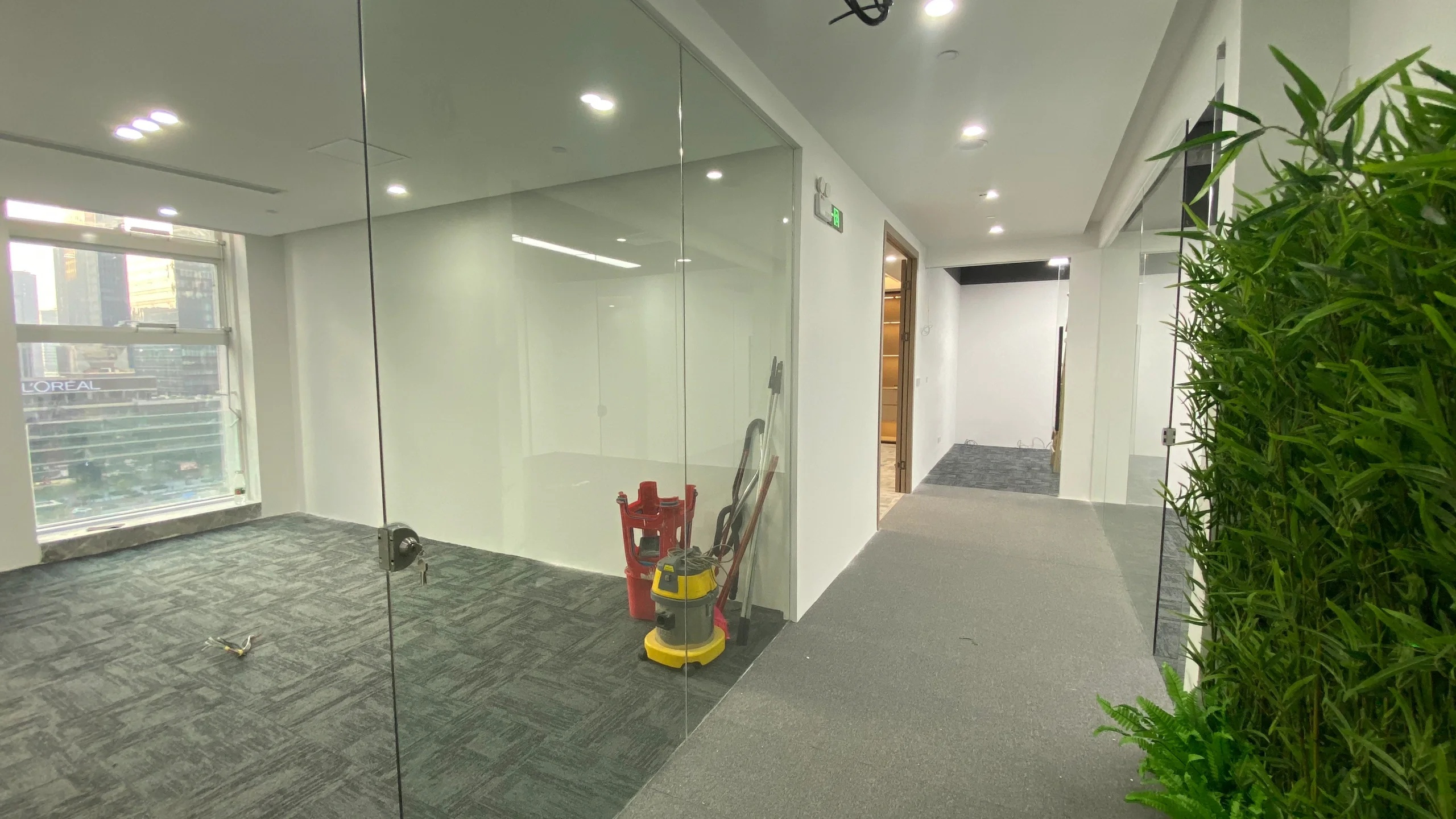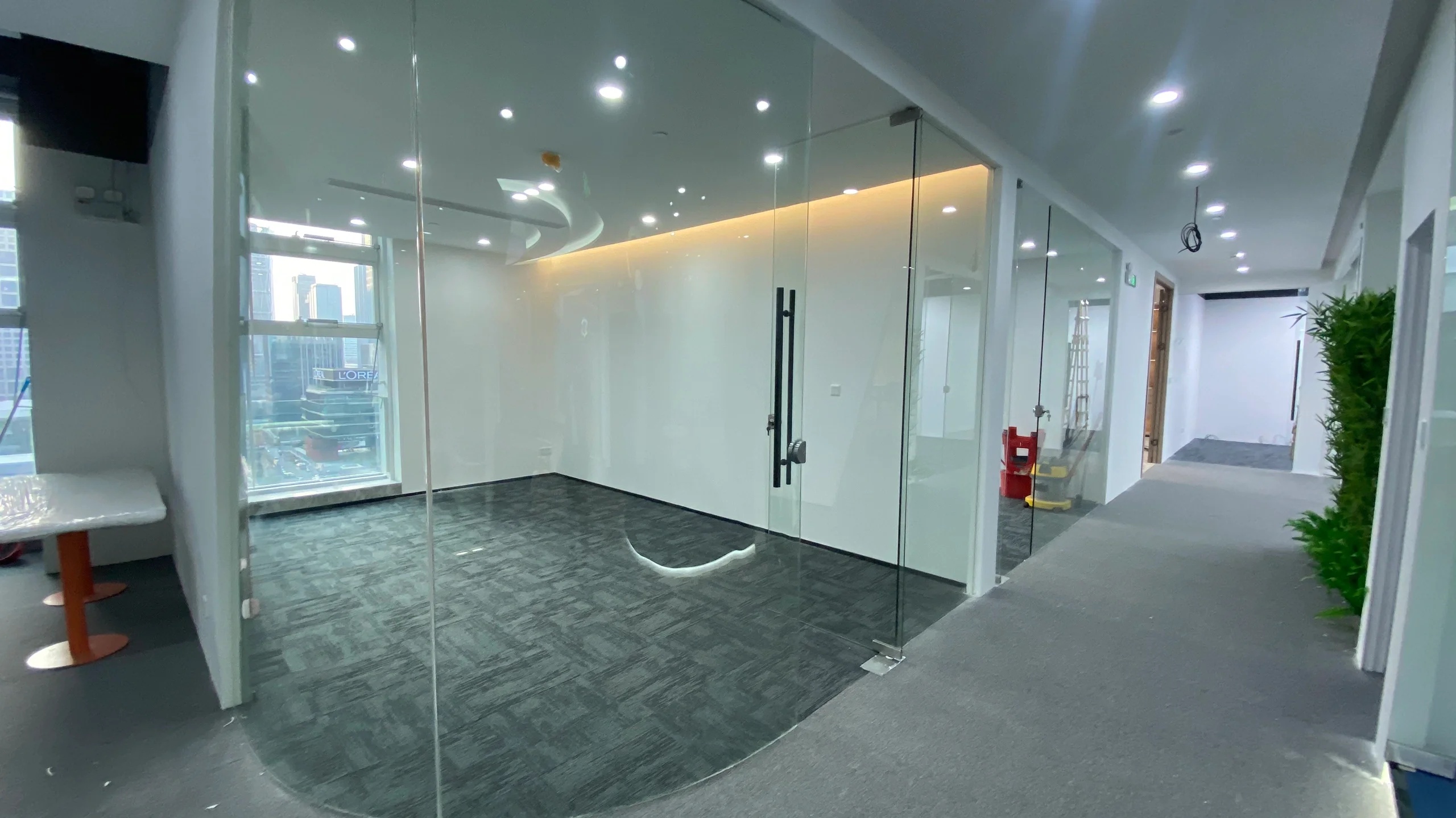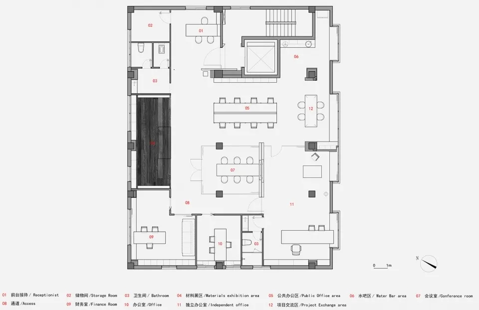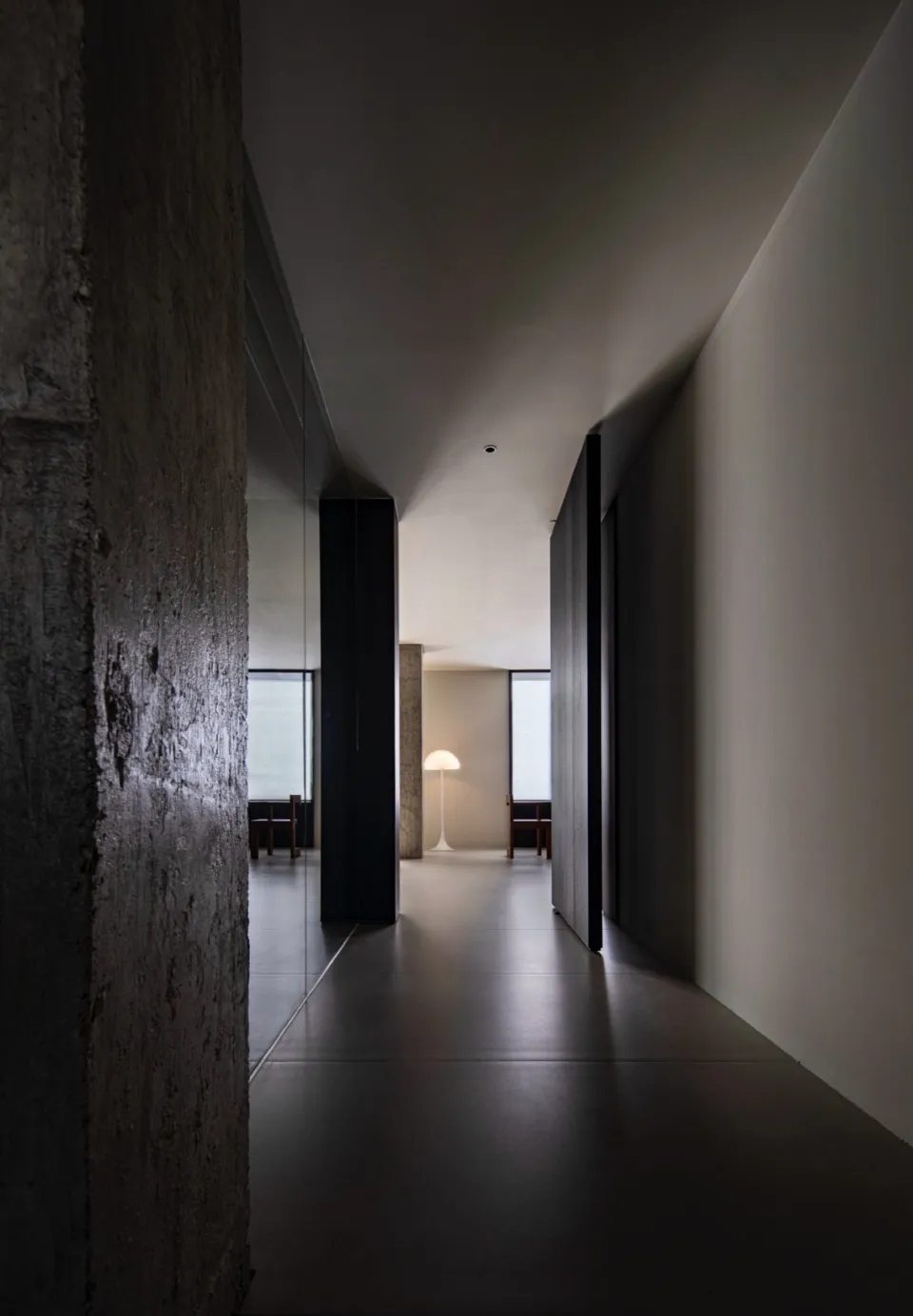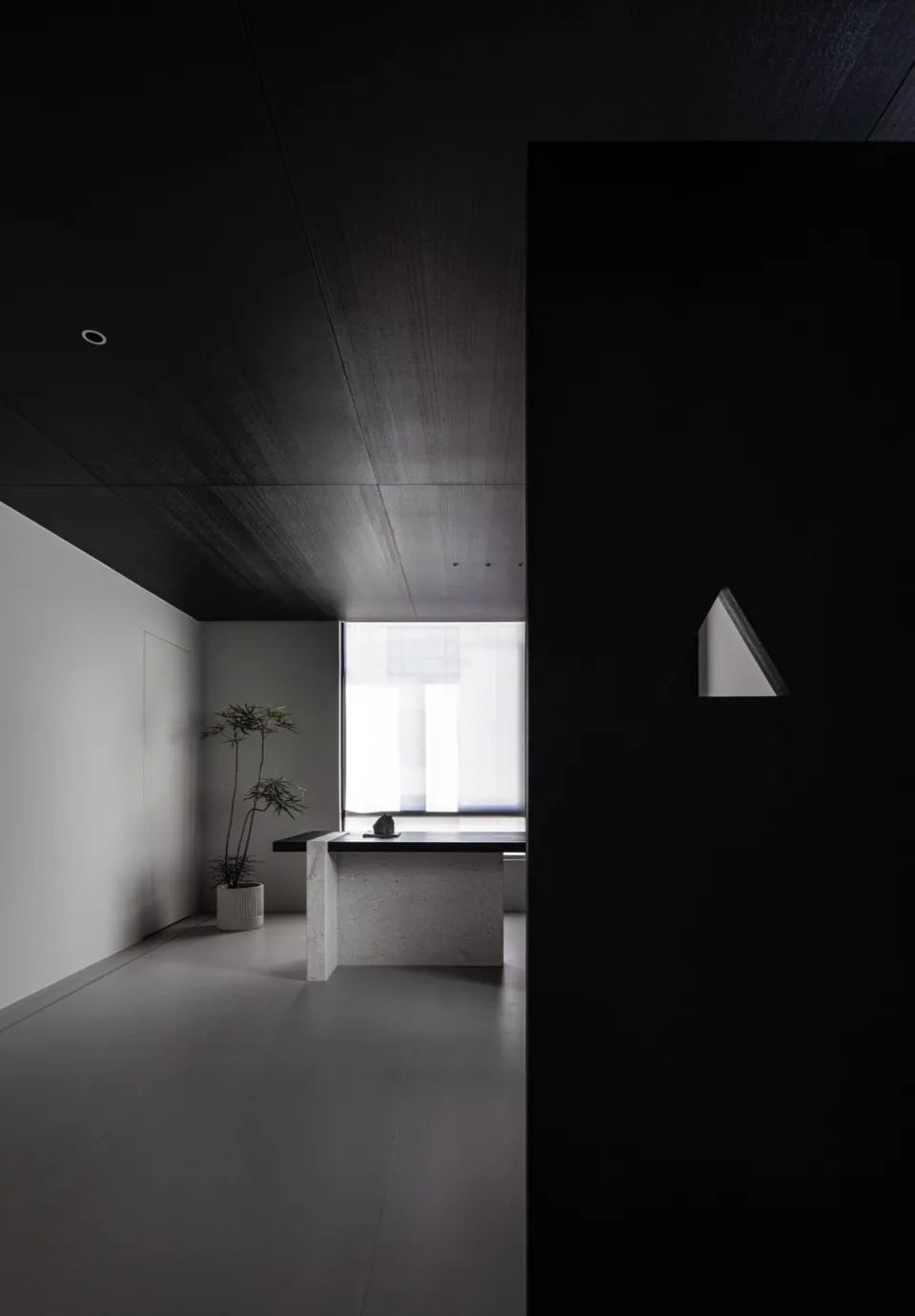 L型走道连接各个空间,并随着序列的递进而呈现出明显的层次和材质变化。走道延伸至总监办公室,结合另一侧的玻璃门形成一条环形回路,通过空间的互动达到使用效率的最大化。