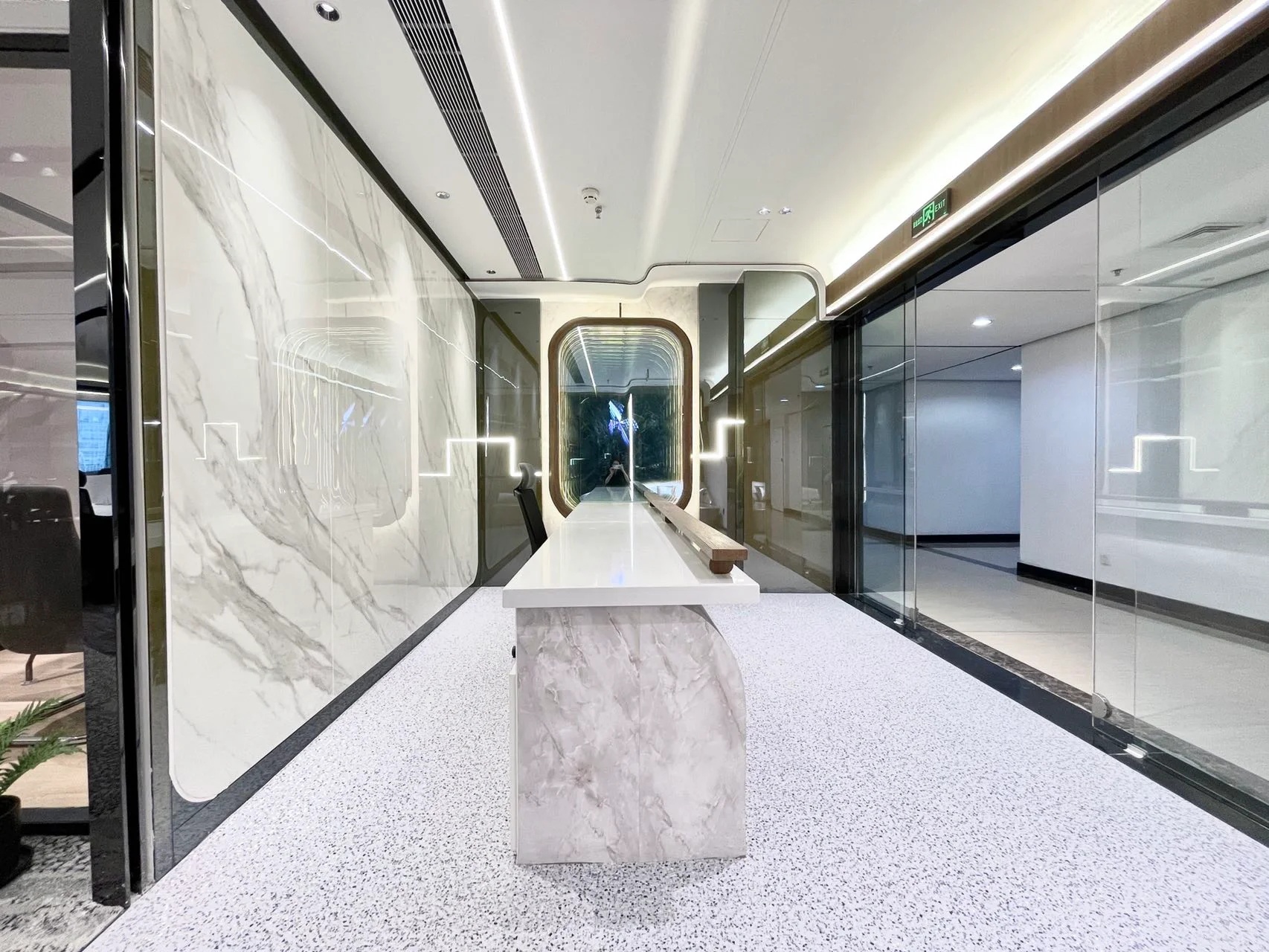 着眼于多元、高效、艺术等多种办公设计新趋势,所有墙面、柱体、照明、软装,在整体流线中环环相扣的节点皆从实用性出发,逐步放大艺术元素对办公空间的潜在价值。诠释设计创意的有力手法是对材料特性、细节的深入研究。这是创造一个和谐舒适空间和确保优质项目高品质落地的关键。我们希望通过基本的形式语言体现最真实的空间,用质朴的建造细节来激发空间之间的对话。