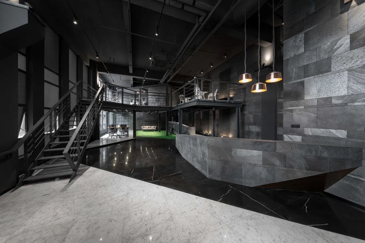 在接待大厅,地面层及夹层错落设置了数个开放式讨论区及会议空间,善用玻璃隔间与外部采光让会议透明,同时能保有隐私。此外,也提供在吧台区自制午餐、在沙发区轻松闲聊的交流空间,所有人可选择以各种方式开会交流。