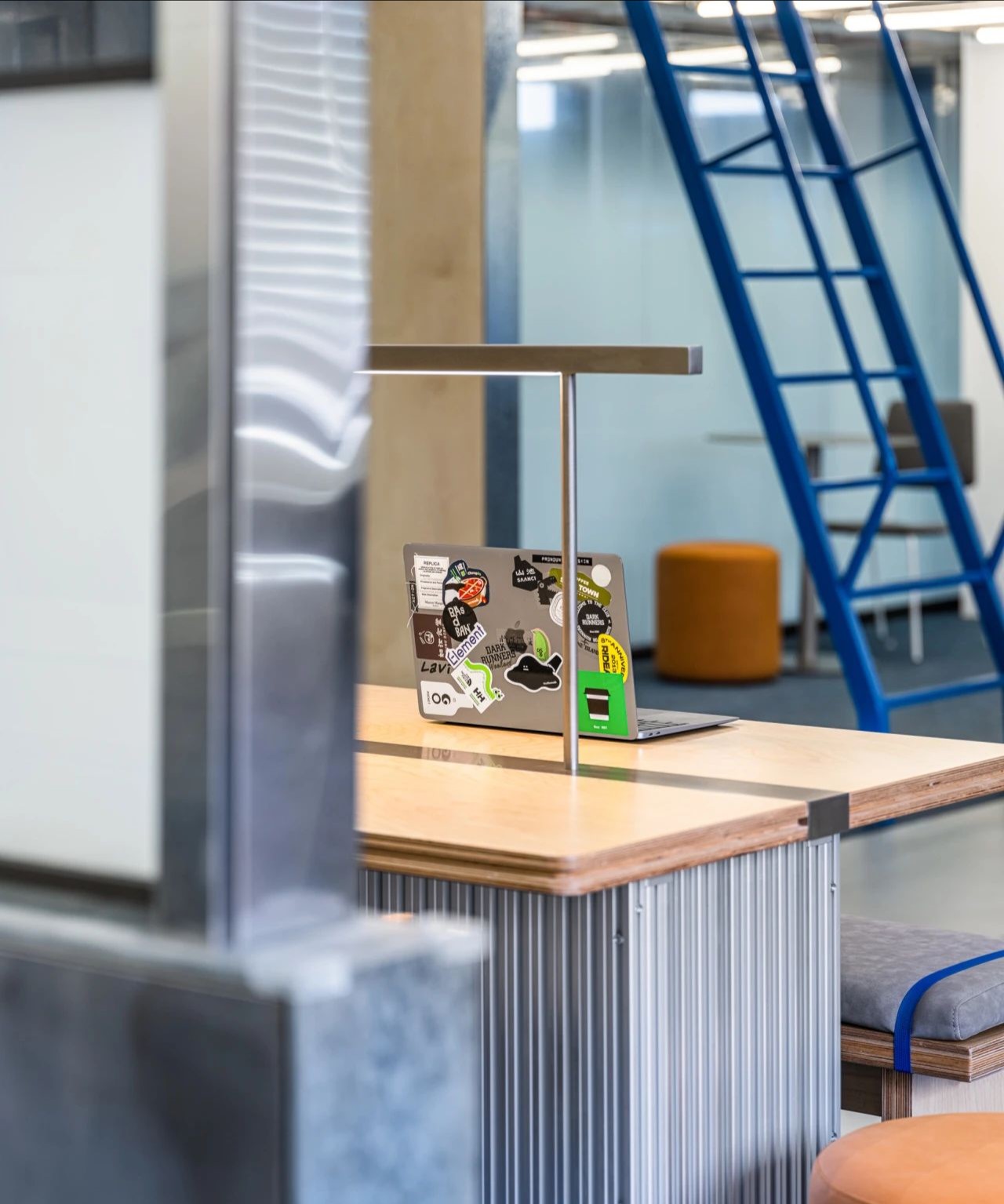 办公家具也是提升员工幸福感最切实的内容之一,设计以定制化的方式为KLUE专门研发了办公桌、柜体等家具,它们均以可预制的4×4铝合金方管为模块自由拼接组合,这不仅可以让团队的协作方式多样变化,更为公司的未来发展预留了无限可能。