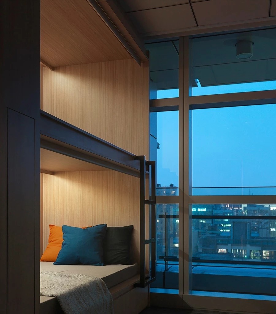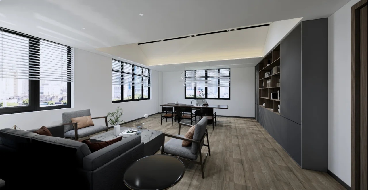 延伸办公楼生活化的宗旨,整体空间设计更像居住空间,机能完善之余,更增加娱乐休闲空间,将自然生态融入设计之中,结合城市之景,令人耳目一新、更延伸城市的文化。