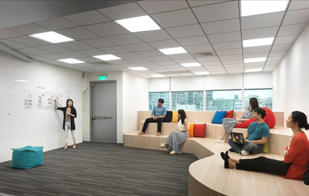 而空间设计除了带来如回家般亲切的生活感,更需凝聚员工的向心力。大会议室以罗马剧场般的场地设计,打破刻板印象的办公空间,宽敞的坪数可容纳更多人,有助于团队互动、交流,凝聚情感,让工作效率大为提升!