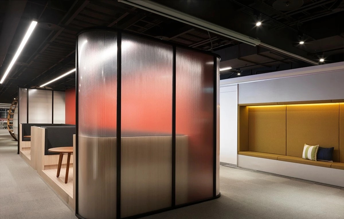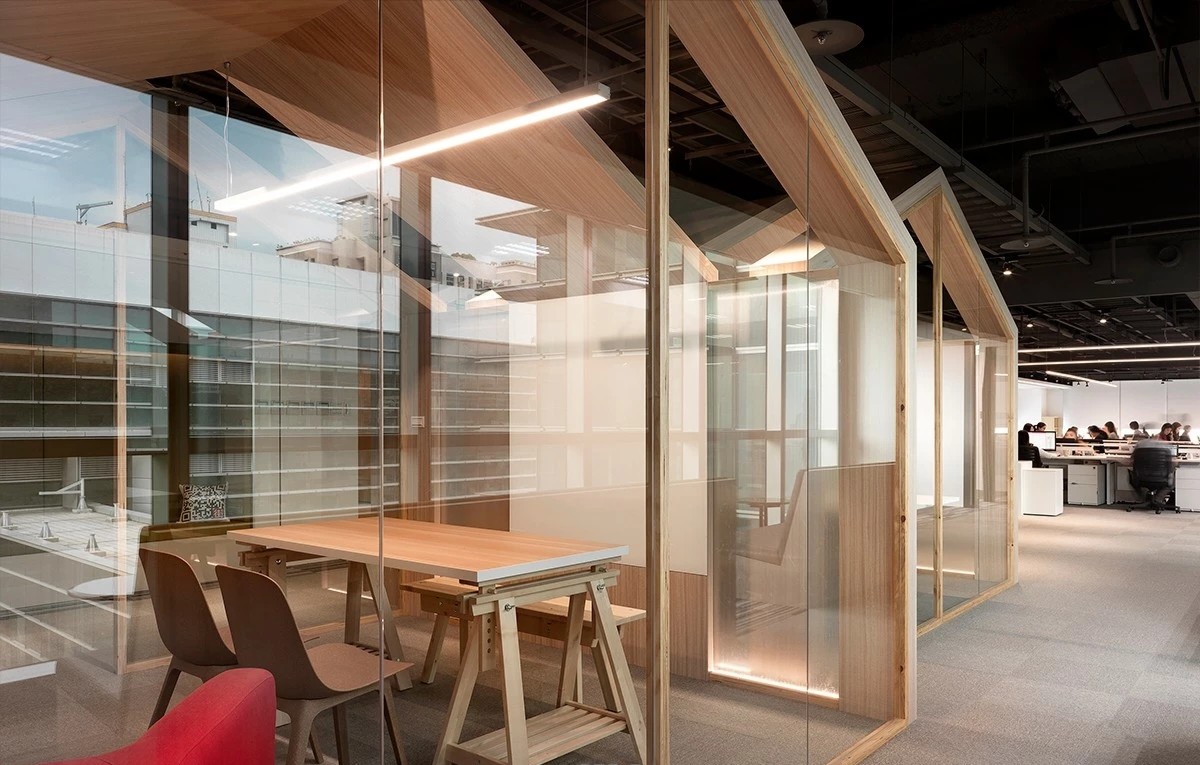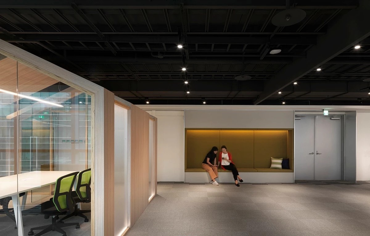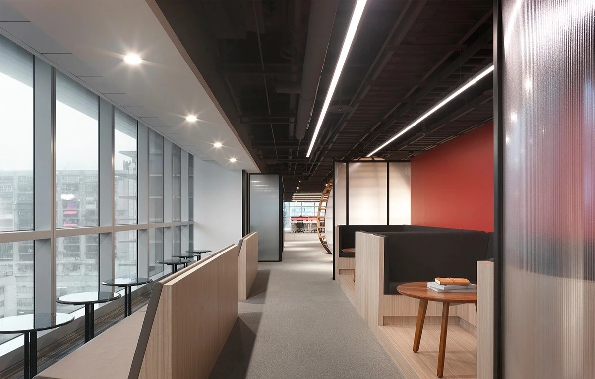 以一个街道的立面,勾勒长型空间的轮廓,安排许多独立、沉静的角落,面对户外的城市光景,在工作的过程中仍然拥有与户外对话的时刻,更给予伙伴与伙伴间互动的区域。