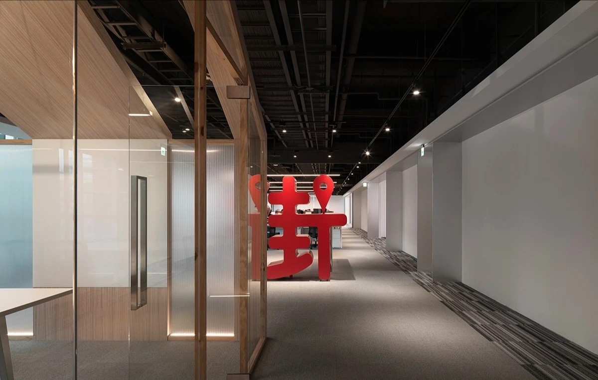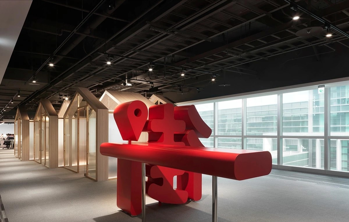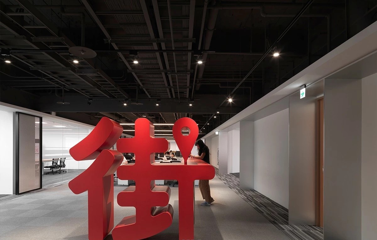 从企业商标“街口支付”中获得灵感,亮眼的红色调成为空间的主色彩,更延伸街口的“街”字,放大成为街Bar,不仅是视觉焦点,更是一张创意独特的吧台,可在此进行快速的会议、交流及讨论,在空间里撰写品牌故事。