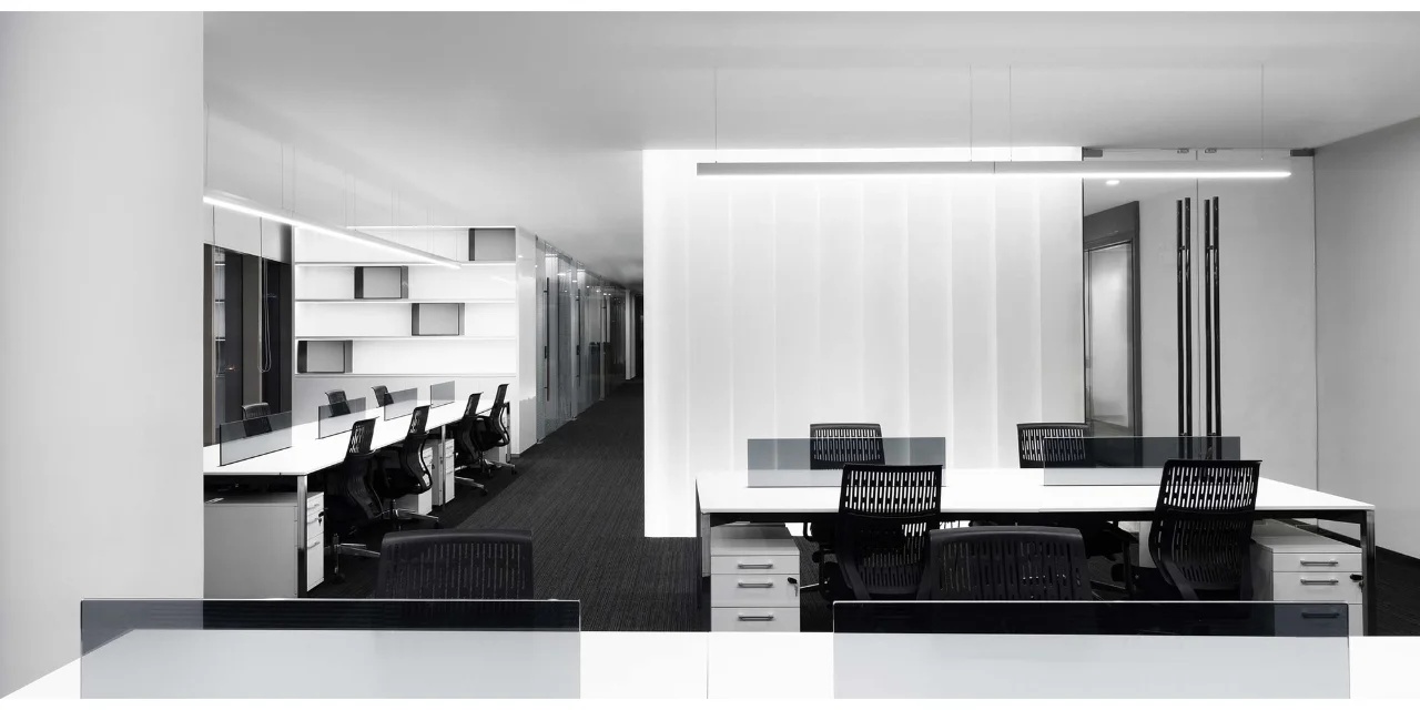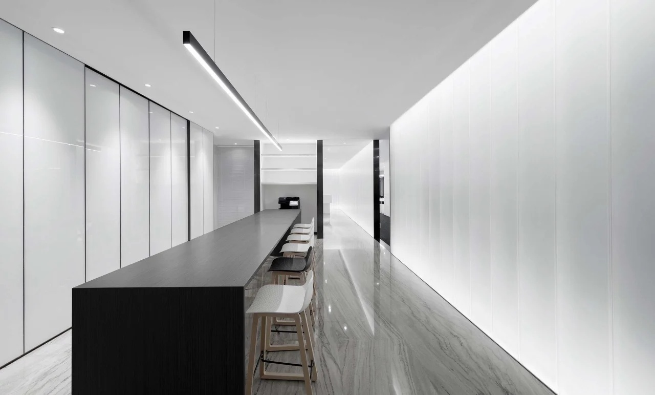“前卫且精致,未来并创新”,是设计师以黑白为声,以光影为韵,向我们传达出的理念。未来世界虽然不是具象的,但人可以创造出自己创想出的未来空间。黑白立面的跳跃感,旋转大门的序列感,U型玻璃墙交错其间,简洁的元素经过极富创意的组合,一个具有前沿理念和前瞻思维的开放协作性办公场所便跃然于人们眼前。
