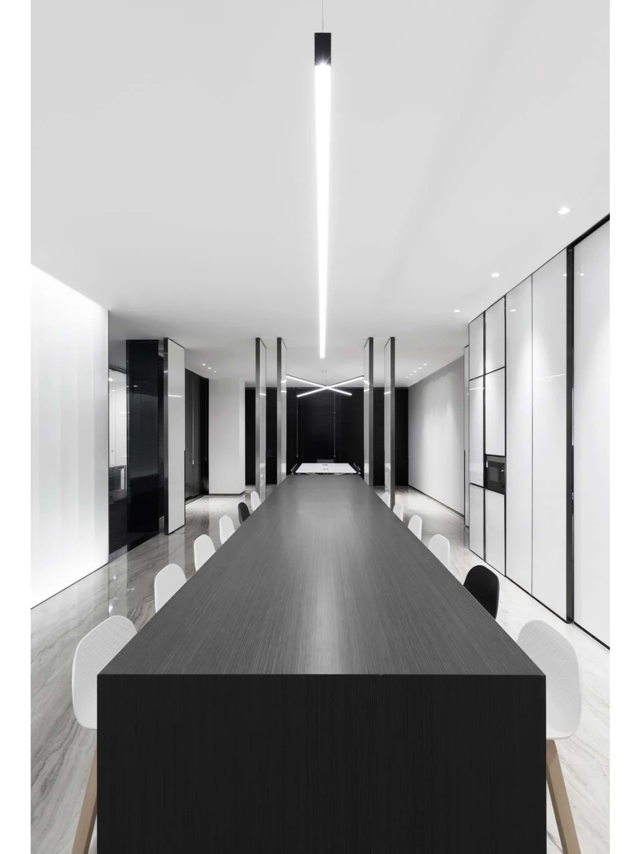 前卫黑白|整个空间,并无一丝一毫多余的装饰,大片的黑与白,便已构成了最具艺术感的装饰画。黑与白,是至纯至简的颜色,亦是藏纳万物的颜色。棋盘上的杀伐纵横,画卷中的人间百态,黑白二色都足以将其表达得淋漓尽致。不同于红之炙热,绿之灵动,黄之明快,冷静与理性,是黑白带给人的印象,而这,也恰恰契合于“未来空间”所应有的气质。此空间中大面积的黑白,看似只是简单的铺陈,但却在两色的交错跳跃间,摒去了单调乏味,将空间最大限度地延伸,使“未来感”倾泻而出。U型玻璃墙的大胆运用,是本空间最大的亮点。它仿佛一个魔术师,似乎只是静静立在那什么也没做,却悄然引导着人们的视觉,将空间向纵向拓展,扩大了空间的深度与广度,其独特的纹理与透光性同时成就了明暗交替的韵律感。
