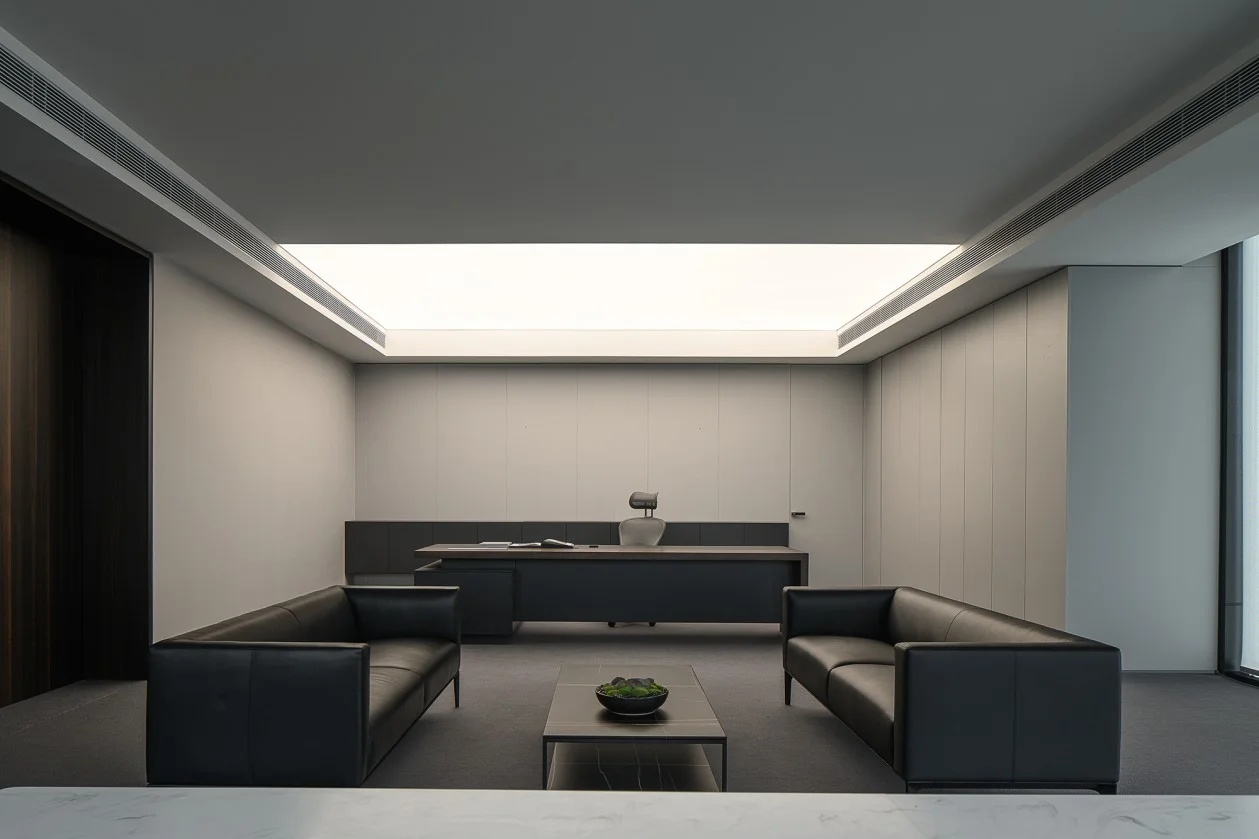 设计通过控制室内的动线布局、尺度比例、材质肌理、形态色泽和灯光陈设,让空间以纯粹、有序、宁静的构成,凝成一股沉稳大气、积极向上的精神力量。