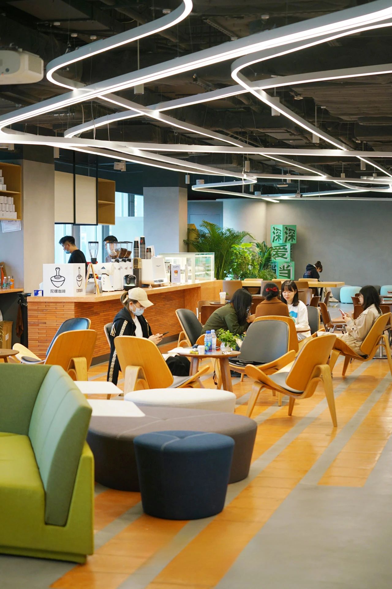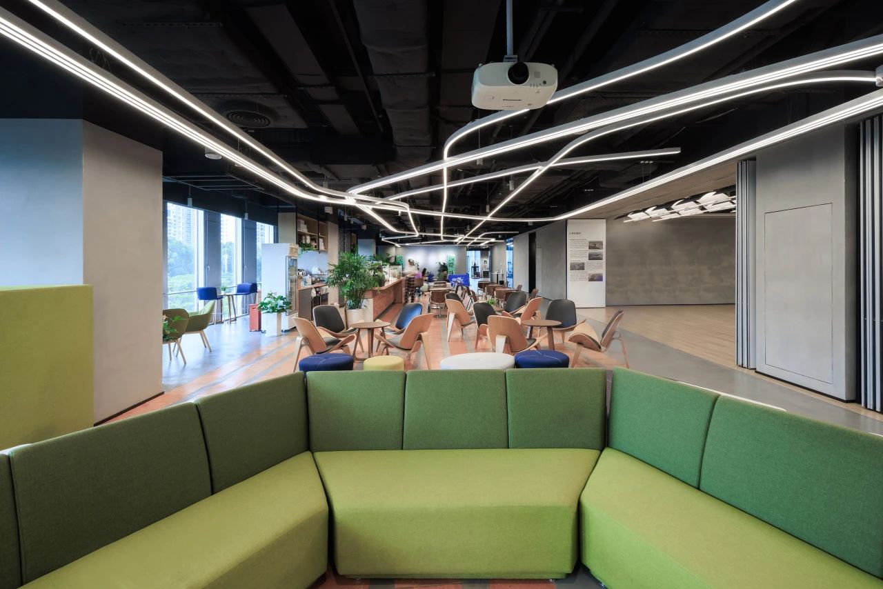对于生长力的感知总是会更加蓬勃,我们希望在公共空间中注入南方特有的活力和松弛感。食堂、咖啡、健身和多功能活动区等模块自由穿插,空间流动灵活,增加了互动和社交的频次。