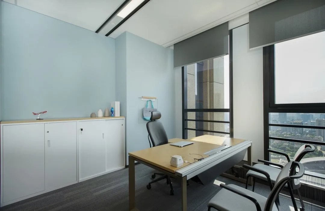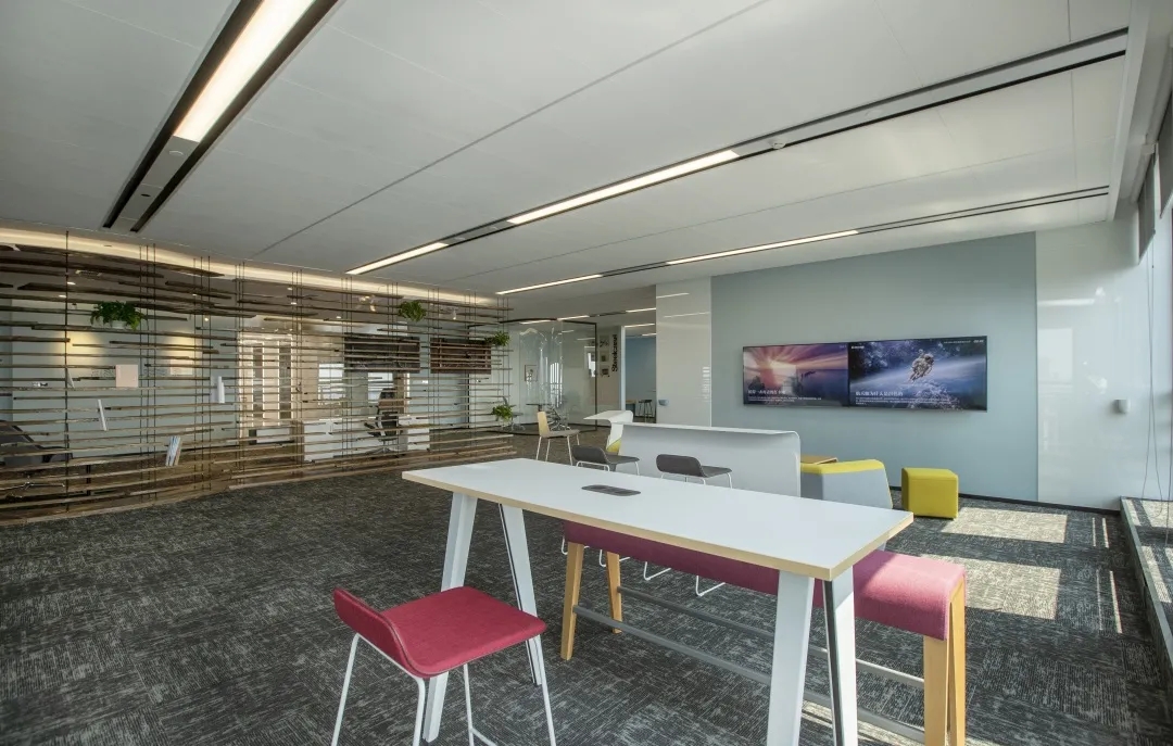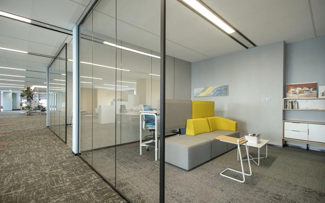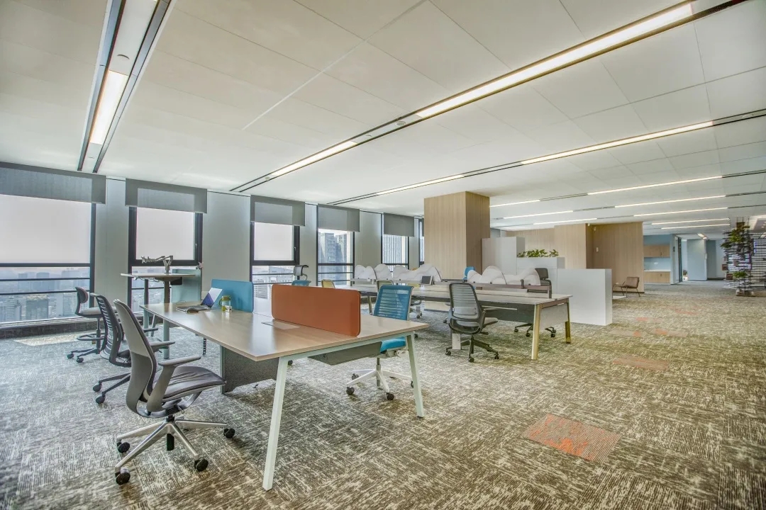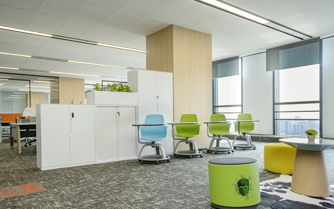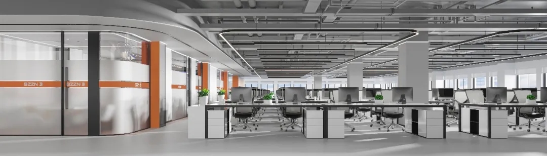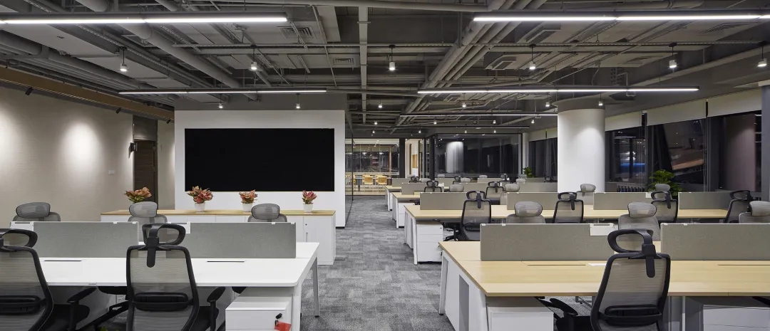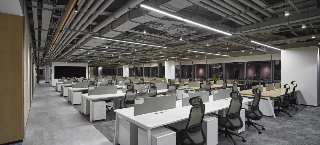 在打造舒适的办公环境的同时,更多的融入了灵活的洽谈场景。利用“隔而不堵,通而不透”的设计理念,简单的布置并不影响后期工位的拓展,反而为办公空间提供了更多交流的空间。