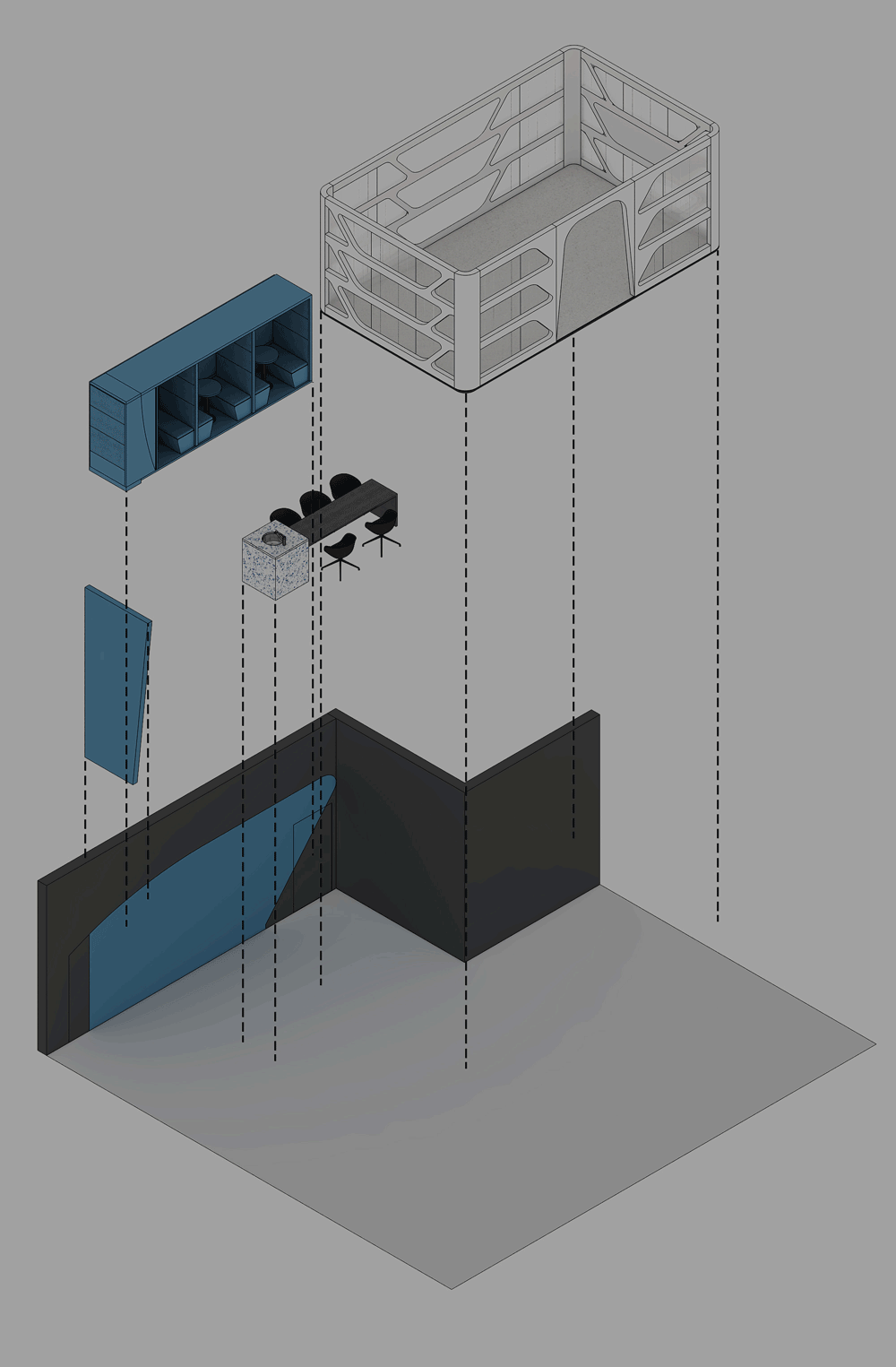 为了降低空间锋利感,采用圆润的弧角处理缓和视觉锐点,避免产生冰冷强硬的视觉暗示,同时缓和空间“多拐角、多墙端”的结构,强调空间的“通”。