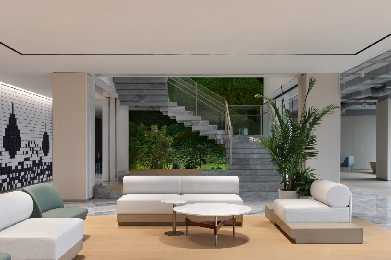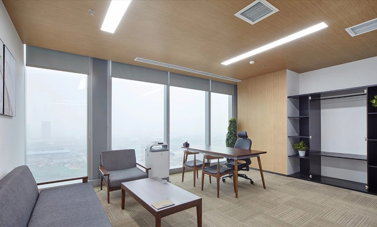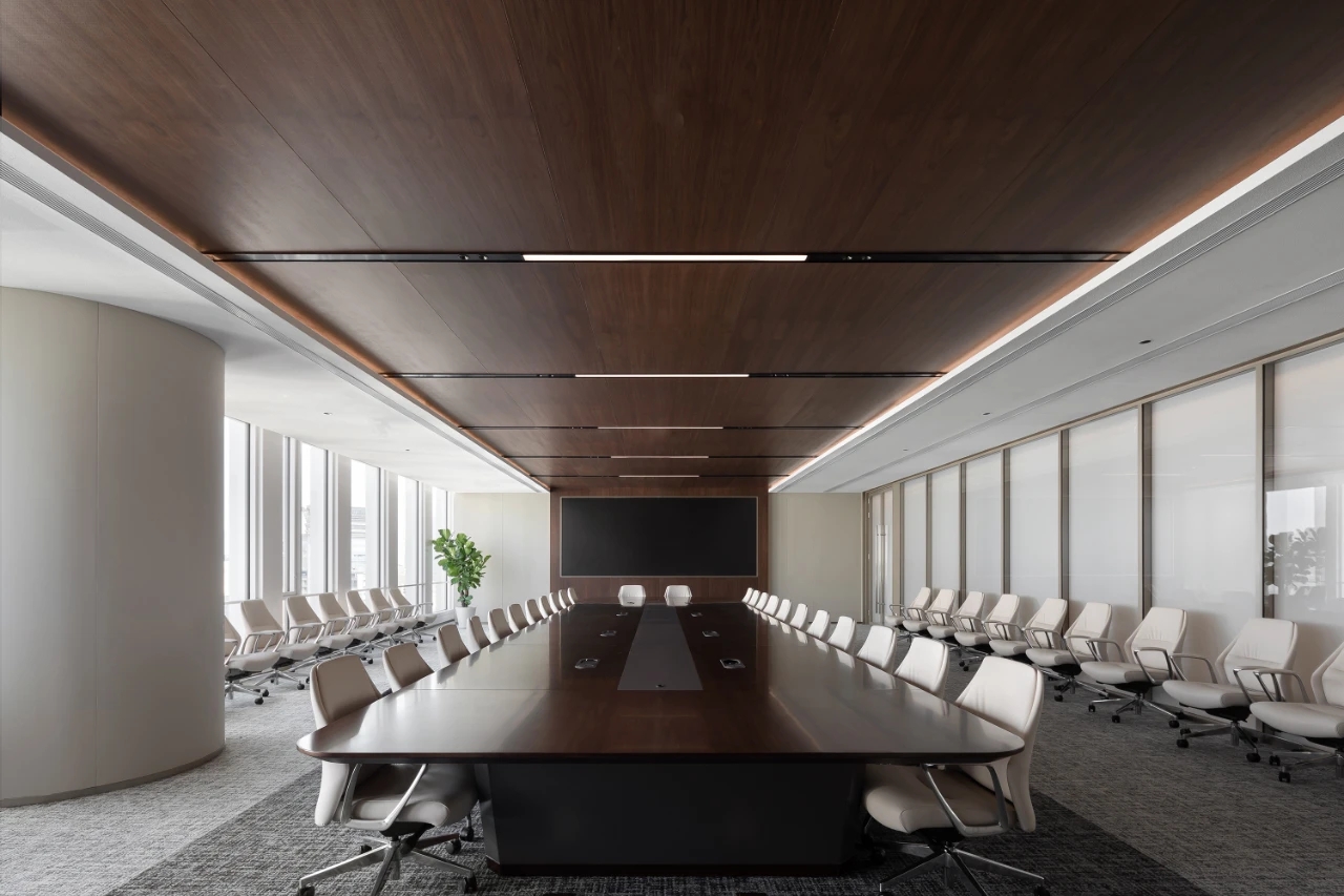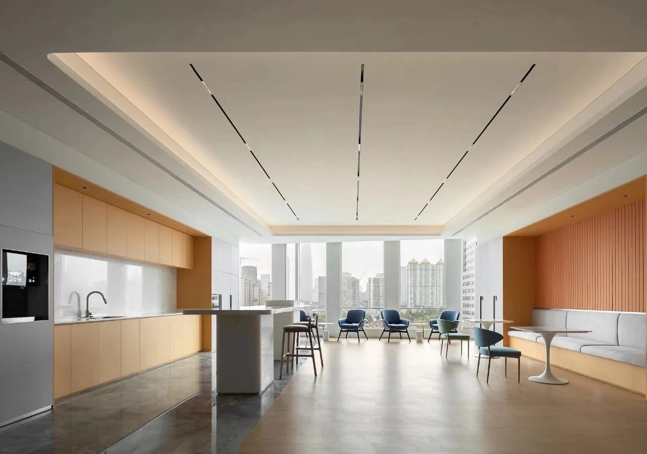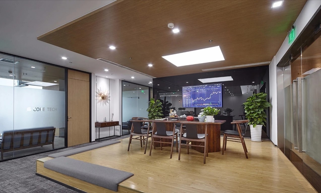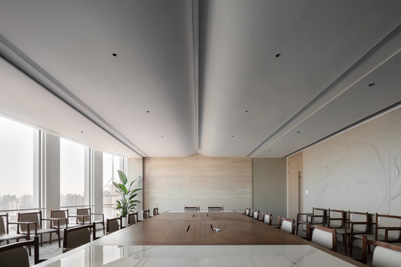 原木色、优雅白与神秘灰的色调,不仅表达了一种柔和、平静、和谐的美,还营造出一个整洁平静的内部空间。运用在办公室装修当中,能够凸显公司独有的气质。一个完美的项目作品呈现,设计上不仅要有创意,施工过程也是重中之重。两者之间也是相辅相成,正是由于施工管理对细节的要求苛刻至极,才能完美打造出与设计理念一致的作品。