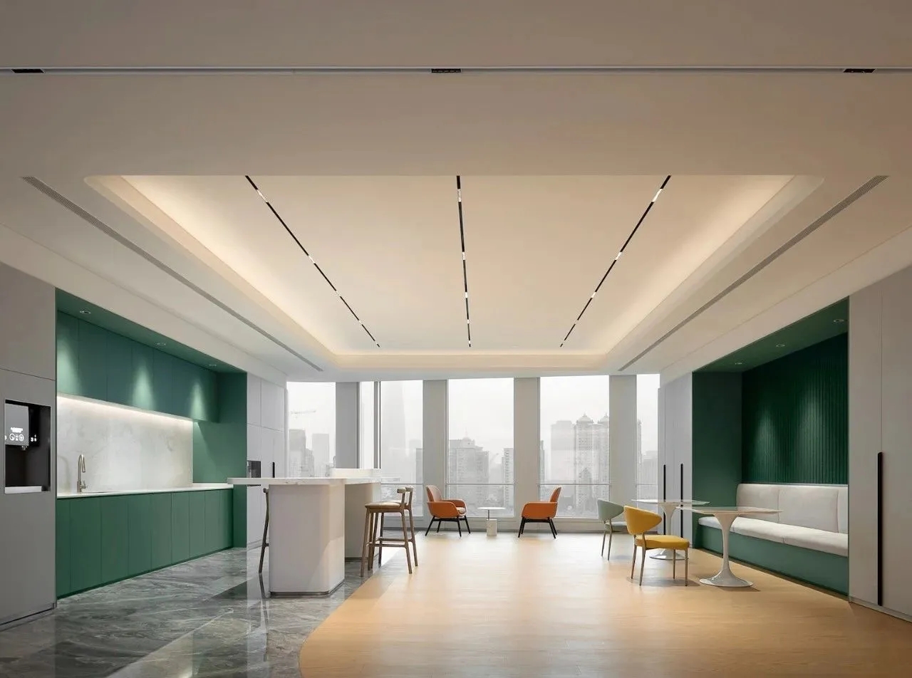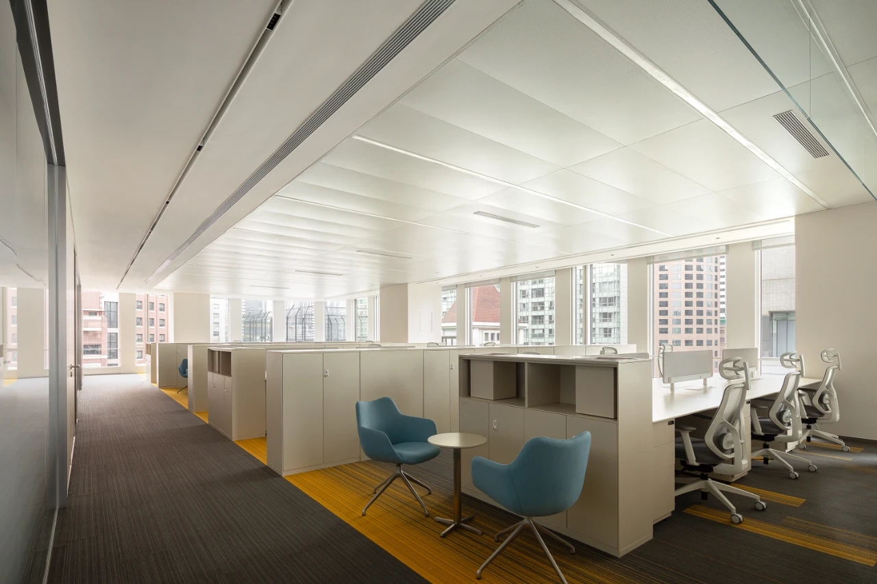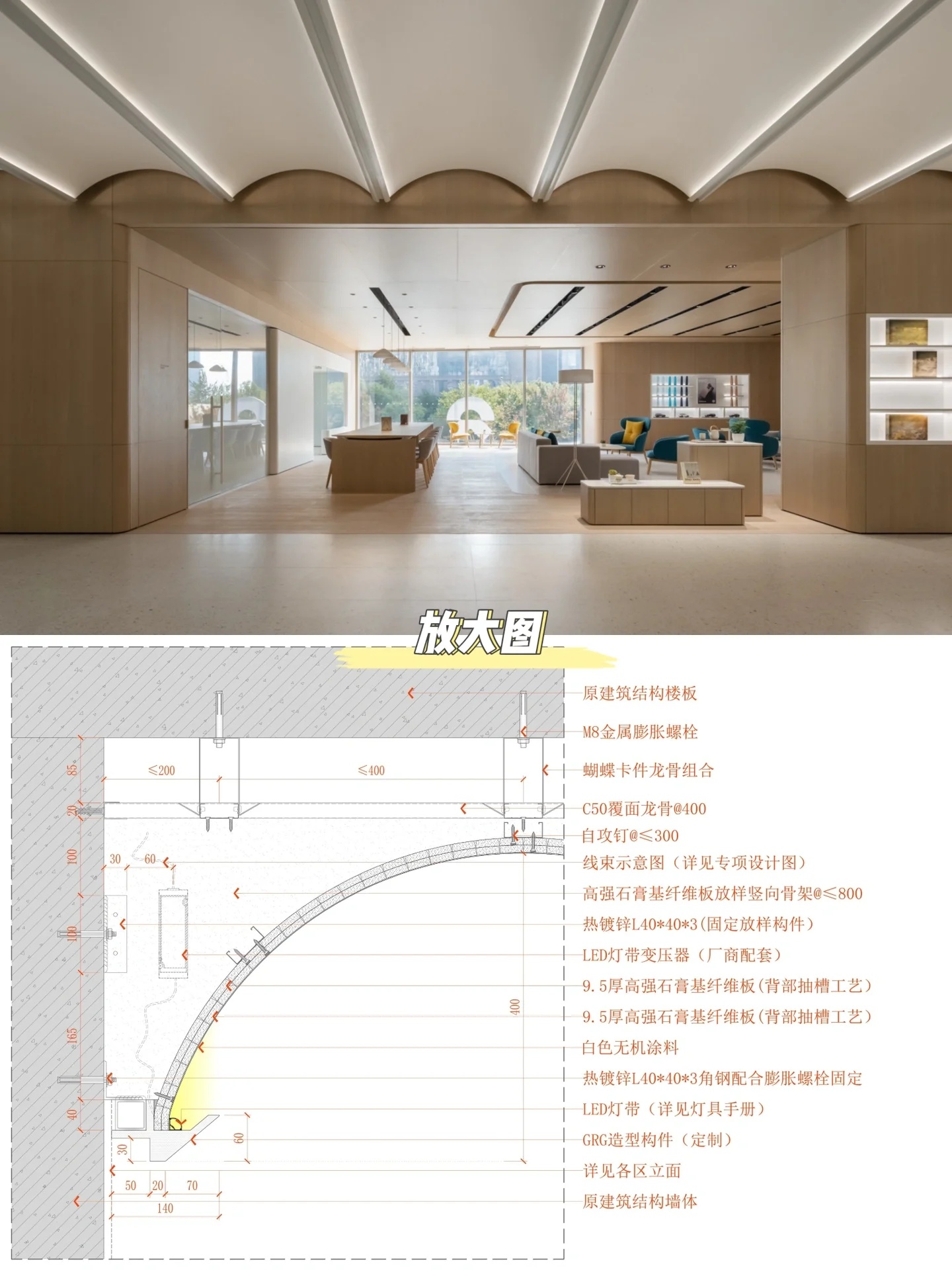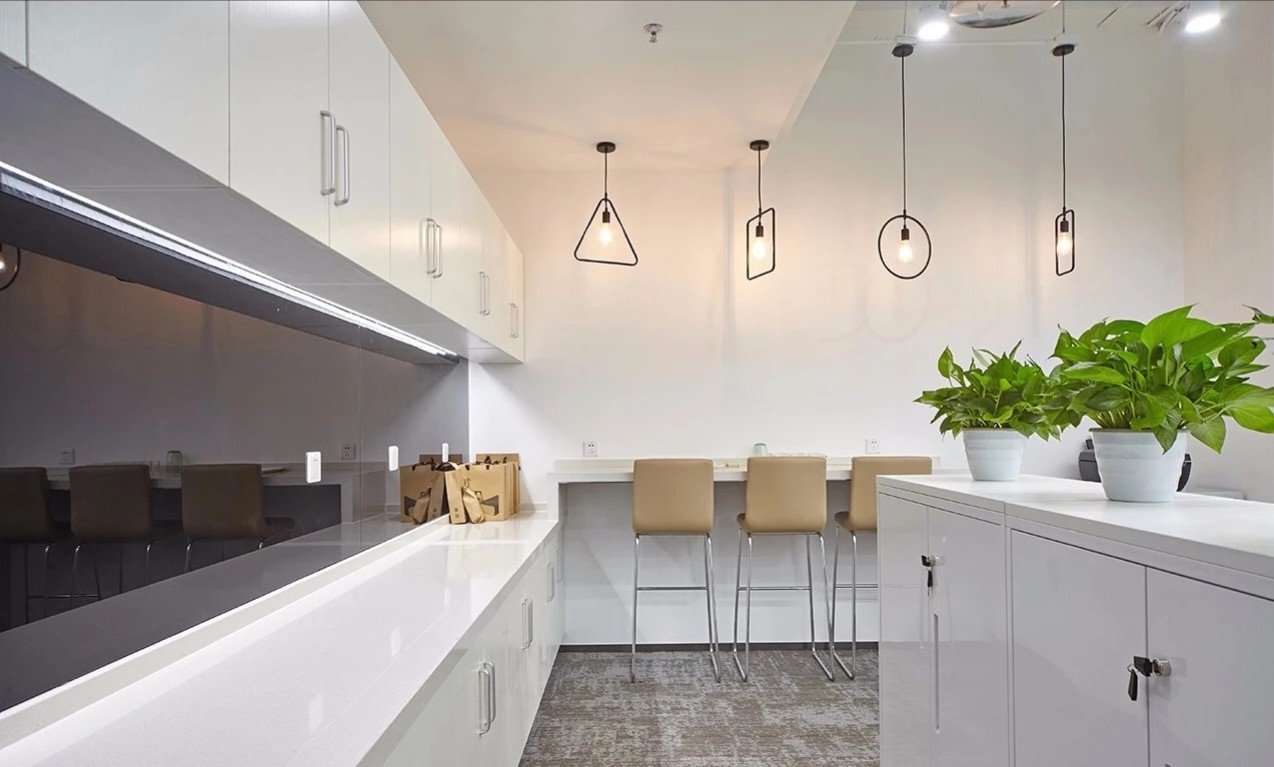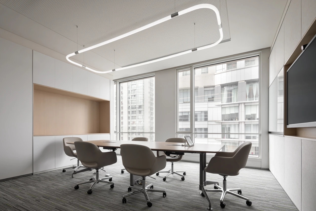 原木色、优雅白与神秘灰的色调,不仅表达了一种柔和、平静、和谐的美,还营造出一个整洁平静的内部空间。运用在办公室装修当中,能够凸显公司独有的气质。一个完美的项目作品呈现,设计上不仅要有创意,施工过程也是重中之重。两者之间也是相辅相成,正是由于施工管理对细节的要求苛刻至极,才能完美打造出与设计理念一致的作品。