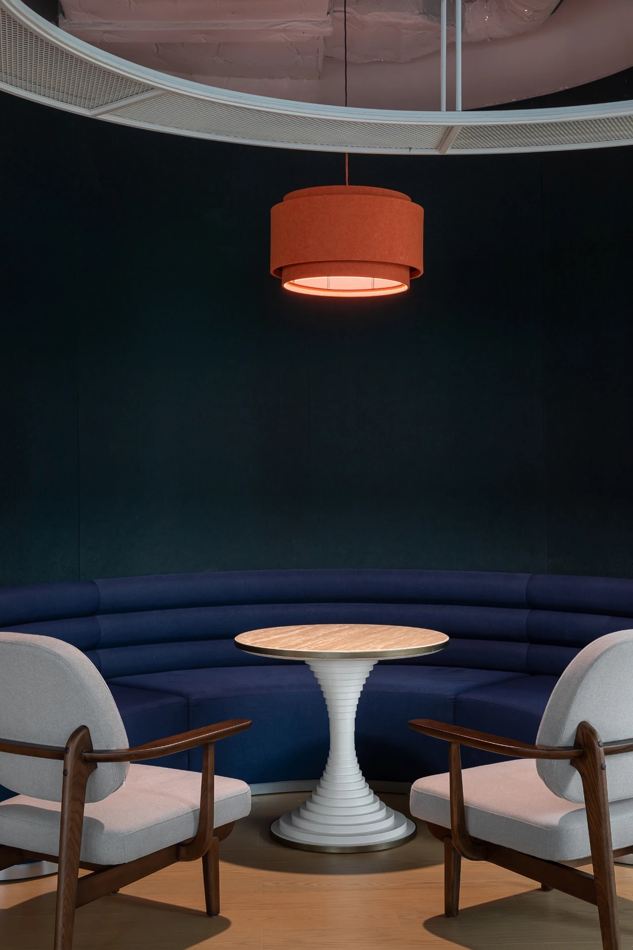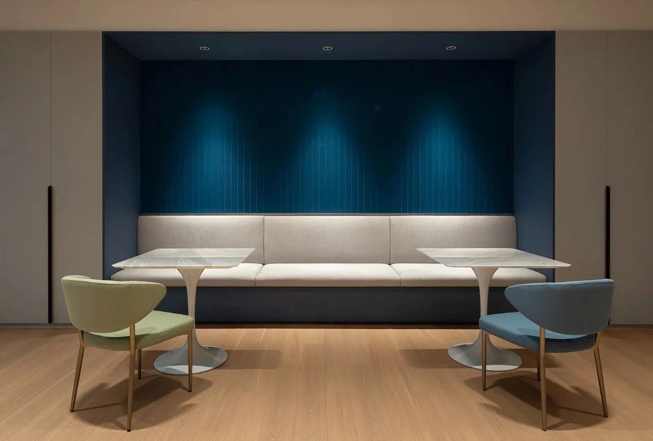 软装的搭配让整个空间的品质感瞬间提升,无论是家具、灯具还是挂饰摆件,设计师都非常用心的一一把关筛选。就连LOGO墙的彩色英文配色都是由设计一遍又一遍反复推敲的过程。