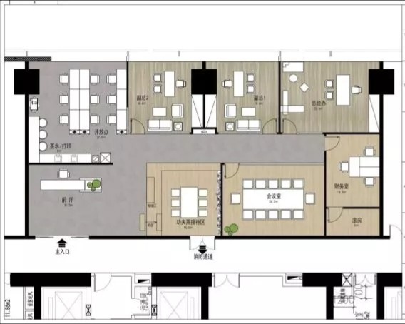 木质地台形式,别具一格的接待区域,功夫茶设在地台连接接待区,细节提升品位
