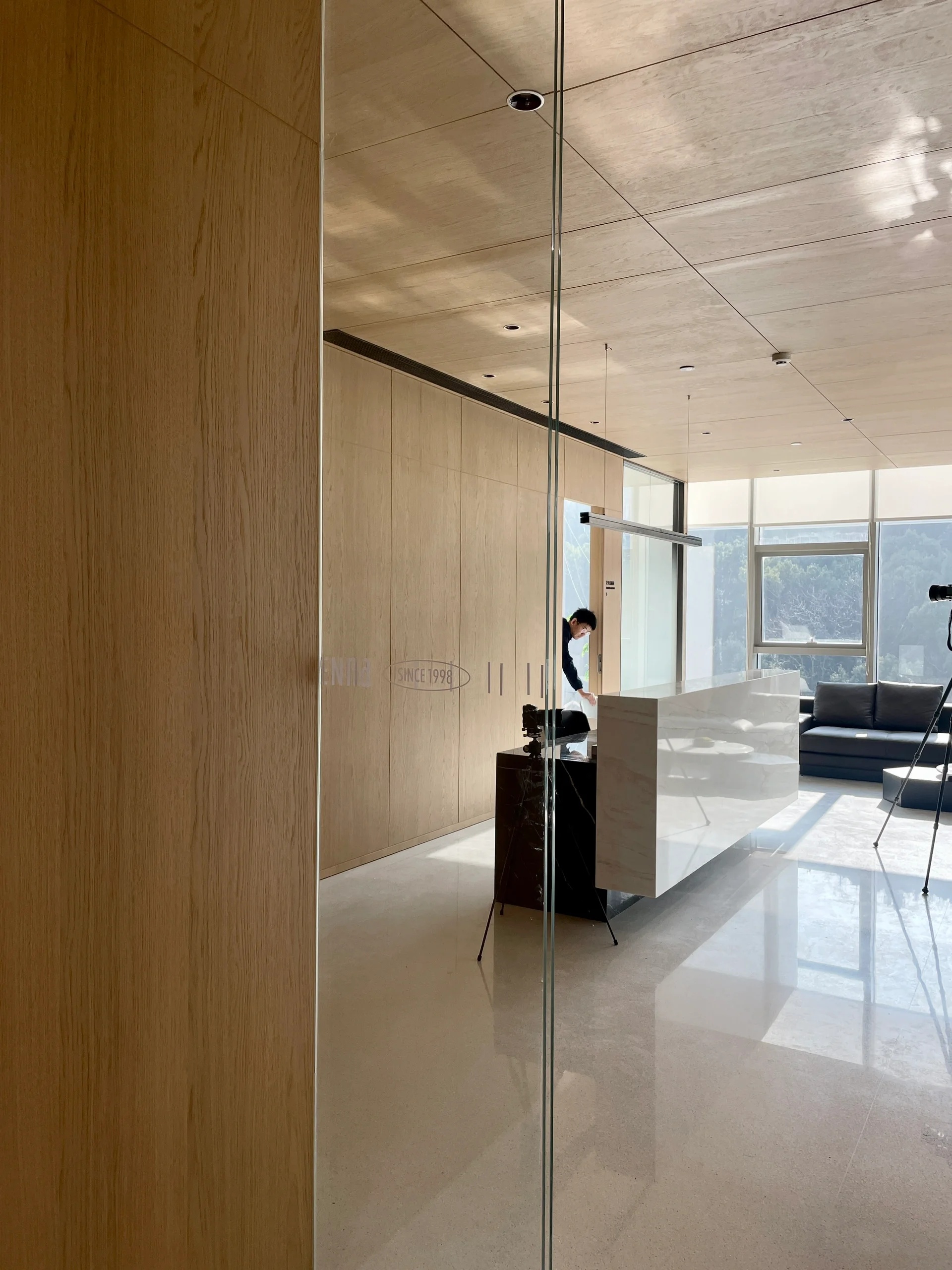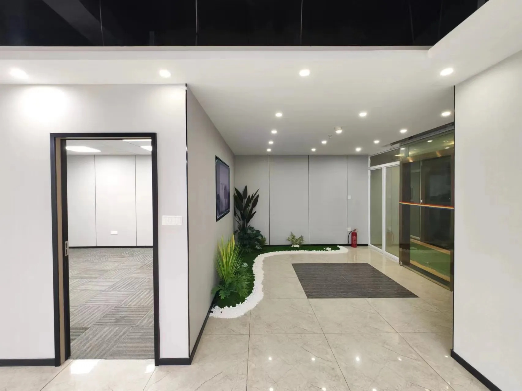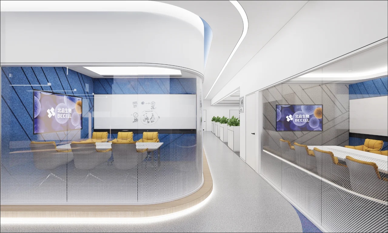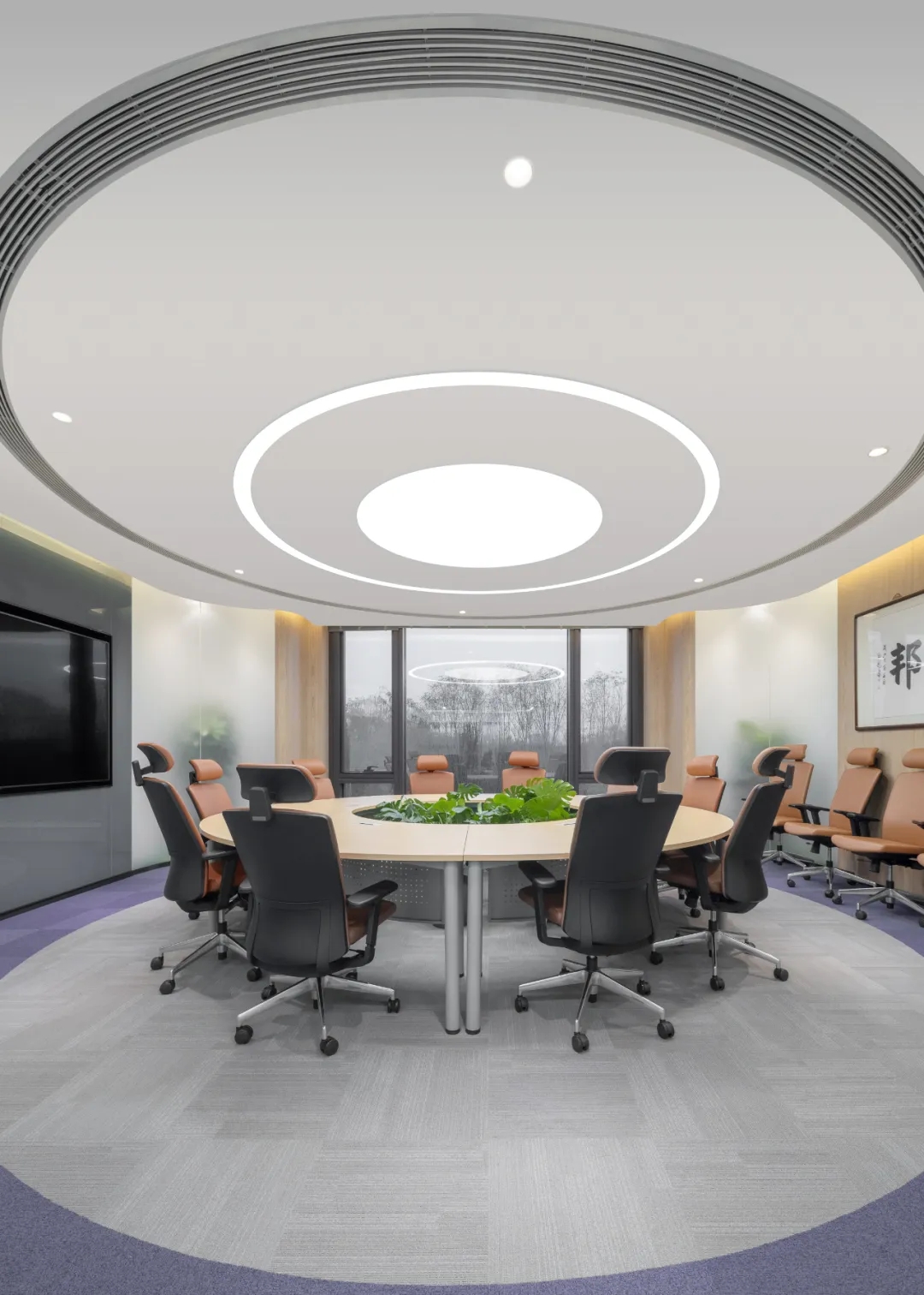 1F整体设计概念从水木明拓氢能科技有限公司的性质出发,打造科技未来感的空间,以灵动的曲线元素为基础型态,呈现出一个流动感的核心空间,凸显企业科技形象。2F为员工办公层,设计师以开放、平等、自由等关键词展开,摒弃繁复的装饰,保留利落的线条和简约的结构,寻求将空间缩减到最基本的形式去满足“人”对空间需求,简洁、简约、回归“少即是多”的设计理念。