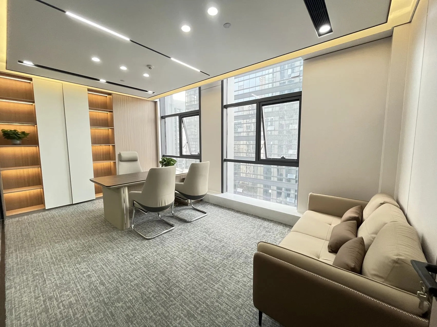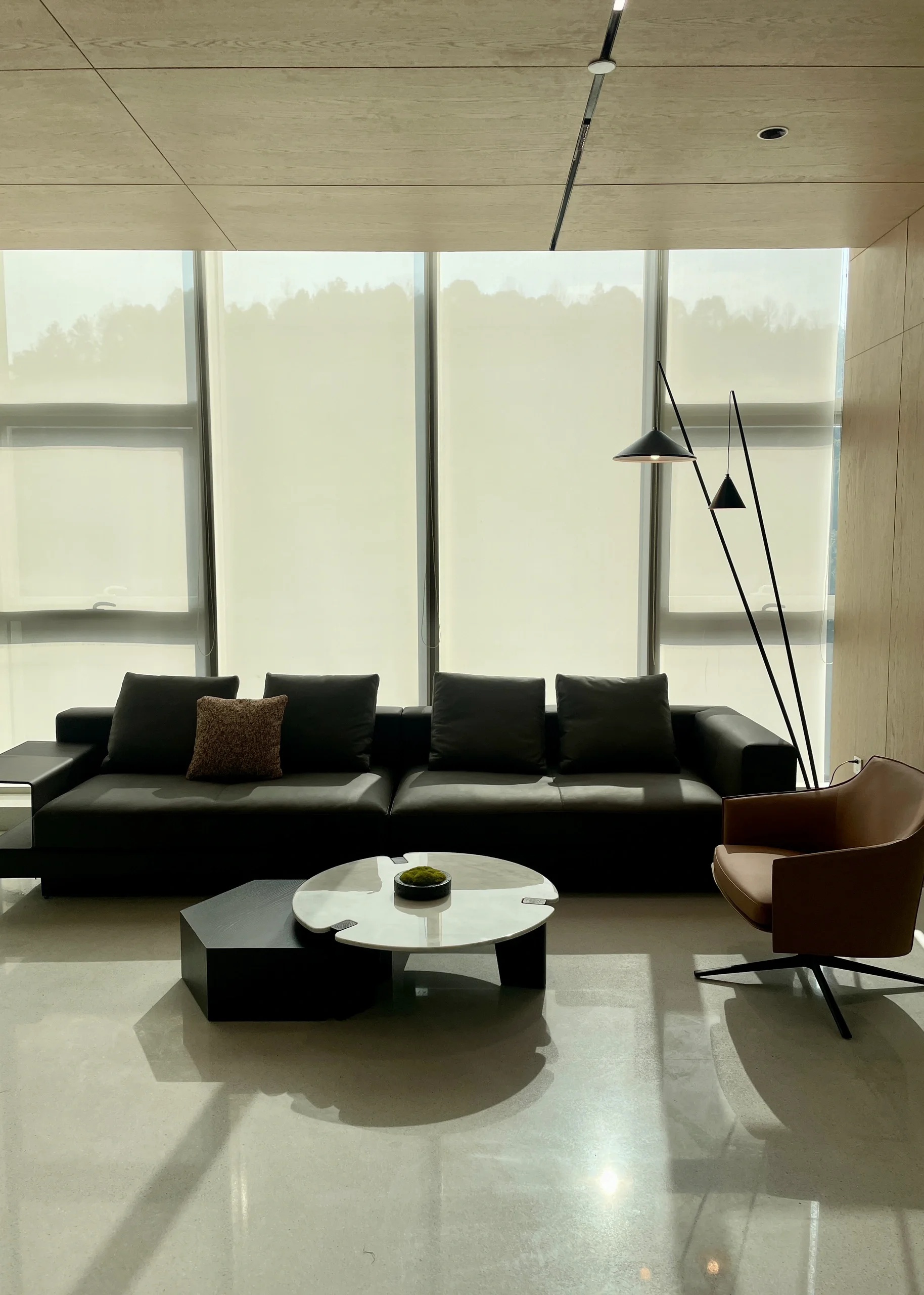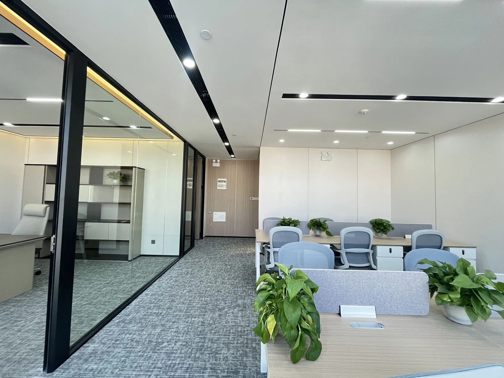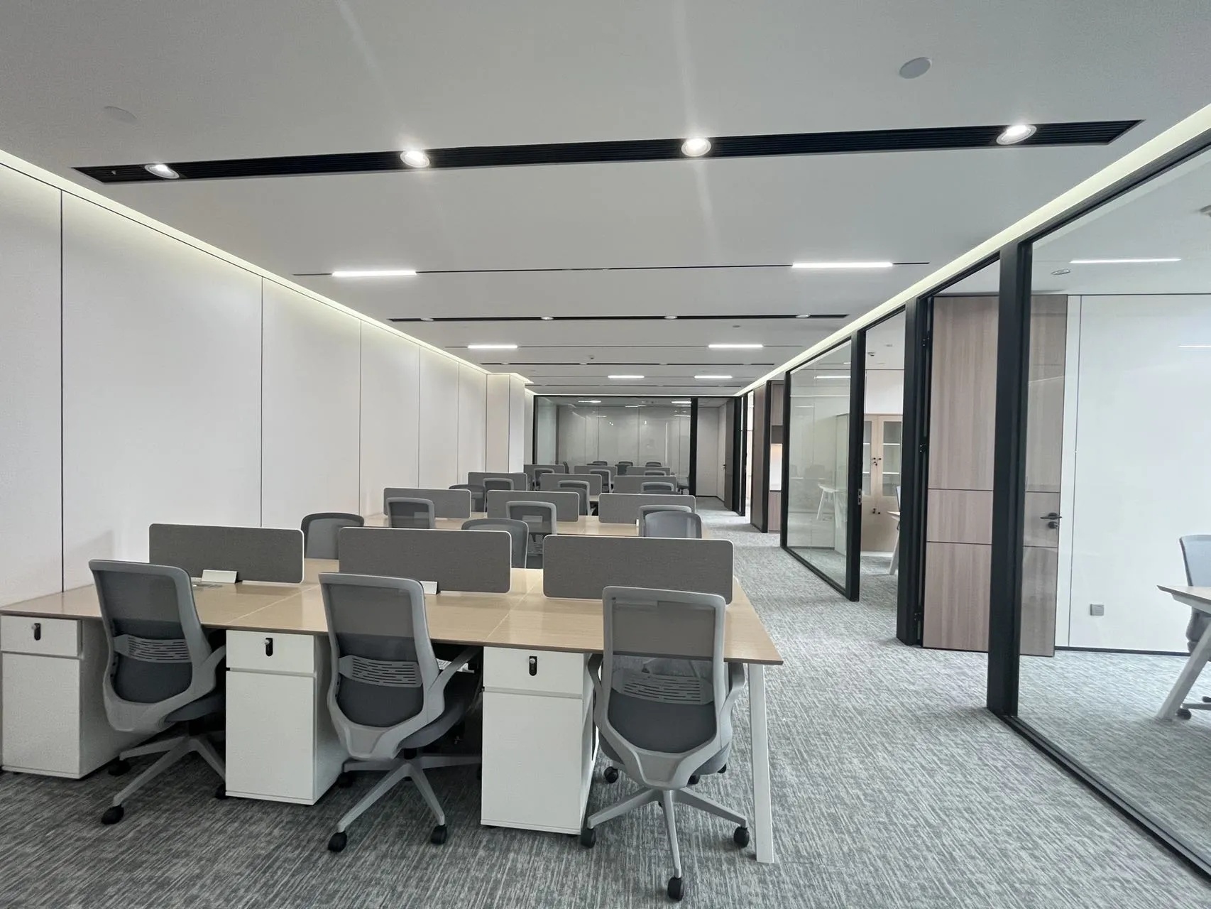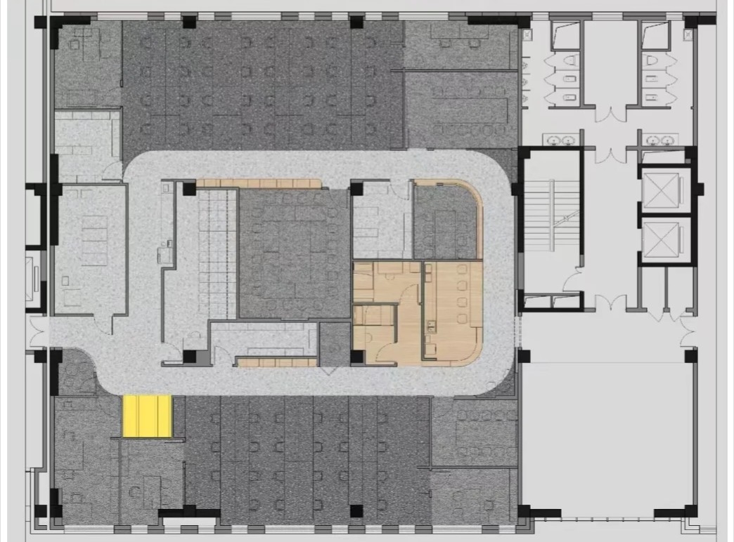 1F整体设计概念从水木明拓氢能科技有限公司的性质出发,打造科技未来感的空间,以灵动的曲线元素为基础型态,呈现出一个流动感的核心空间,凸显企业科技形象。2F为员工办公层,设计师以开放、平等、自由等关键词展开,摒弃繁复的装饰,保留利落的线条和简约的结构,寻求将空间缩减到最基本的形式去满足“人”对空间需求,简洁、简约、回归“少即是多”的设计理念。