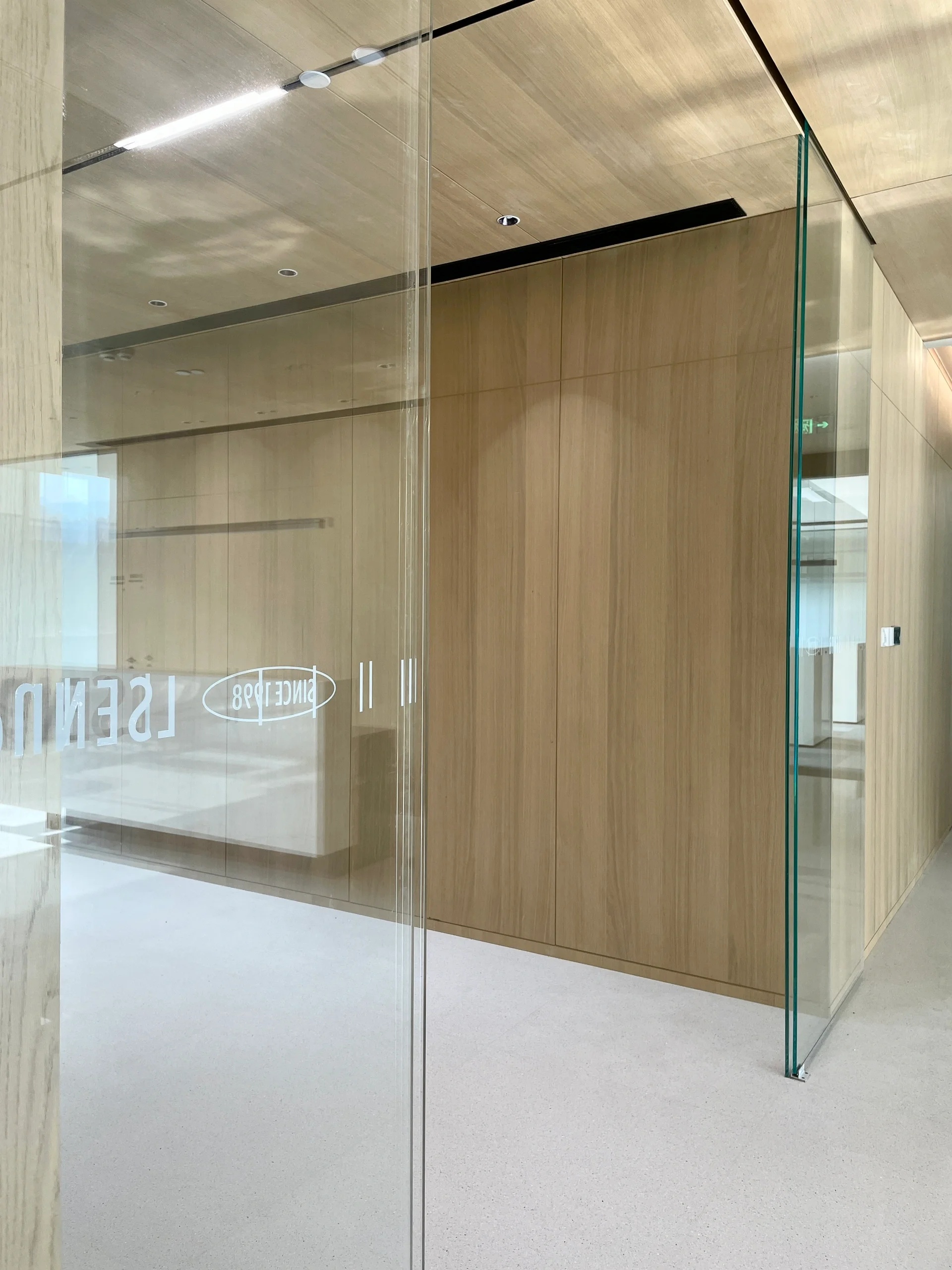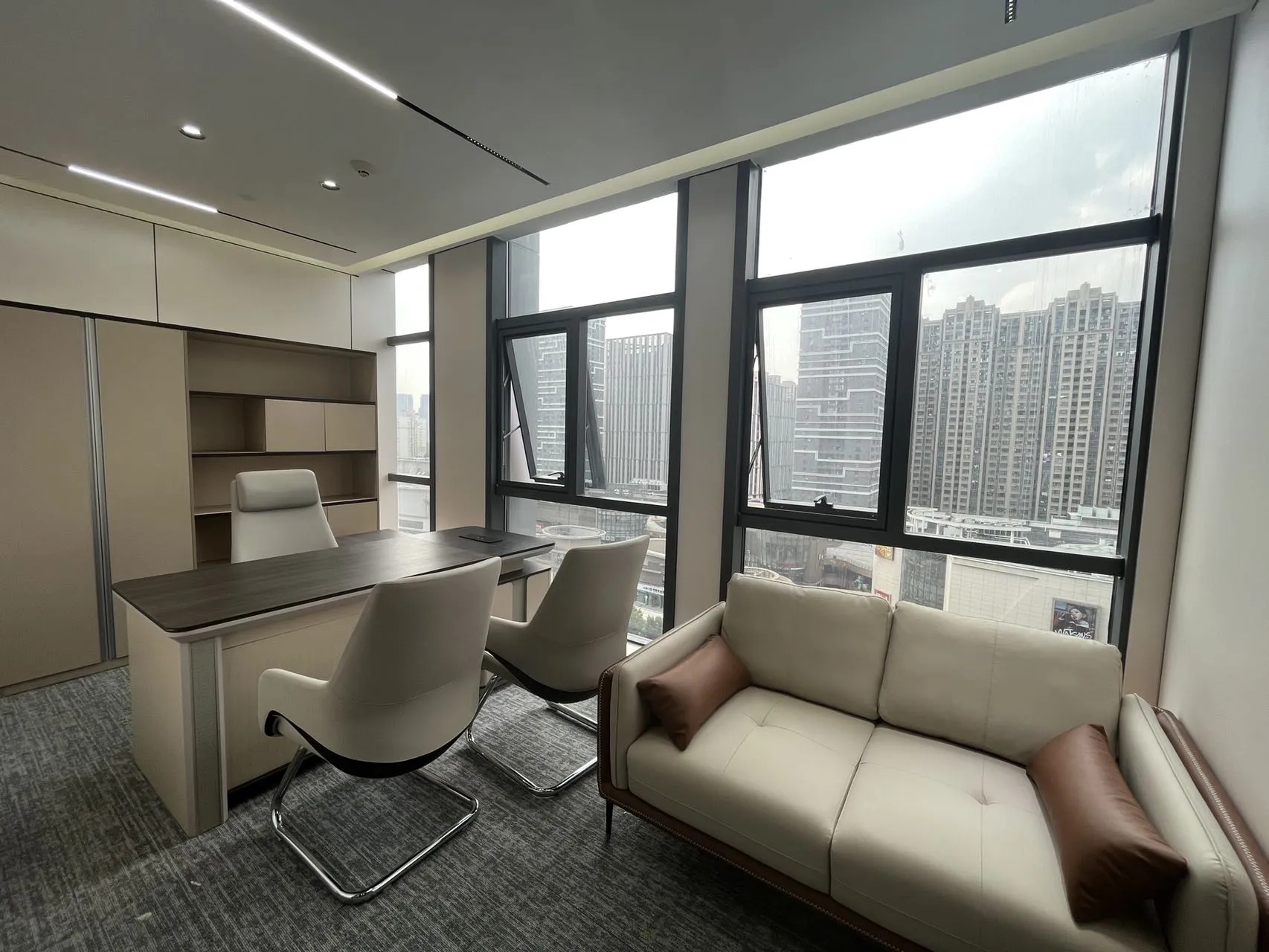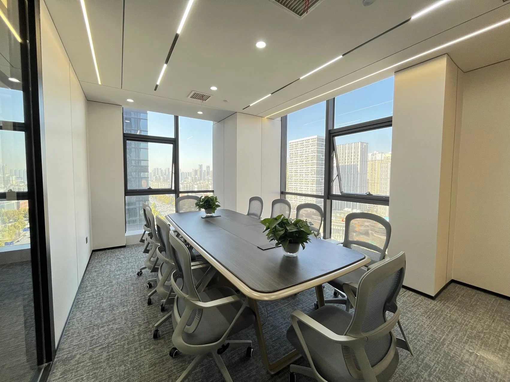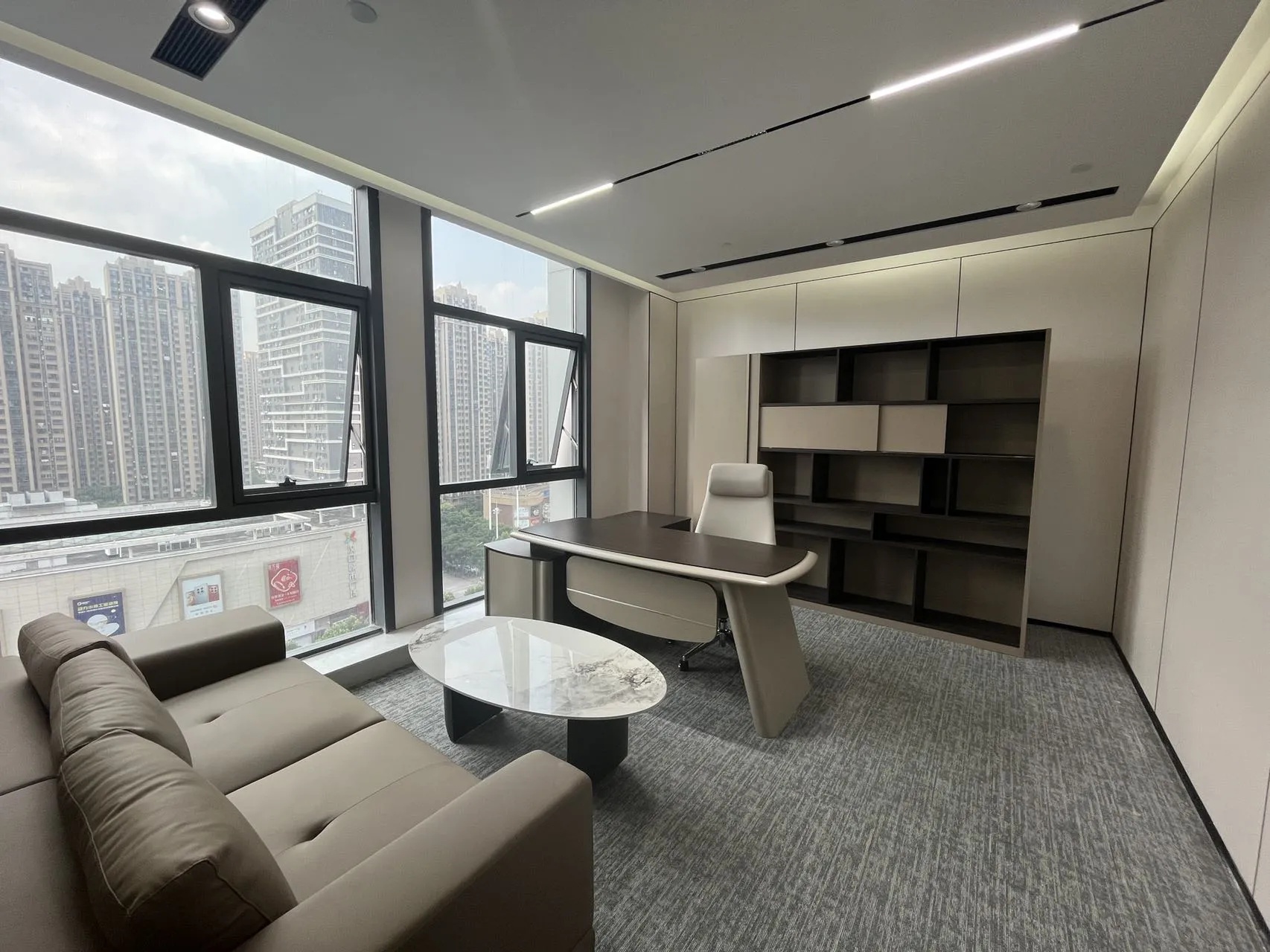 1F整体设计概念从水木明拓氢能科技有限公司的性质出发,打造科技未来感的空间,以灵动的曲线元素为基础型态,呈现出一个流动感的核心空间,凸显企业科技形象。2F为员工办公层,设计师以开放、平等、自由等关键词展开,摒弃繁复的装饰,保留利落的线条和简约的结构,寻求将空间缩减到最基本的形式去满足“人”对空间需求,简洁、简约、回归“少即是多”的设计理念。