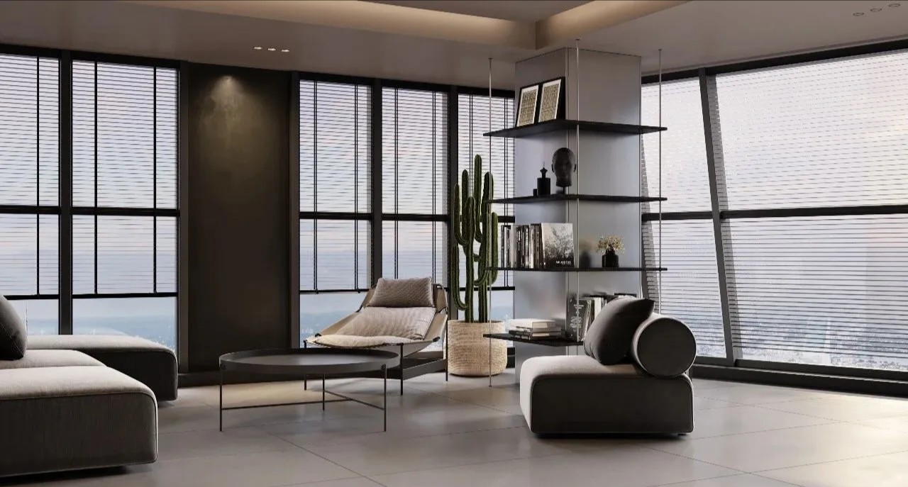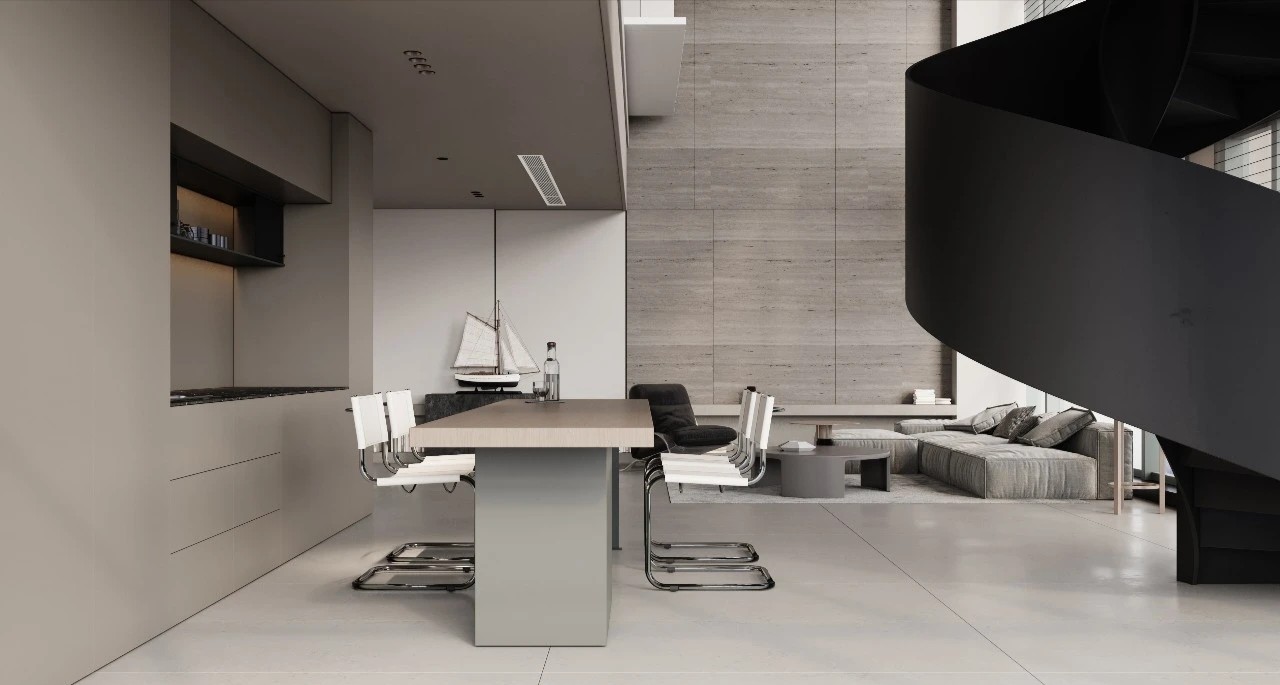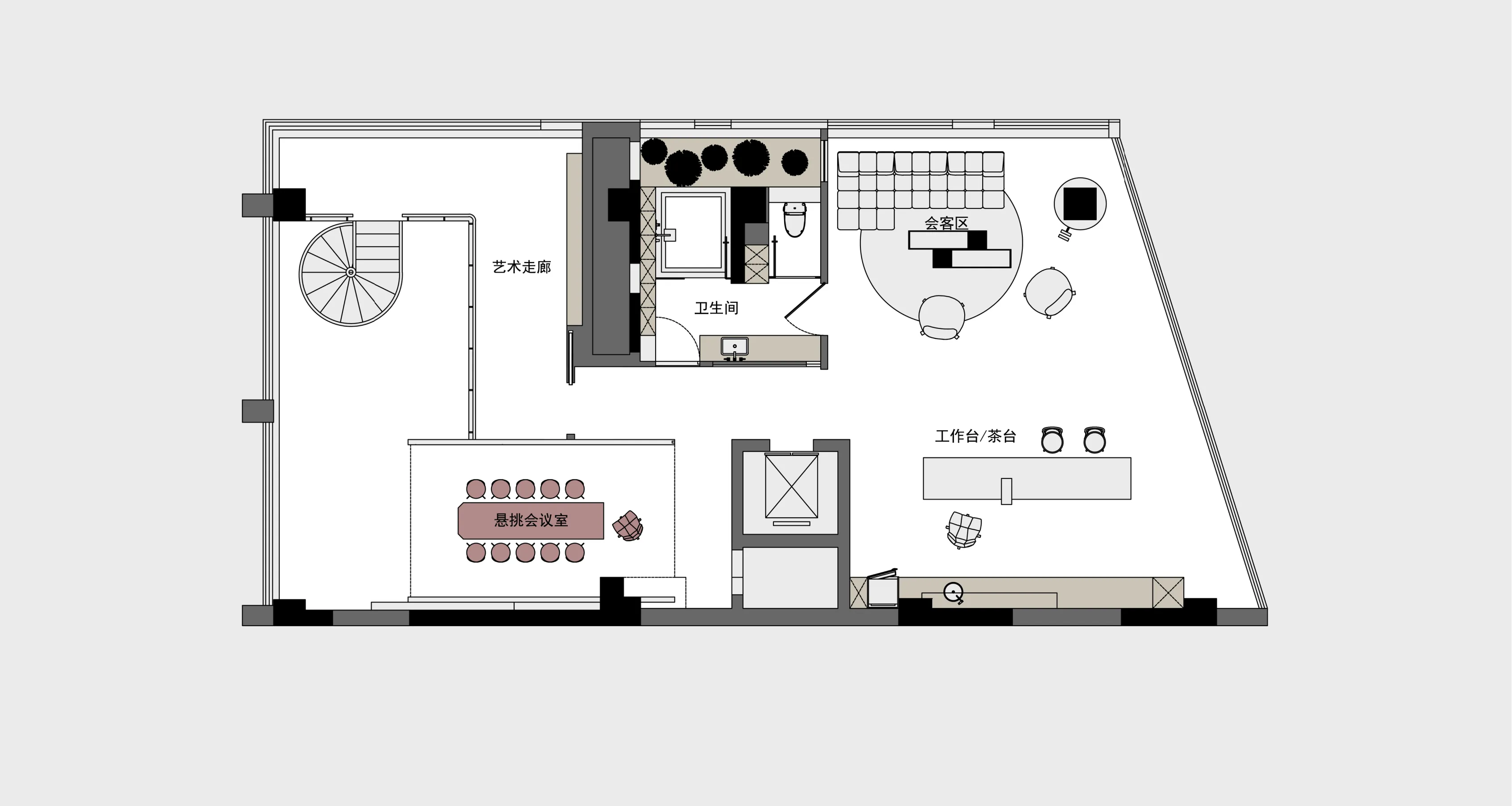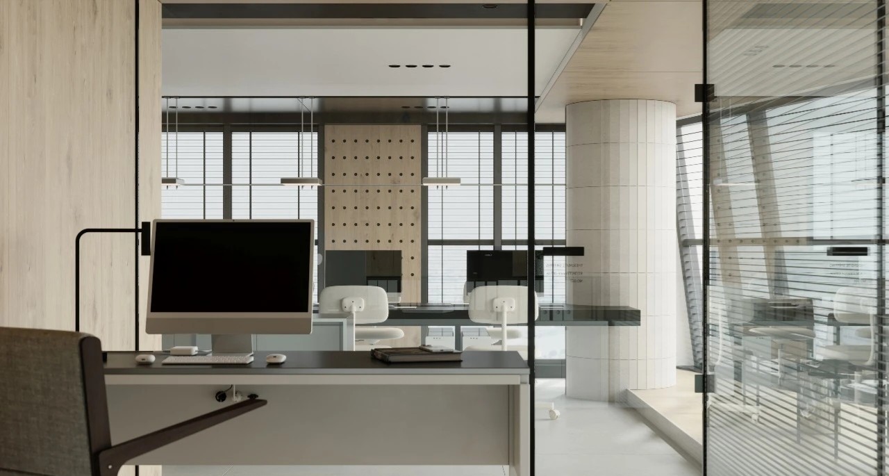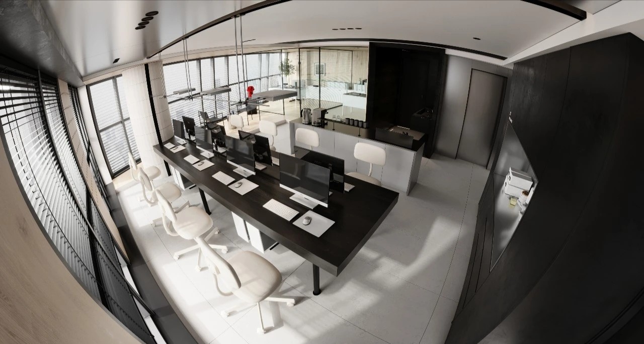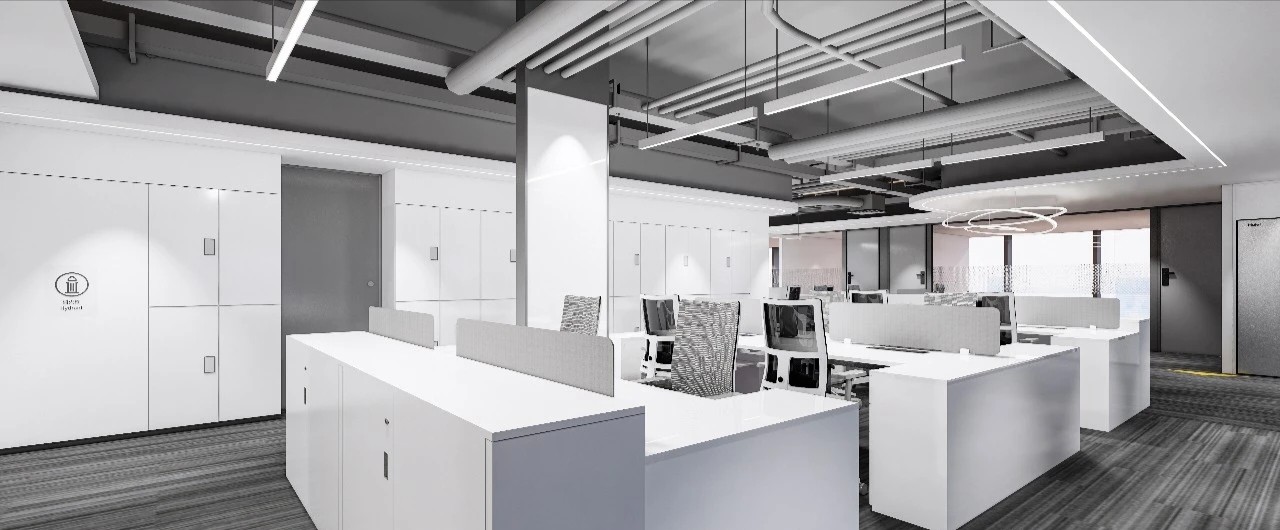 从电梯厅进入到前台区域,迎面而来的是一个拥有充足的自然采光、视野开阔、极具创意的时尚空间。宽敞的前厅设有舒适开放的访客等候区,这里也用作内部团队的交流协作,营造出一个轻松舒适的休闲氛围。前厅等候区设有一面超大的多媒体数字显示屏幕,主要用向来访者展示盈科品牌故事、同时也兼作公司会议与培训时的演示屏幕。简洁干练的设计让这里焕发着时尚科技的气息。这些洽谈室、小型讨论间、开放式休闲讨论区等空间,为律师提供了稍事休息、交流互动的灵活空间选择,鼓励律师在空间中走动互通,舒缓身心。