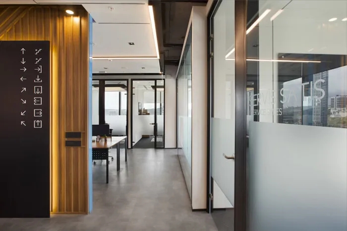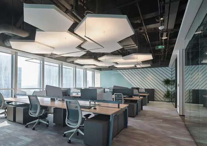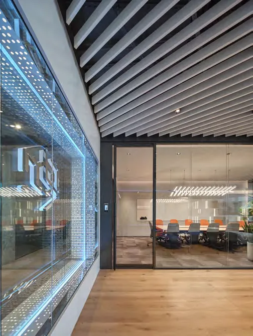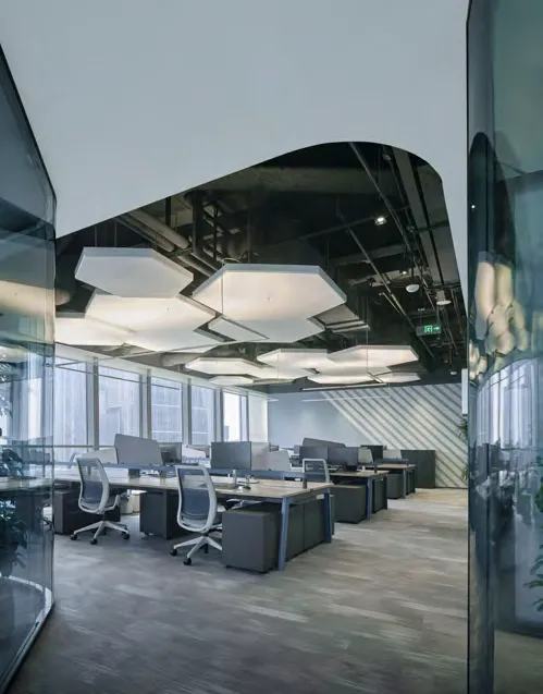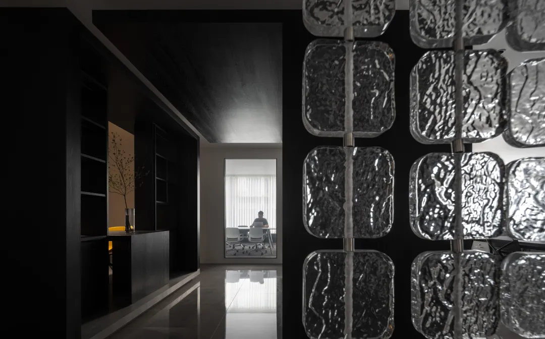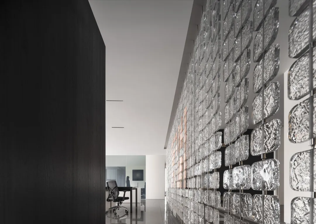 大厅处,以水晶墙镂空作隔断,犹如一幅大网,仿如巧匠之作,不仅保持空气流畅,还引入了充裕光线。在这样的环境中办公,克制了传统的束缚,携来全新风尚,为办公环境营造出一种轻松自在的氛围。