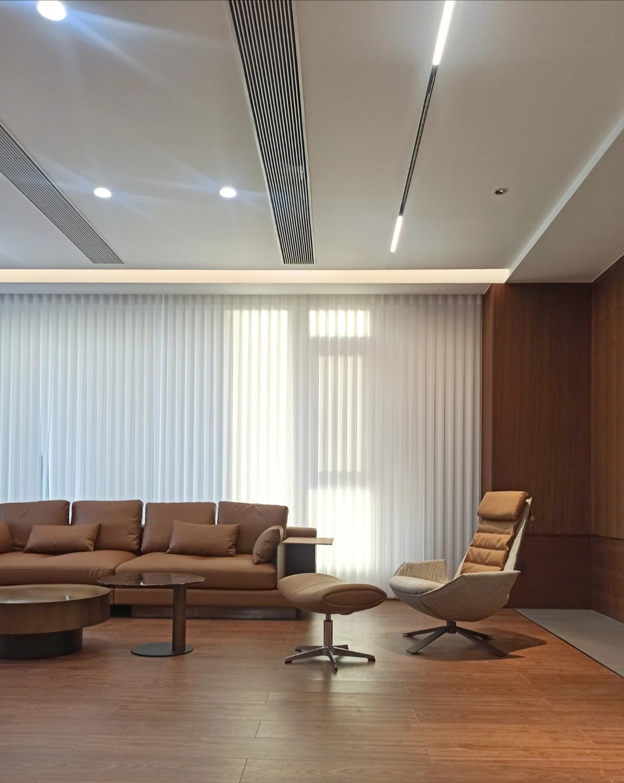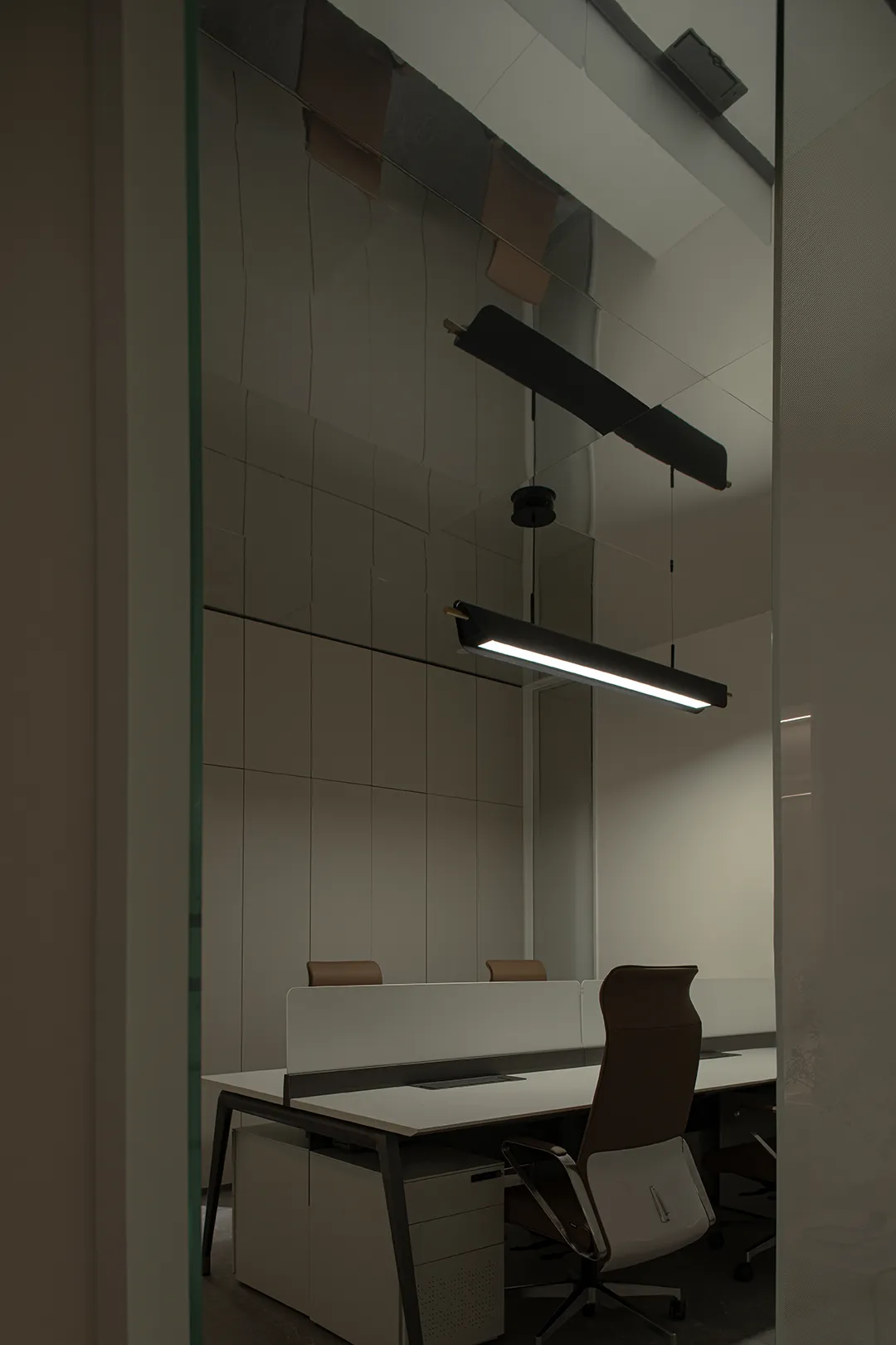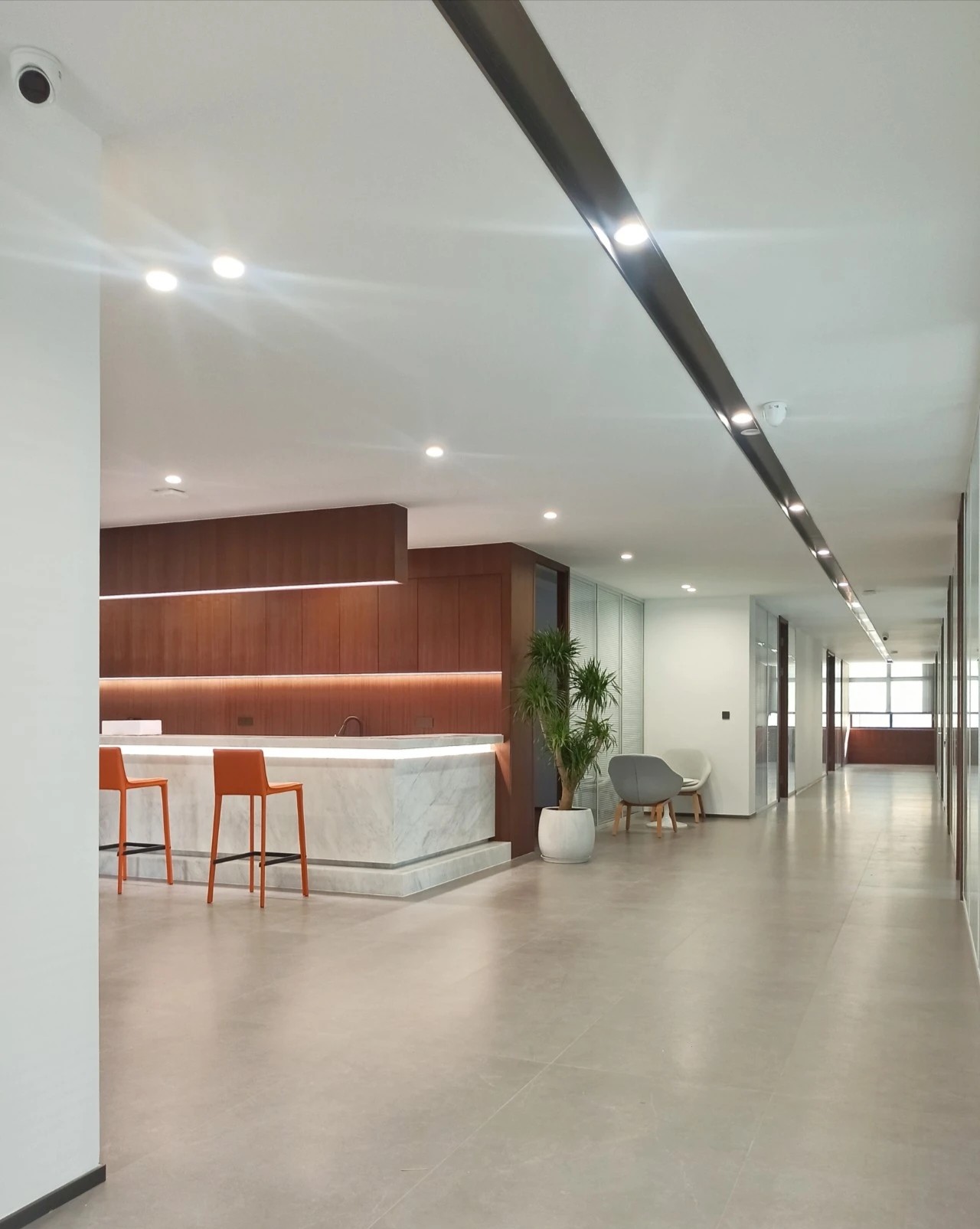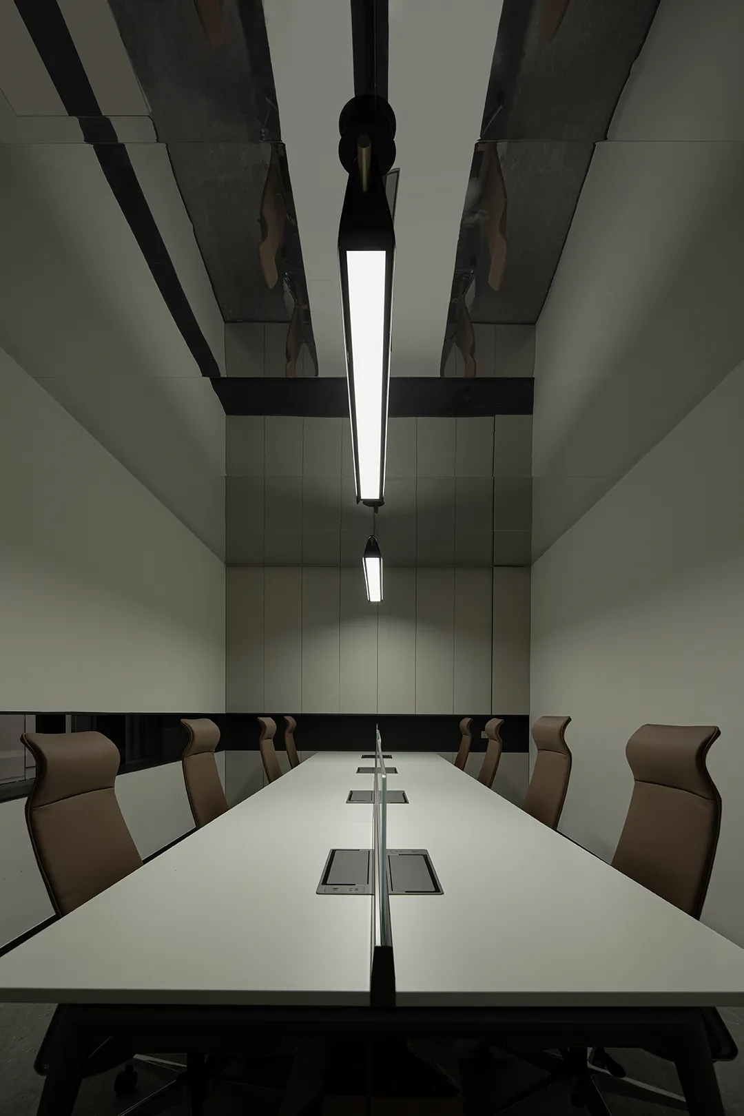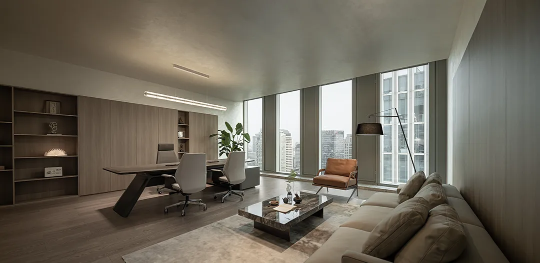 与此同时,设计所强调的一致性与序列性,始终贯穿于现代办公大环境,并融入多元化的辅助功能空间,专注而高效、冷静而沉着。布局合理、错落有致的办公空间分布,让人可以在工作和短暂休息间灵活切换。几何构成感的顶面造型,搭配极简休闲艺术家具,为办公空间带来了独特的艺术化表达。