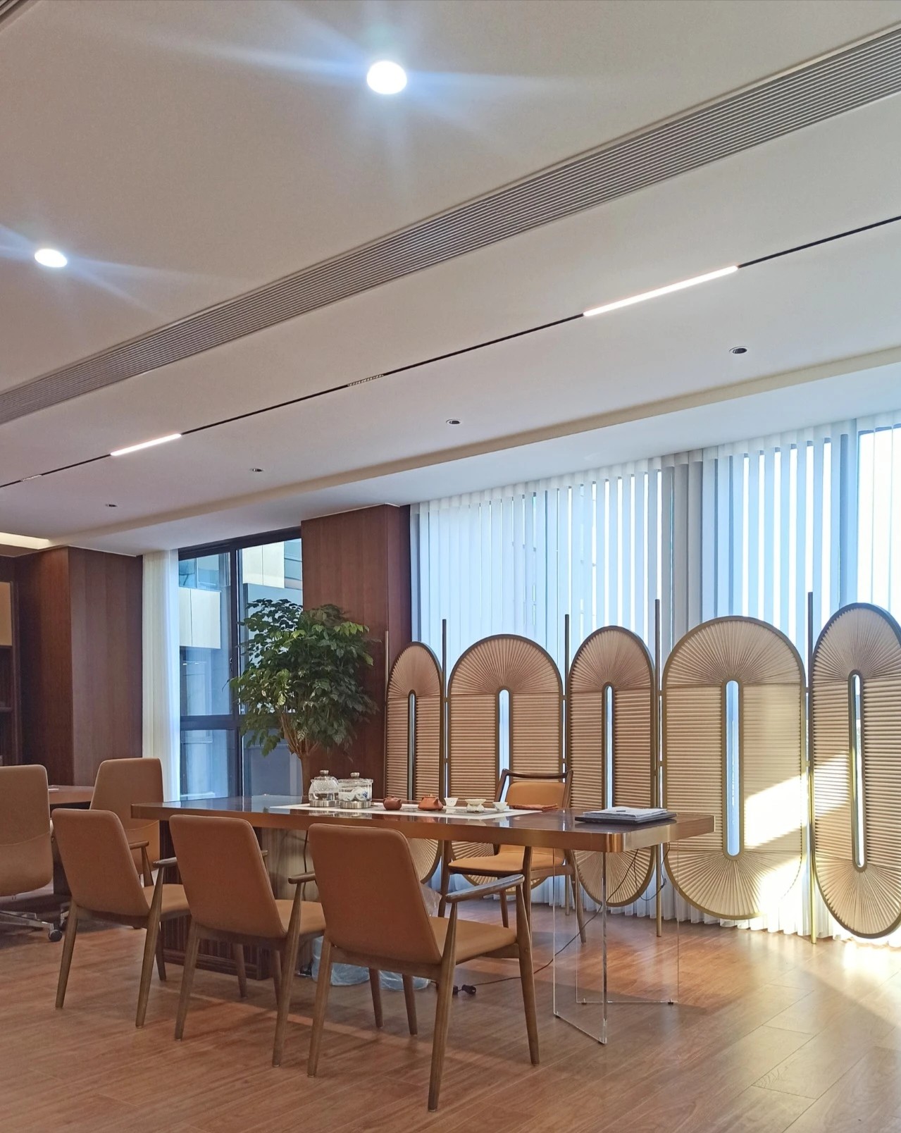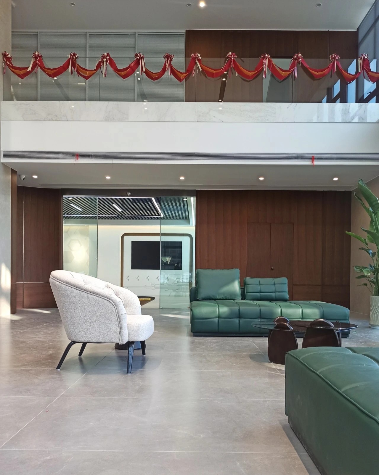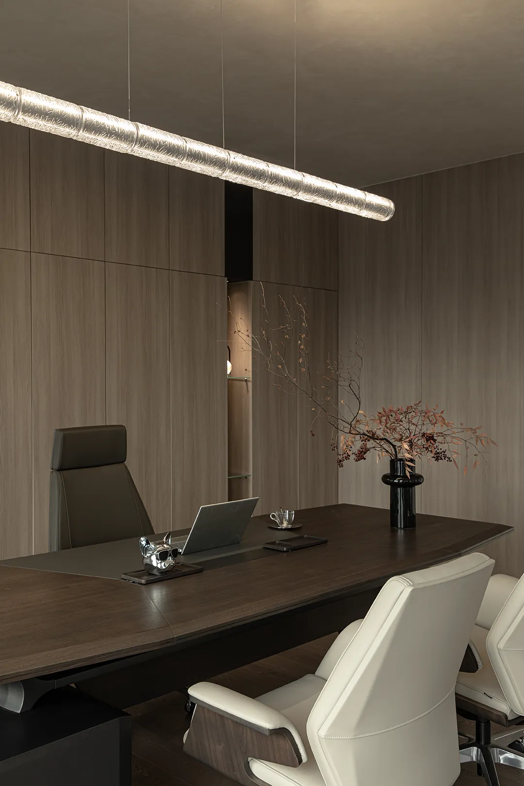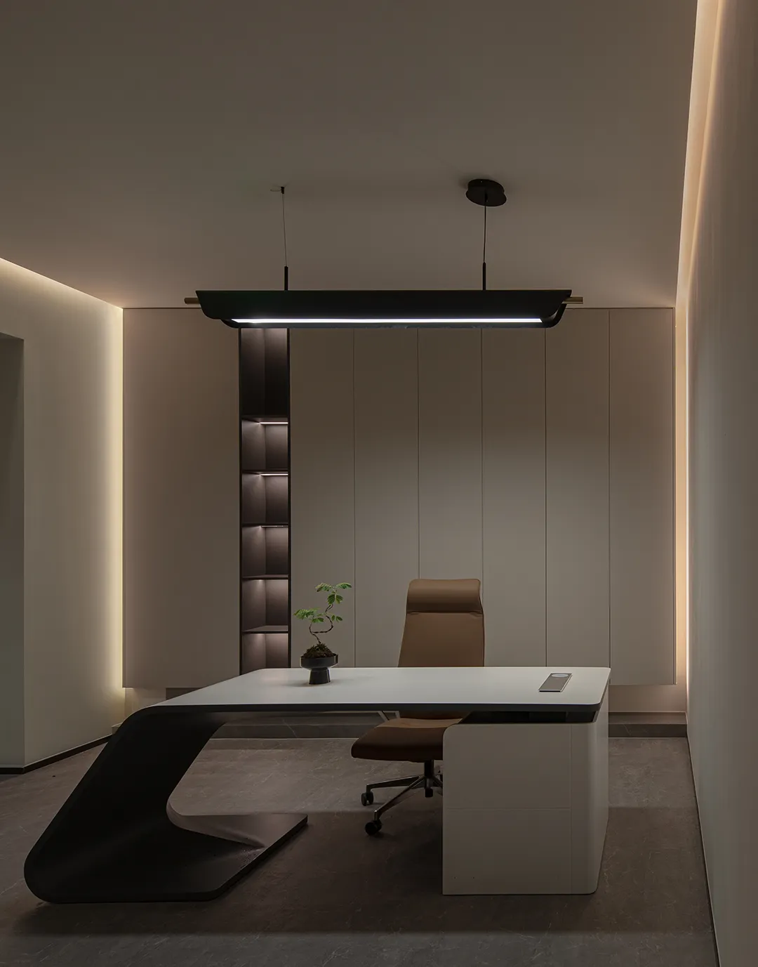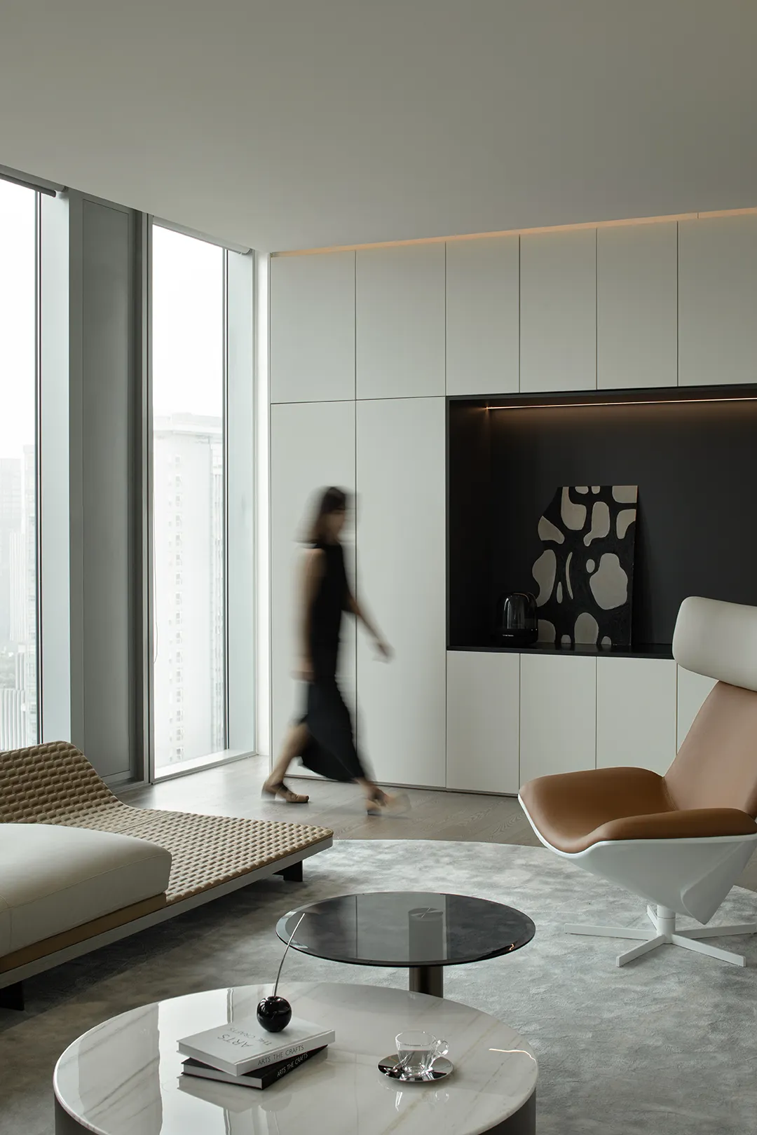 与此同时,设计所强调的一致性与序列性,始终贯穿于现代办公大环境,并融入多元化的辅助功能空间,专注而高效、冷静而沉着。布局合理、错落有致的办公空间分布,让人可以在工作和短暂休息间灵活切换。几何构成感的顶面造型,搭配极简休闲艺术家具,为办公空间带来了独特的艺术化表达。