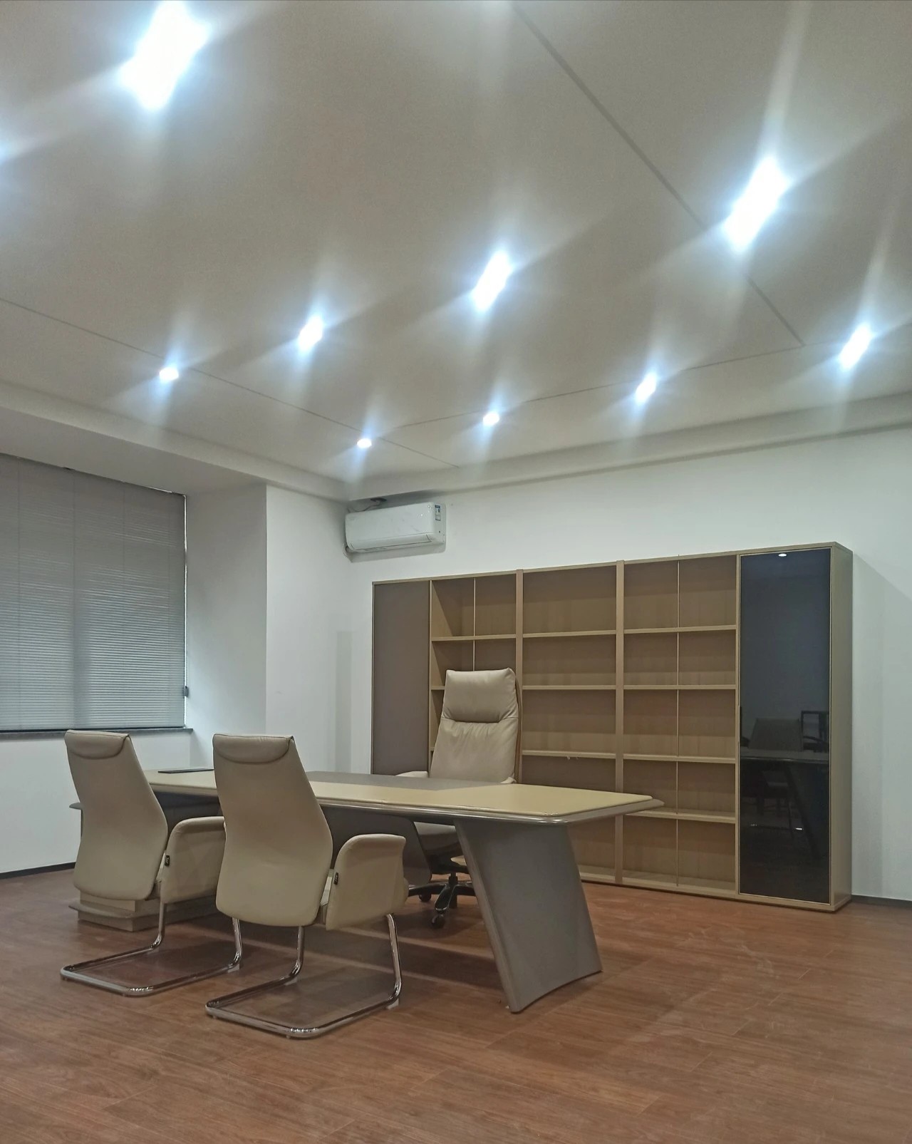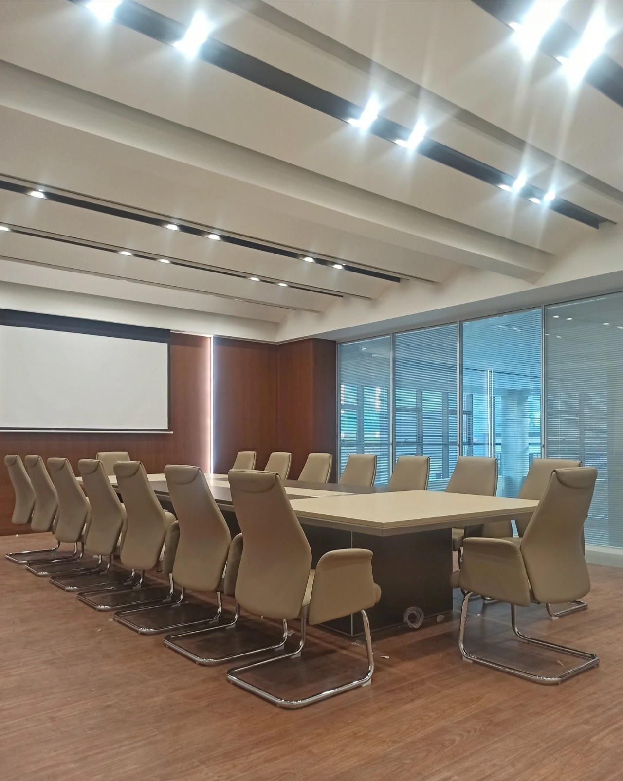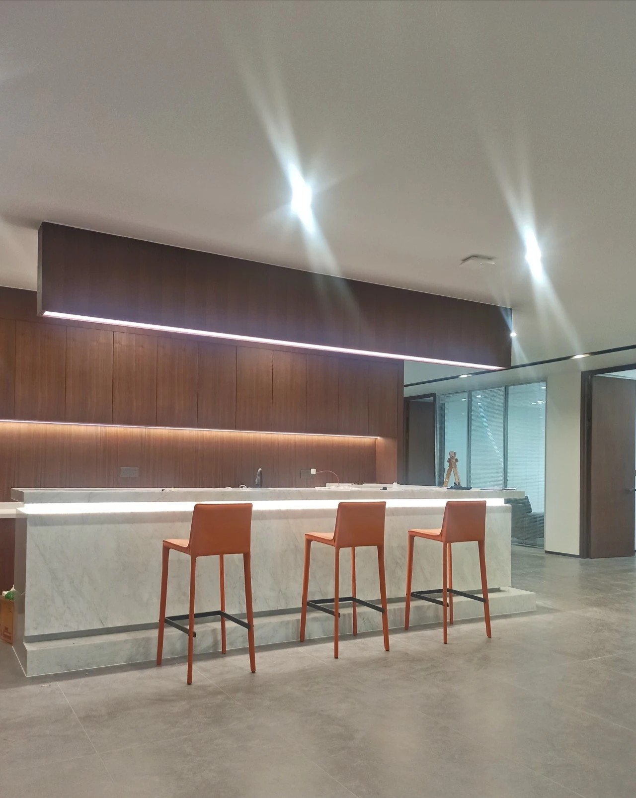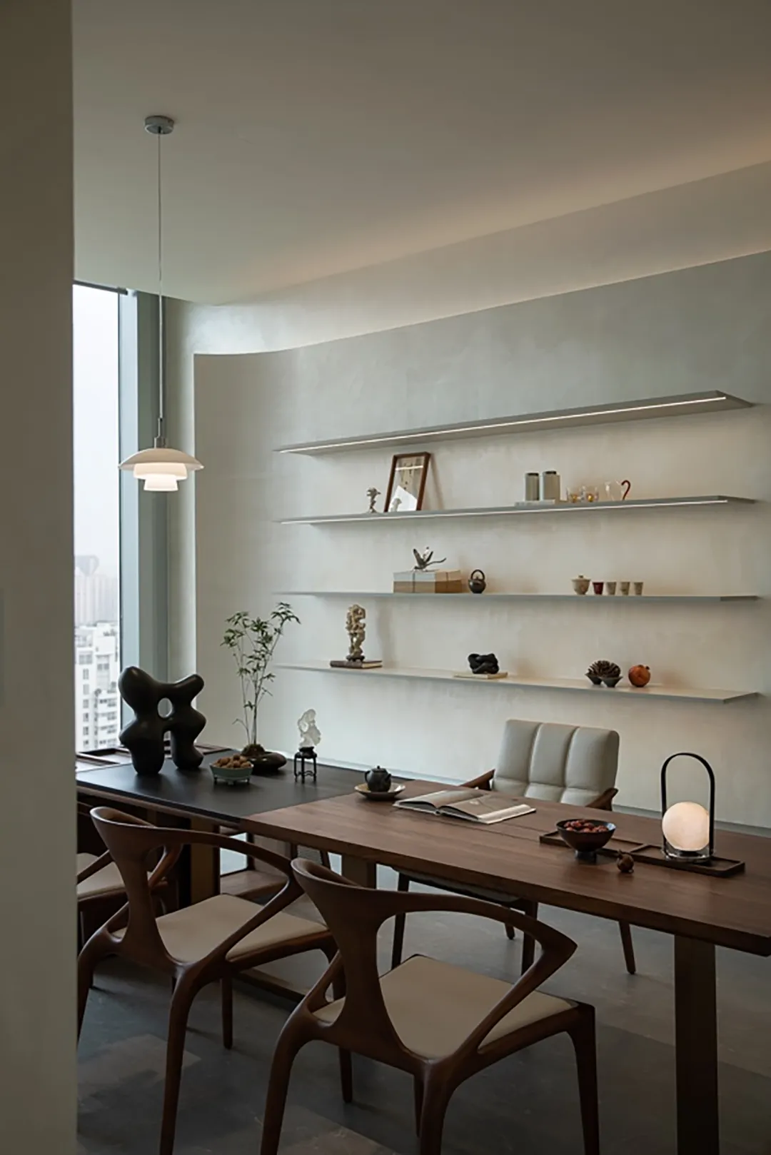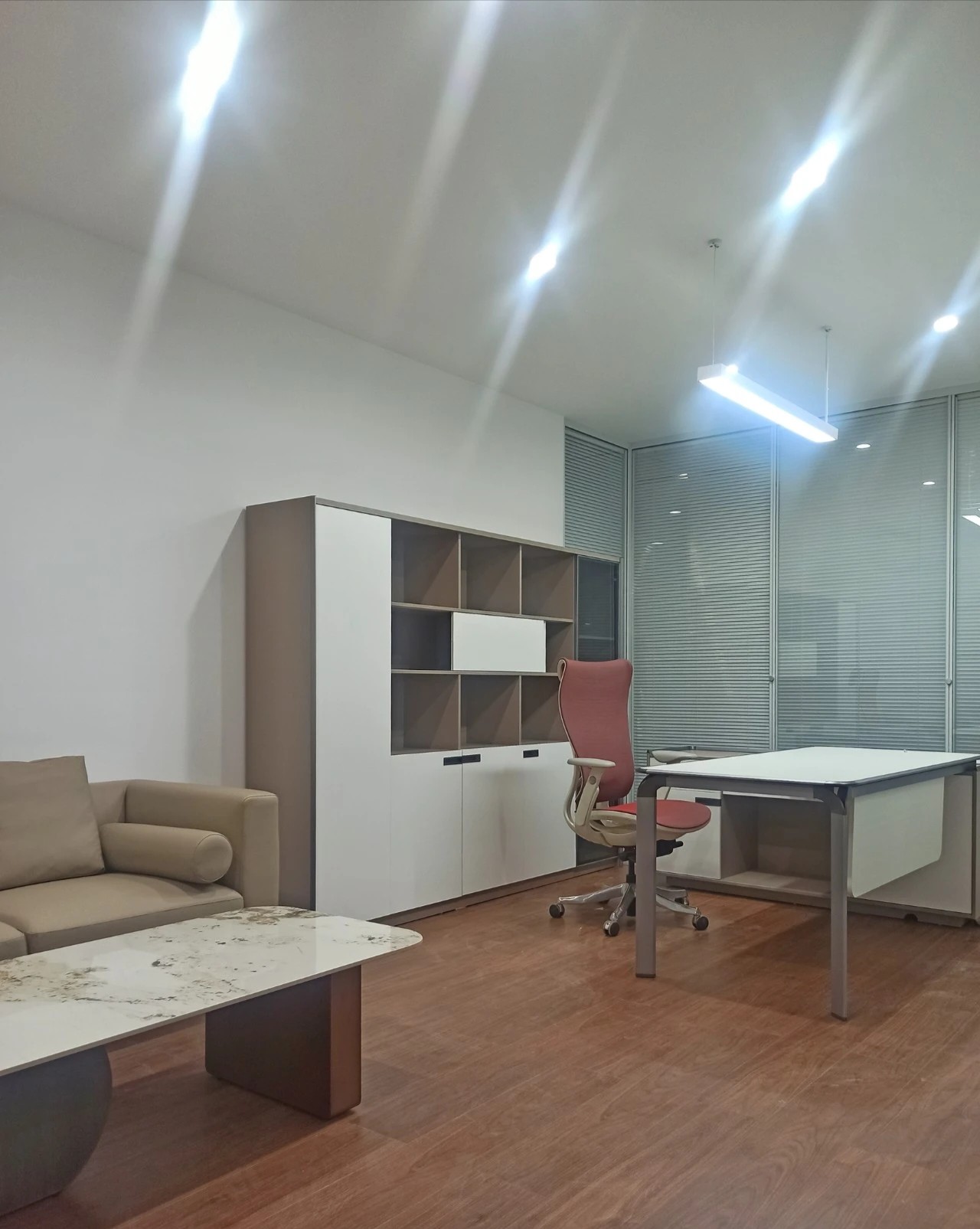 与此同时,设计所强调的一致性与序列性,始终贯穿于现代办公大环境,并融入多元化的辅助功能空间,专注而高效、冷静而沉着。布局合理、错落有致的办公空间分布,让人可以在工作和短暂休息间灵活切换。几何构成感的顶面造型,搭配极简休闲艺术家具,为办公空间带来了独特的艺术化表达。