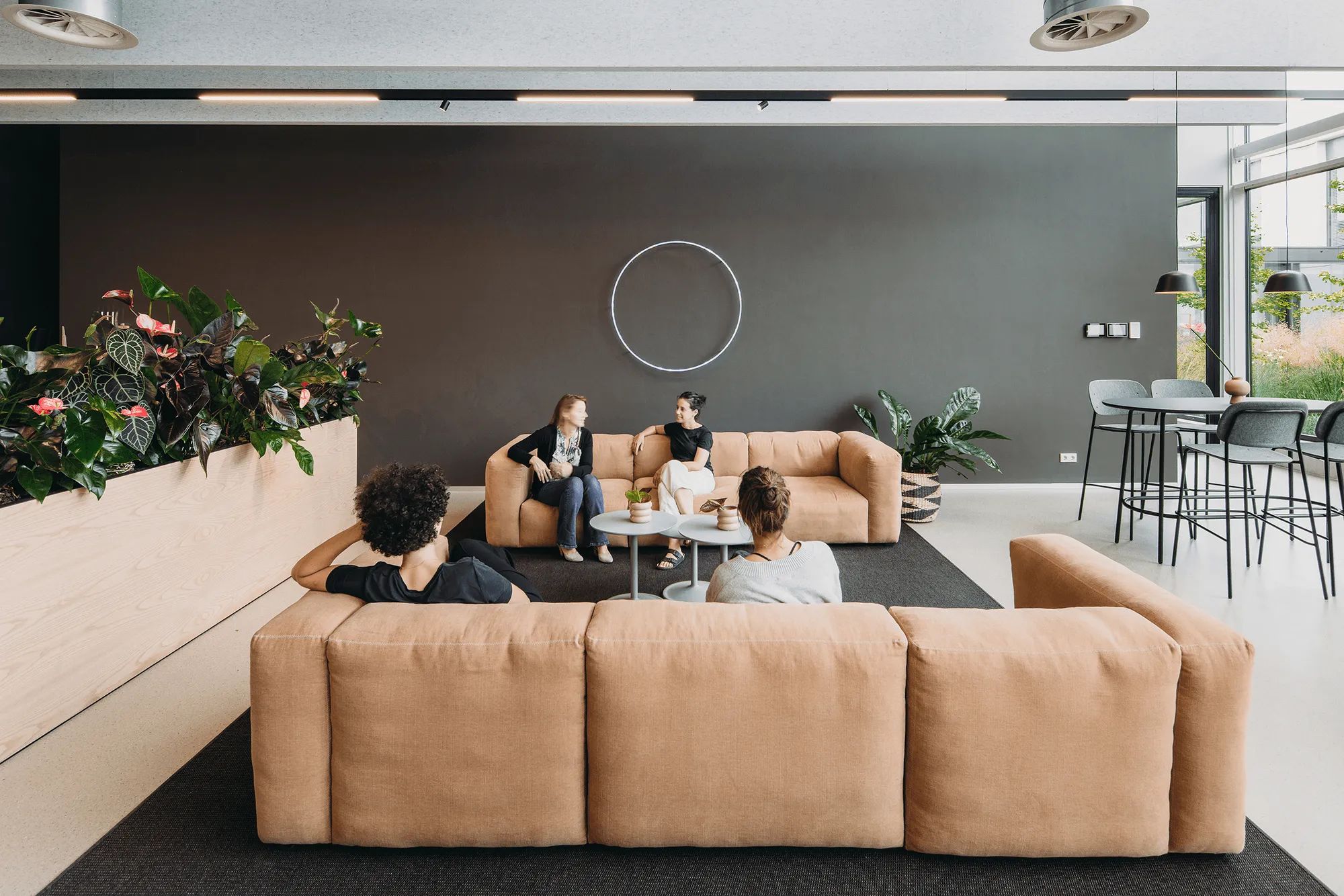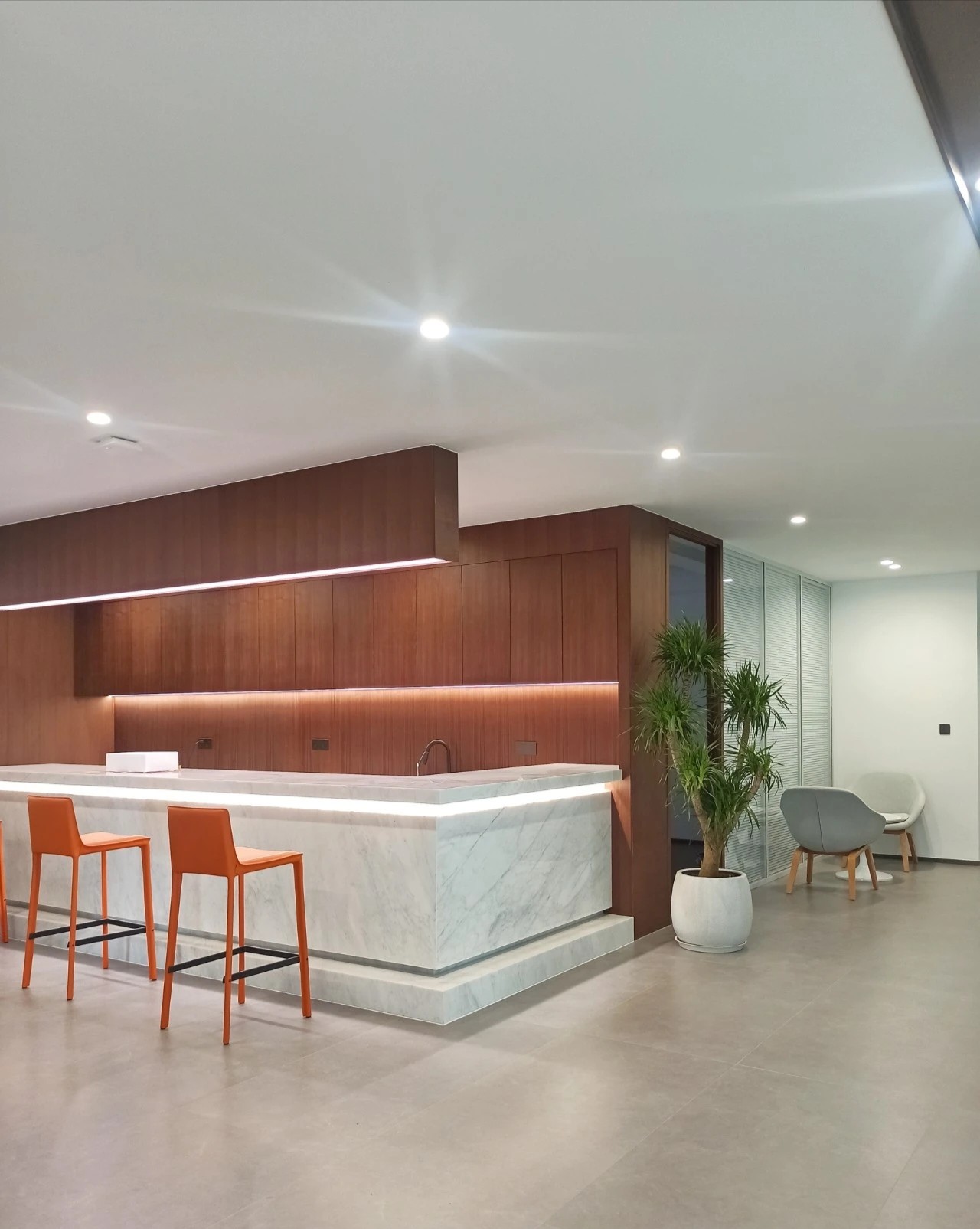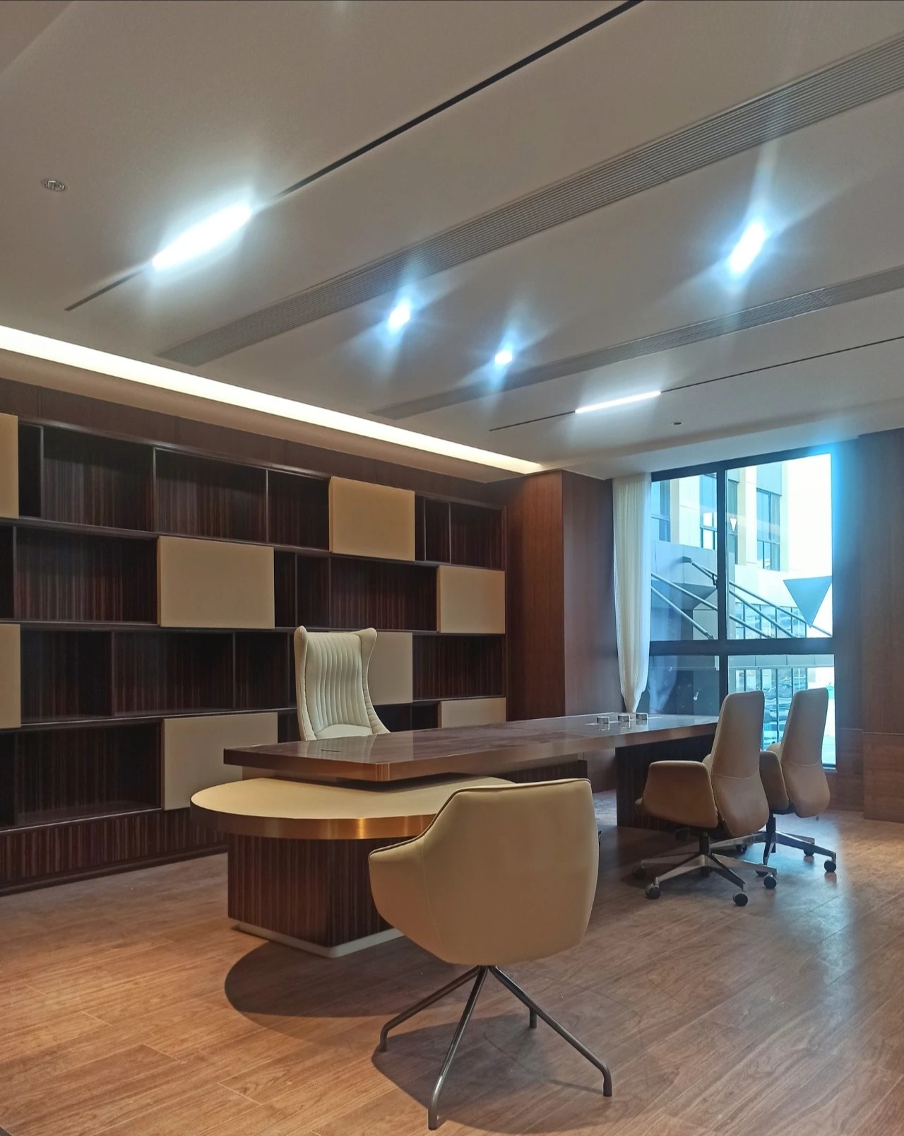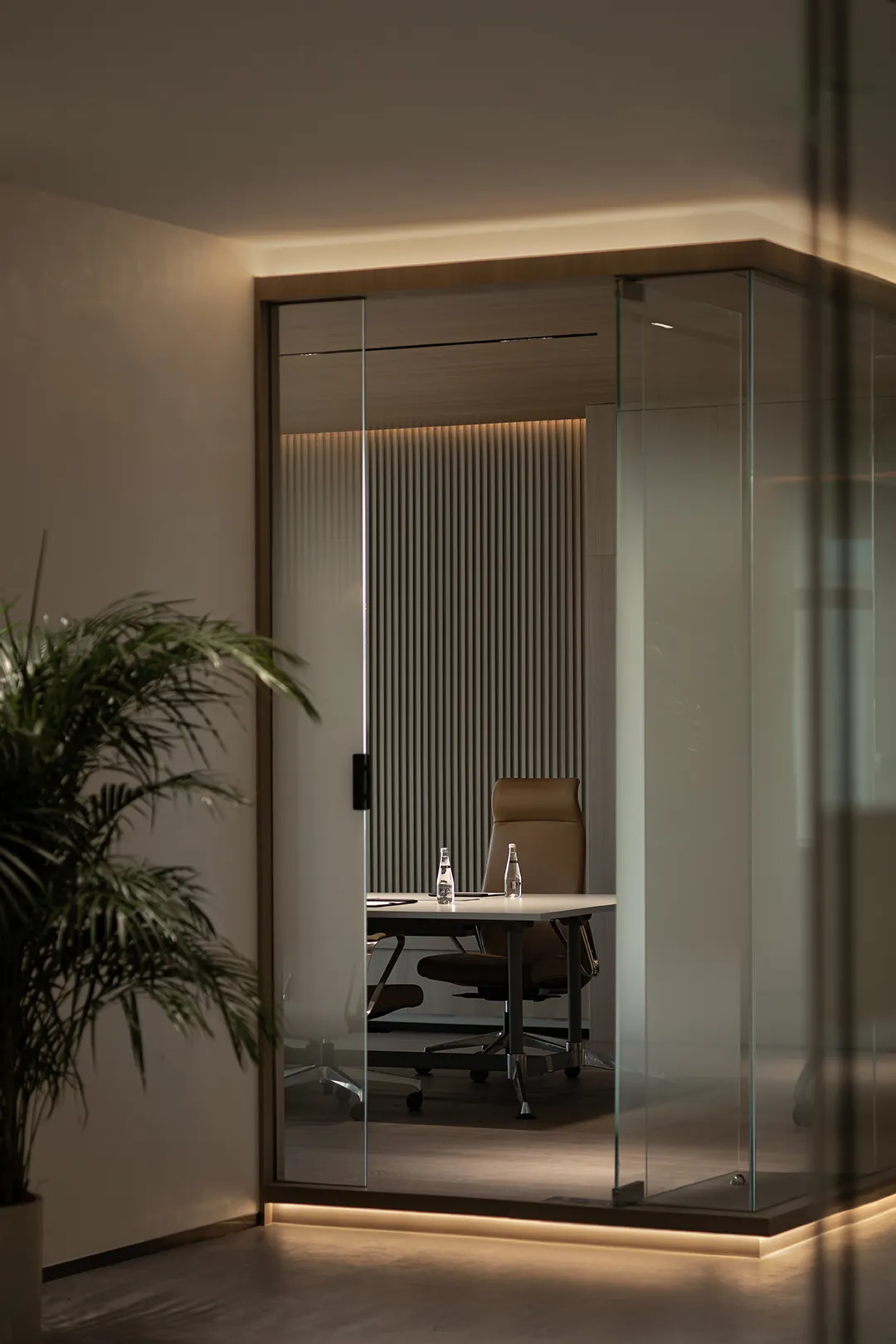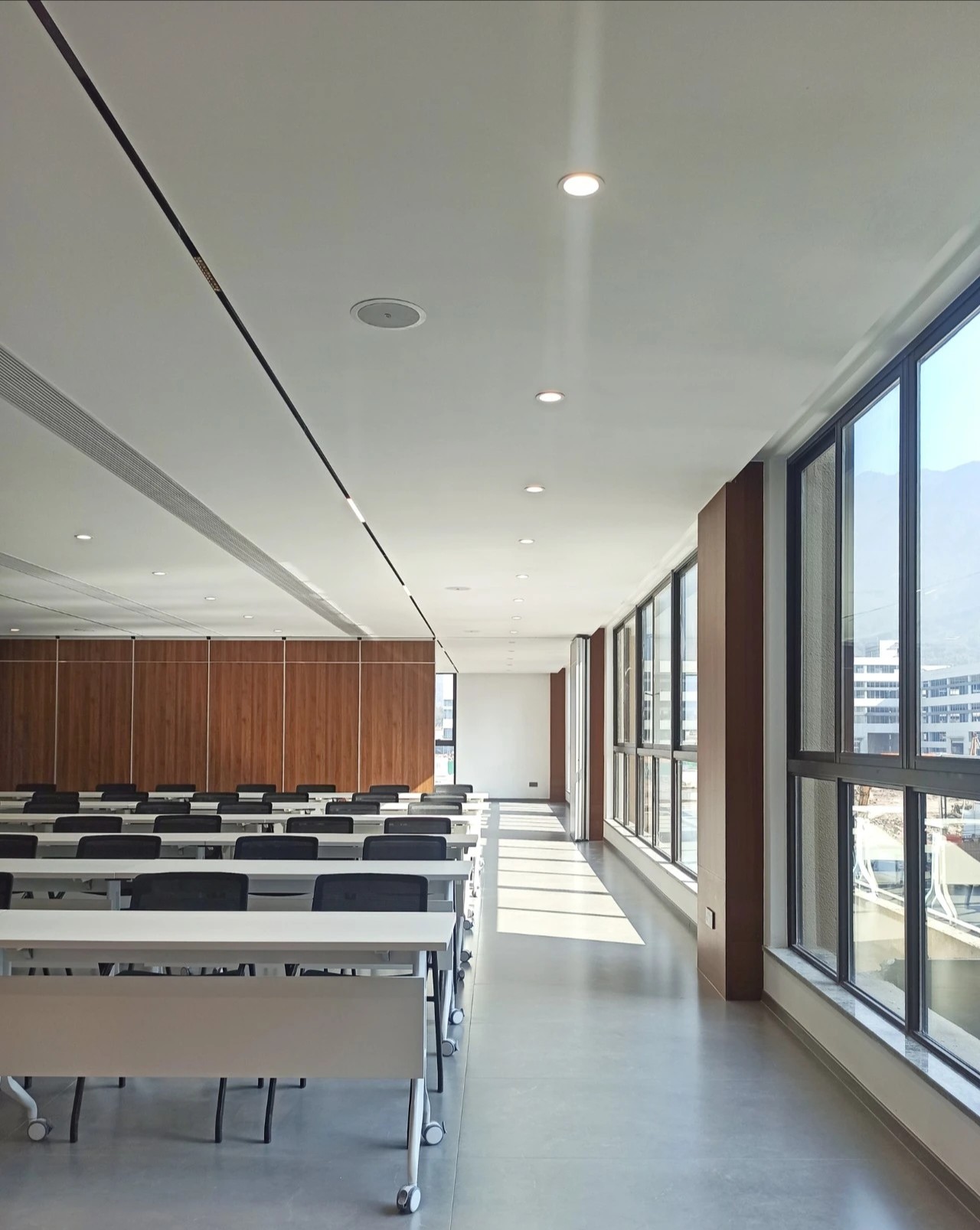 与此同时,设计所强调的一致性与序列性,始终贯穿于现代办公大环境,并融入多元化的辅助功能空间,专注而高效、冷静而沉着。布局合理、错落有致的办公空间分布,让人可以在工作和短暂休息间灵活切换。几何构成感的顶面造型,搭配极简休闲艺术家具,为办公空间带来了独特的艺术化表达。