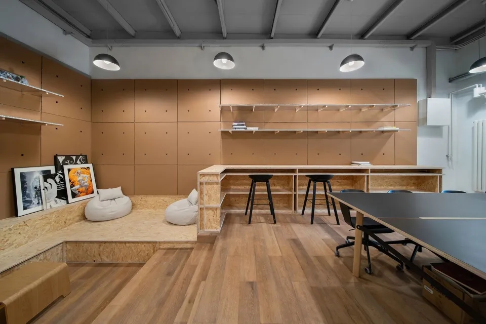 场地现状是一个暗黑调的工业风办公空间,空间设计同样由我们操刀,当时的出发点是最大程度保留场所精神,当时业主尚处于初创阶段,希望将个性的自我表达融入工业厂房的质朴粗粝氛围中。而这次改造,业主的诉求是希望在最短时间内,最小的改动下,创造一个明快简洁,更加注重员工体验的办公空间,同时也希望有过去空间的痕迹。
