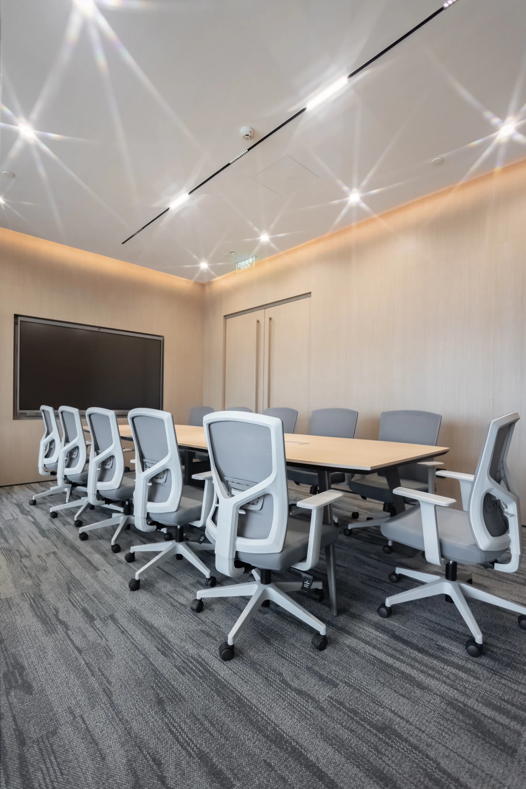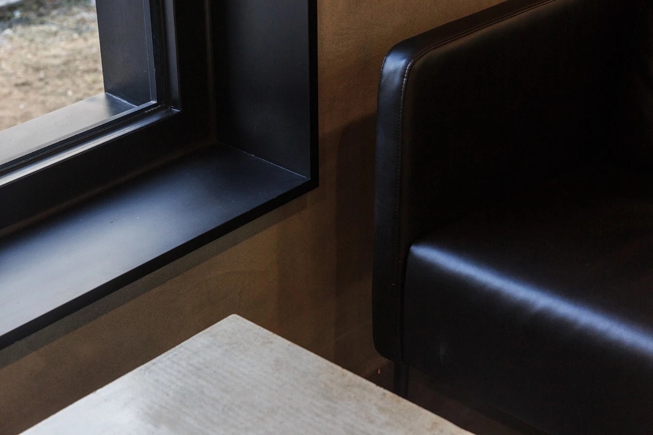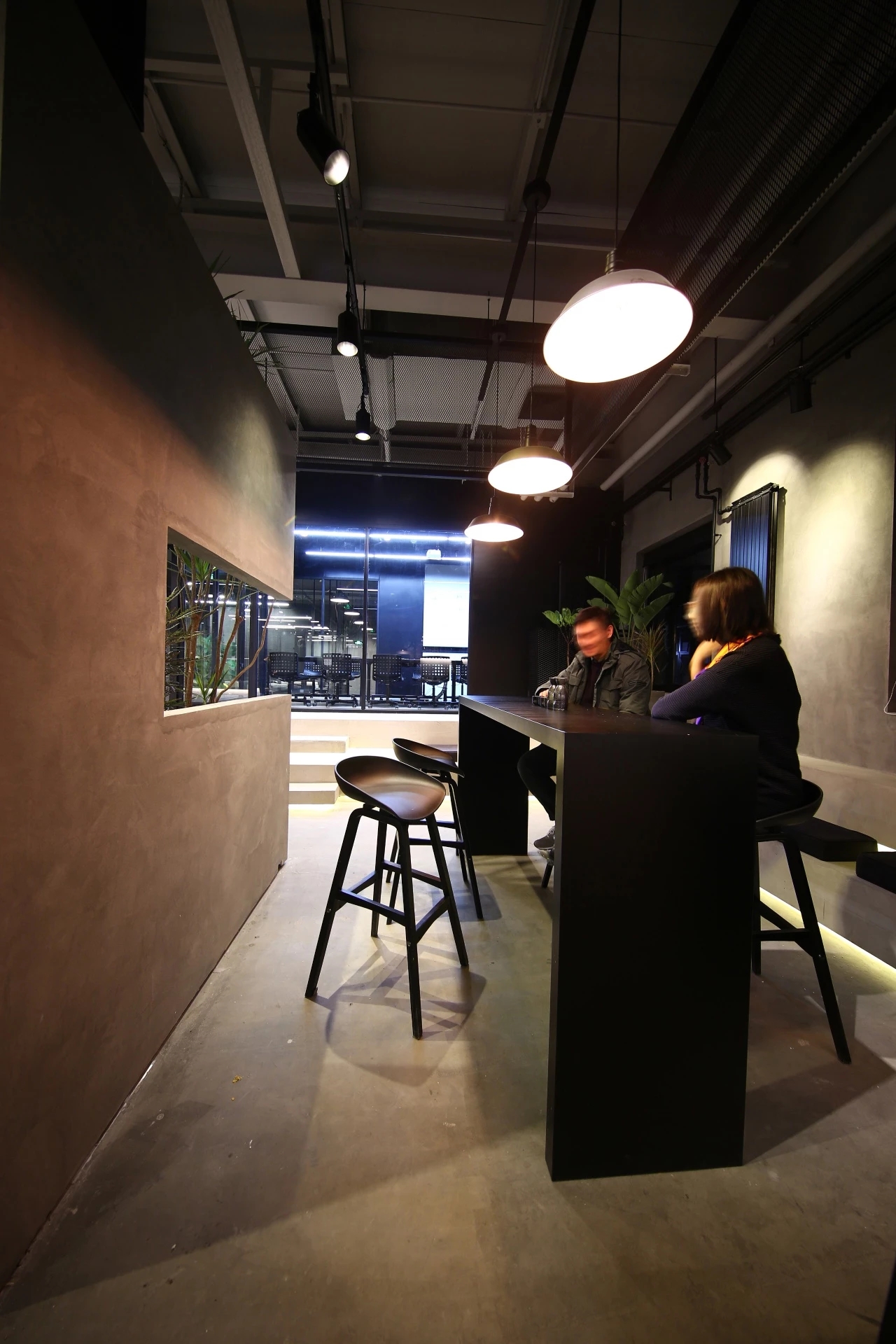 在材质的选择上,为尊重原有的场所精神及企业风格,本案选用了混凝土及金属作为空间的主要材质。地面及墙面均采用混凝土质感的水泥漆及自流平,形成粗粝质朴的空间基调。局部吊顶及工位旁的隔断采用黑色金属网,在不阻隔视线的同时,划分出功能分区并体现空间的序列感和仪式感。