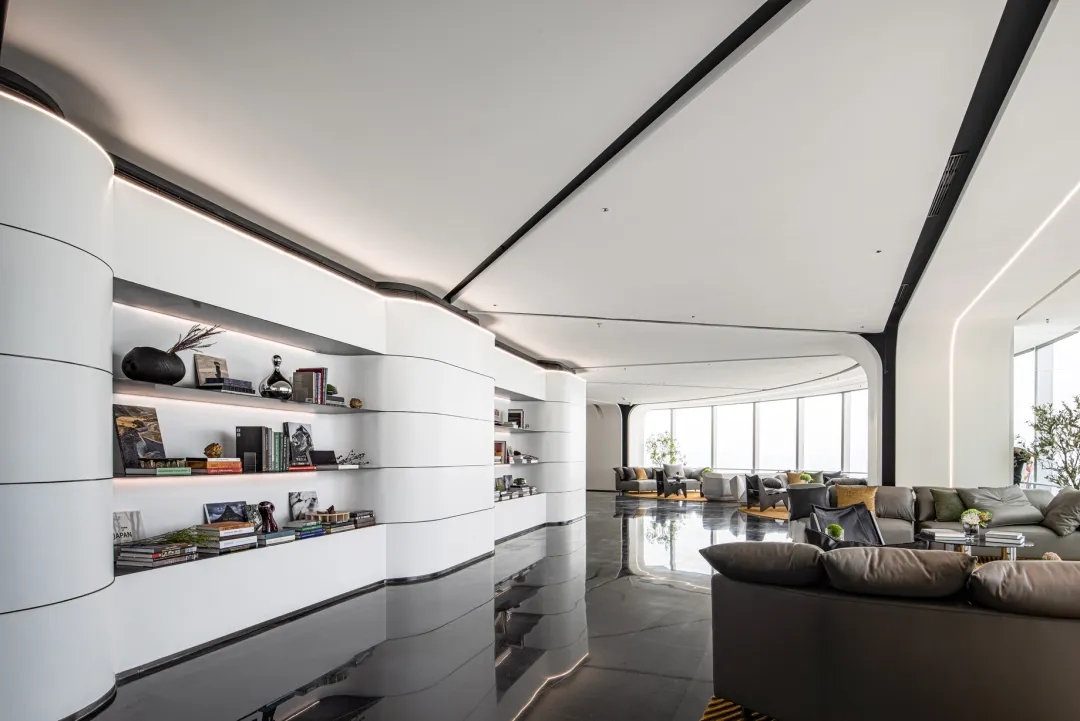 中洲未来办公室旨在激发人们以不同的模式工作,空间设计鼓励人们有更多的社交和协作,将办公室重塑为社交聚会空间,而不是高效的工作空间。它将容纳一系列多变的空间,以适应中洲湾办公室当前和未来的功能需求。空间规划结合展览、互动、会议、健身、休闲等需求,集工作、休息、吃喝、聊天、运动于一体,这些空间是可以根据不同的需要混合或划分。创意团队将来到未来办公室见面,共同合作,或在其中一个展览空间展示他们的作品,就像一个鼓励人们分享和协作的新平台。
