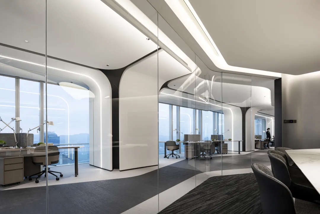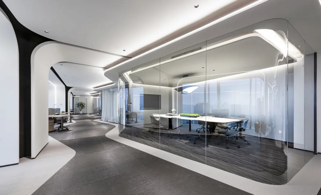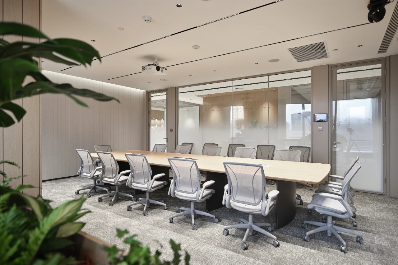 在会议空间中,我们细致地考量了企业的文化和需求,摆放绿植缓解压力感;墙面采用吸音板和烤漆玻璃,兼顾隔音和书写功能;对遮蔽性的重视,确保会议信息的私密性;富有趣味的空间安排,则彰显了品牌的活力和创意。同时,会议室运用了电子预约管理系统,为企业会议空间的使用增添灵活性和多样性,也满足员工对会议空间的便捷和私密需求。