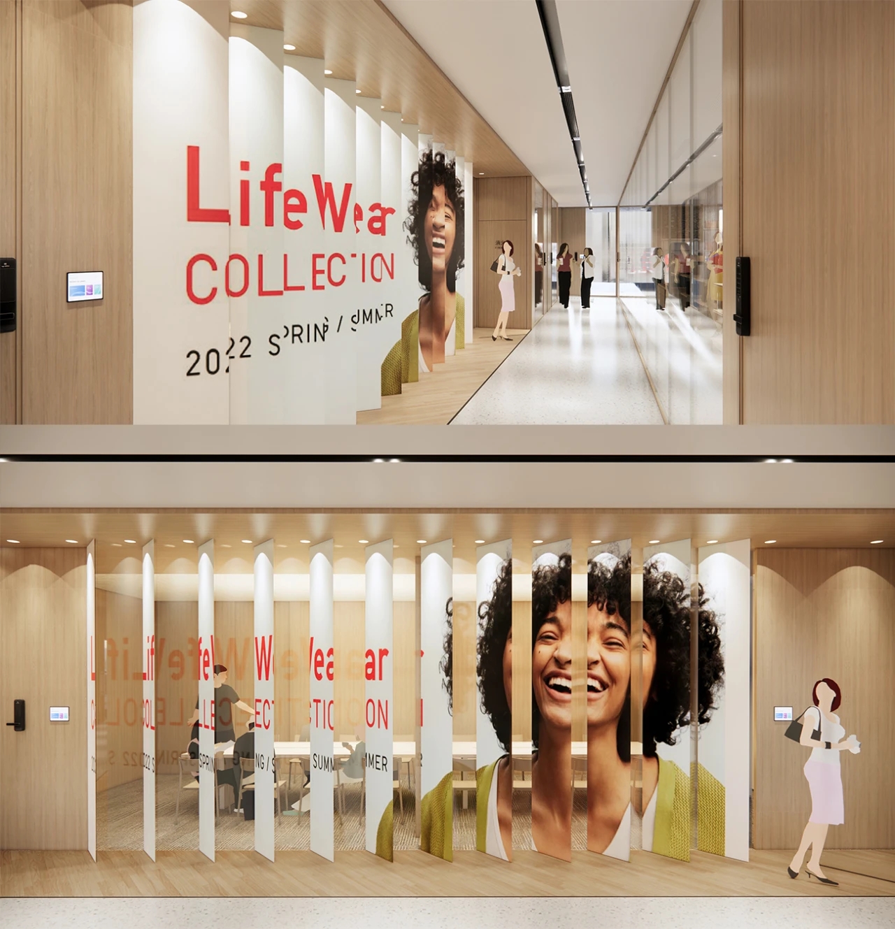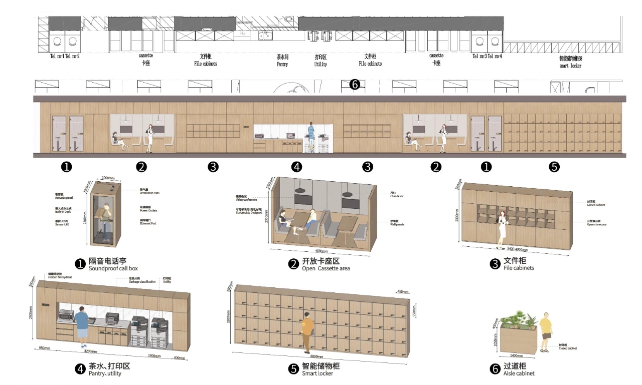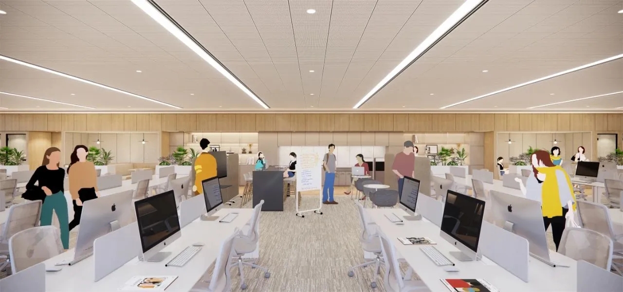 作为办公区软隔断的交流区域,将方便员工灵活沟通,同时也不破坏办公区所营造的专注感。而利用交流空间开放的特性,部门可在此展示部门成果或设置员工感谢墙,营造空间归属感,作为维系员工、部门之间情感的作用。
