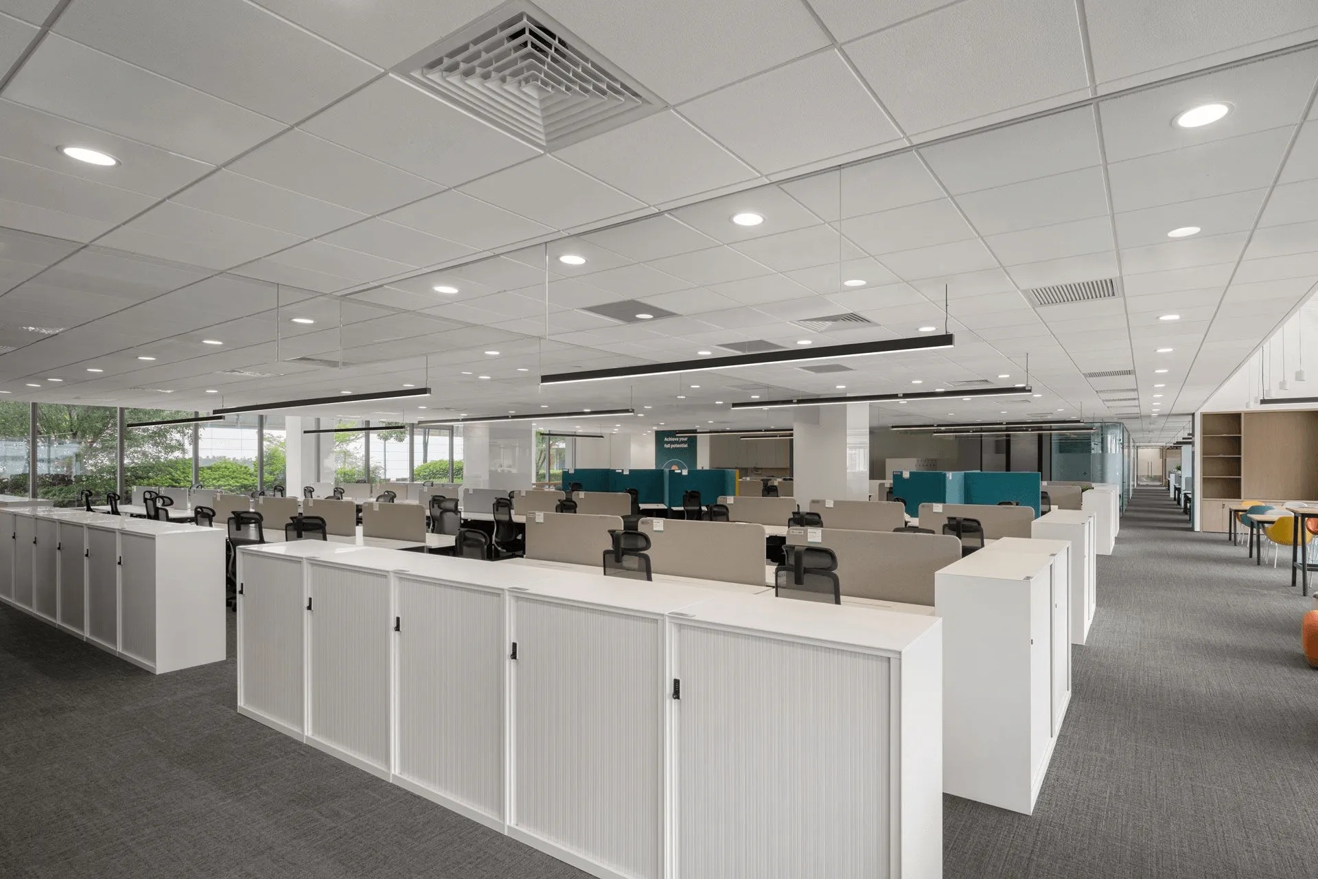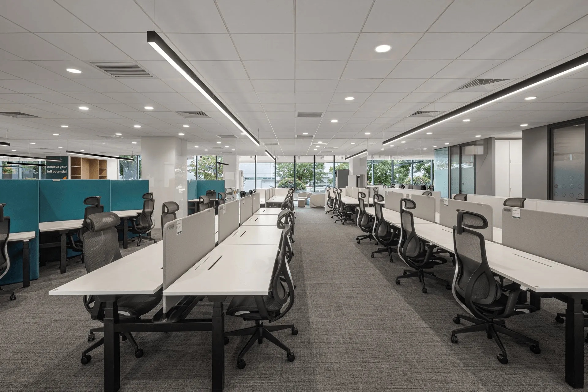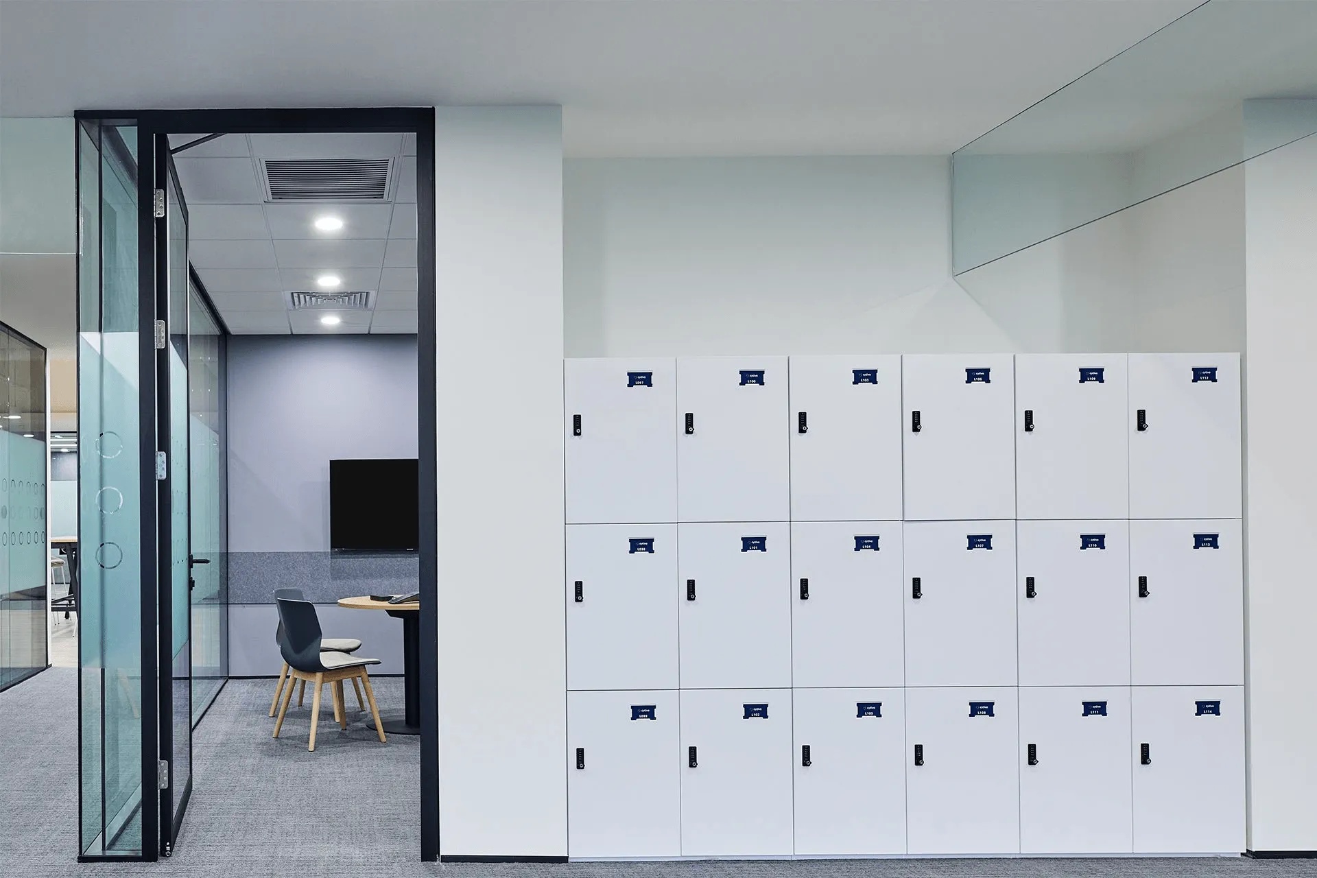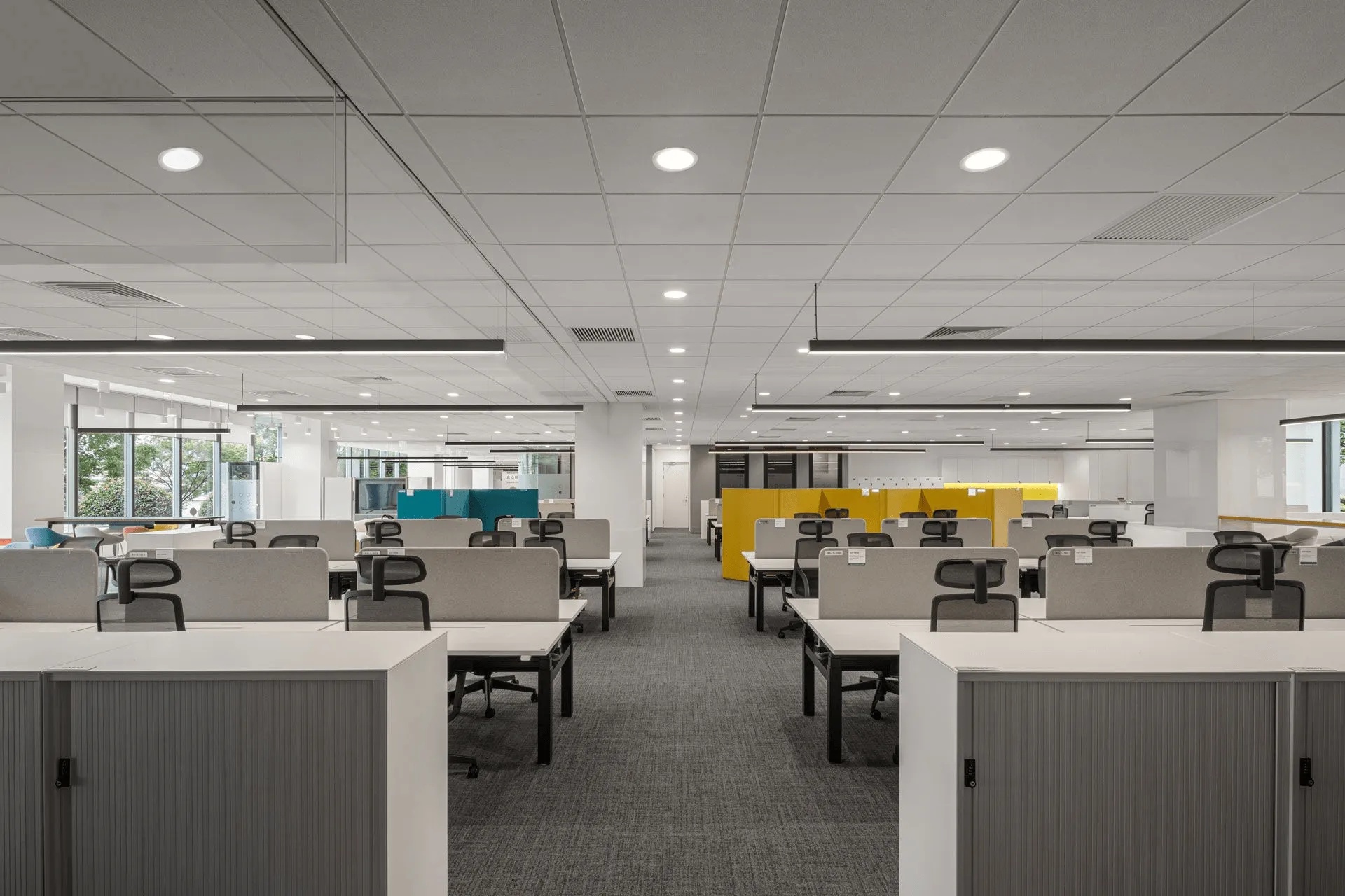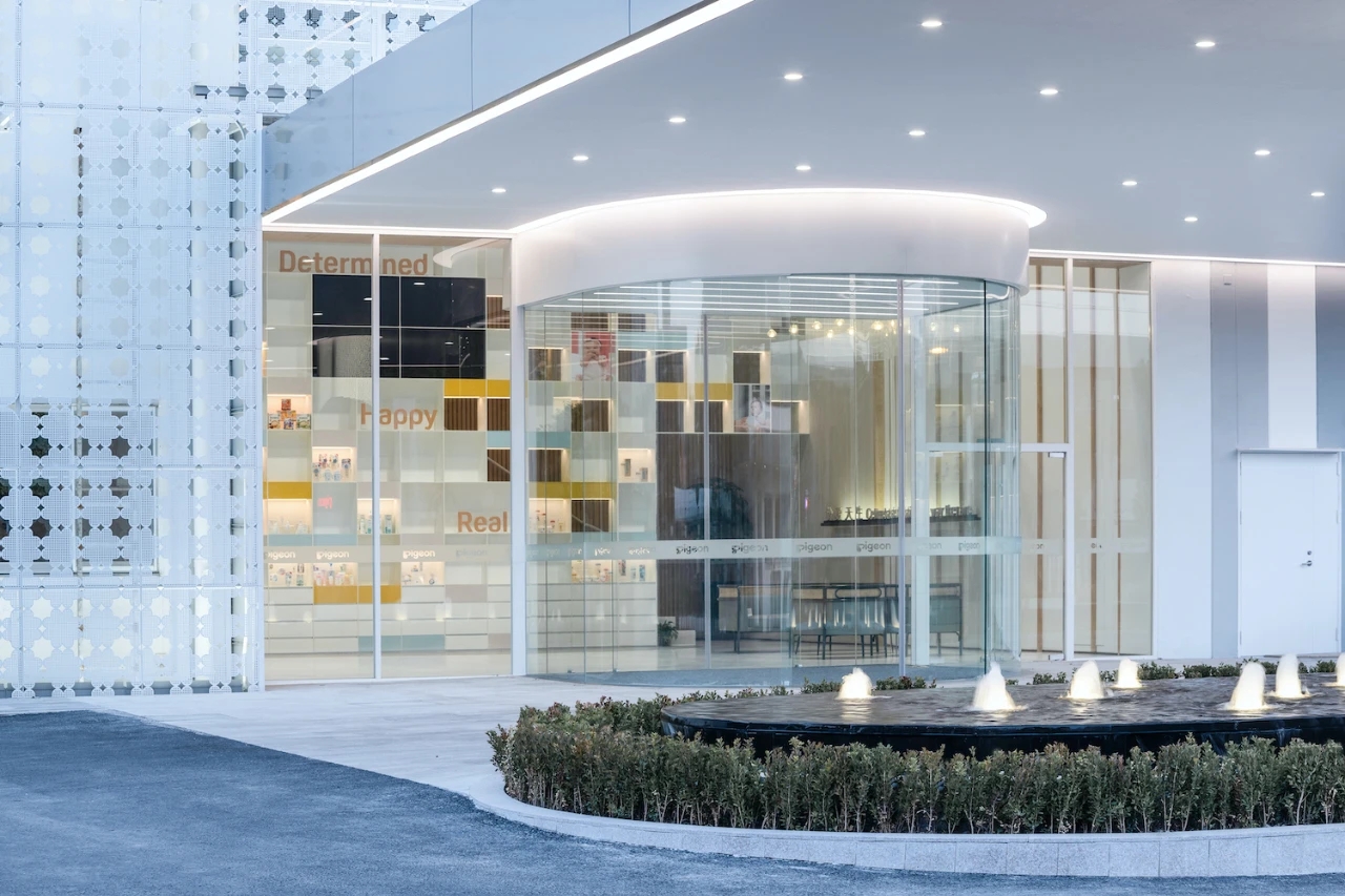 建筑空间被核心筒贯穿形成环形动线,根据空间机能演变为接待、办公两个内部环线,提供了最便捷的空间体验。建筑层高东高西低,且东侧拥有开阔视野。于是,由一个造型新颖的天花结构将人向东侧大堂引导,开放创新的国际化品牌印象随之呈现。内部空间融合了精湛的工艺及高雅的陈设布置,营造出稳重大气的企业专业形象。
