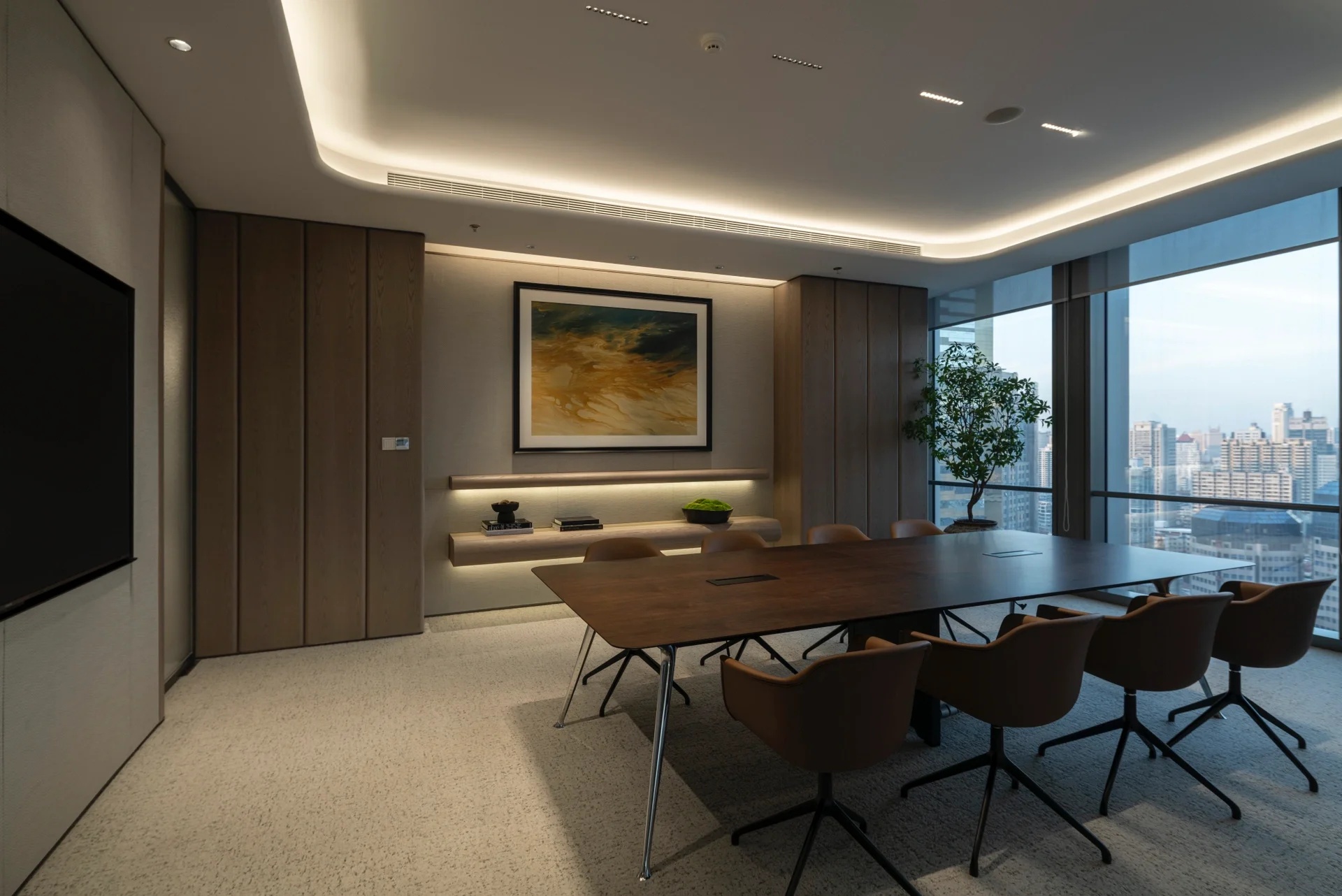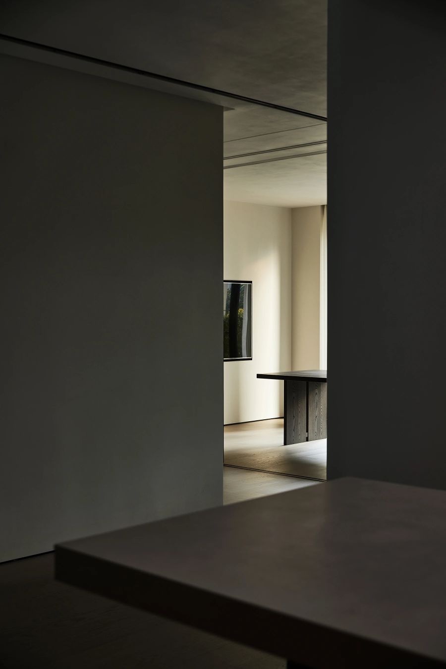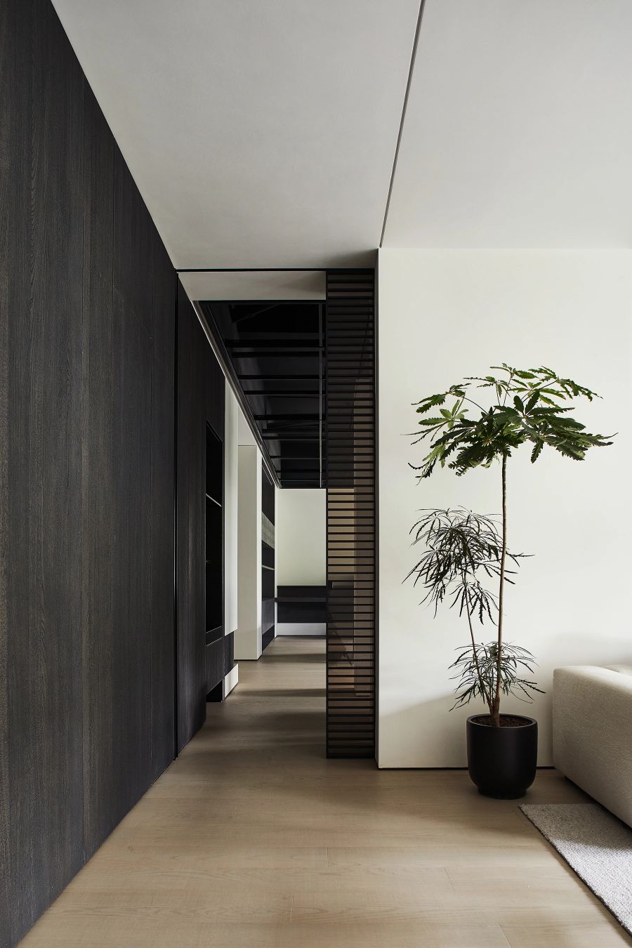 设计师相信建筑的生命感来自其与自然的互动,当室外的绿经过方正的窗落于黑白色系的空间,场景瞬时鲜活。在刻意简化空间内的装饰存在之后,人们的注意力自然被引至户外与对细节处的考量。设计师希望办公空间不光是浅显地用于办公与待客这种直接的商业需求,更是能够体现对于空间设计的态度与理解。