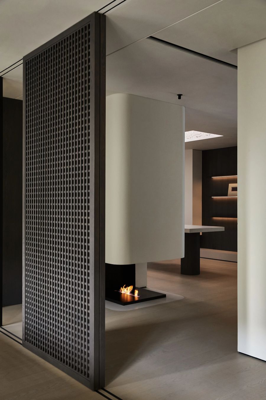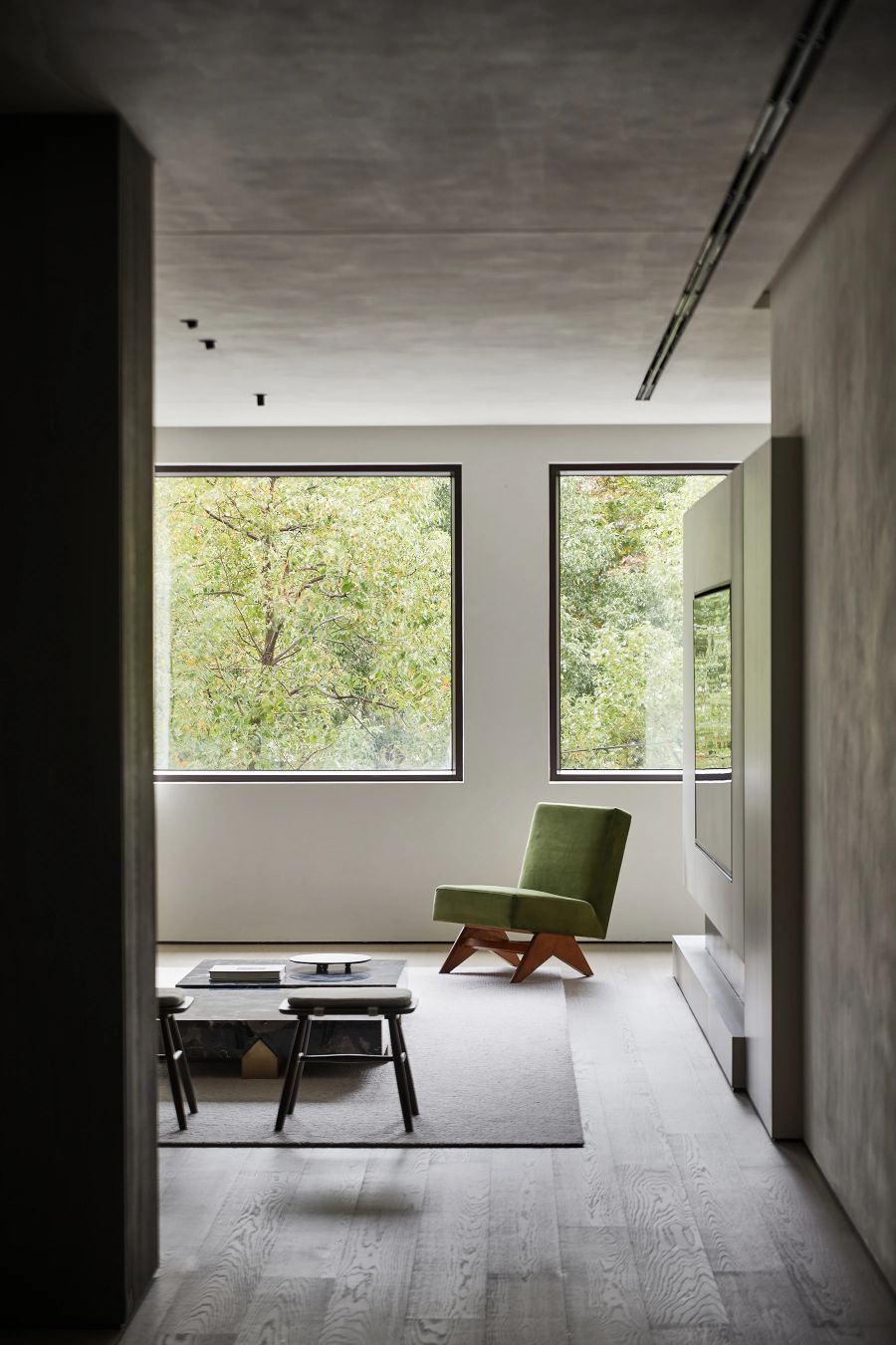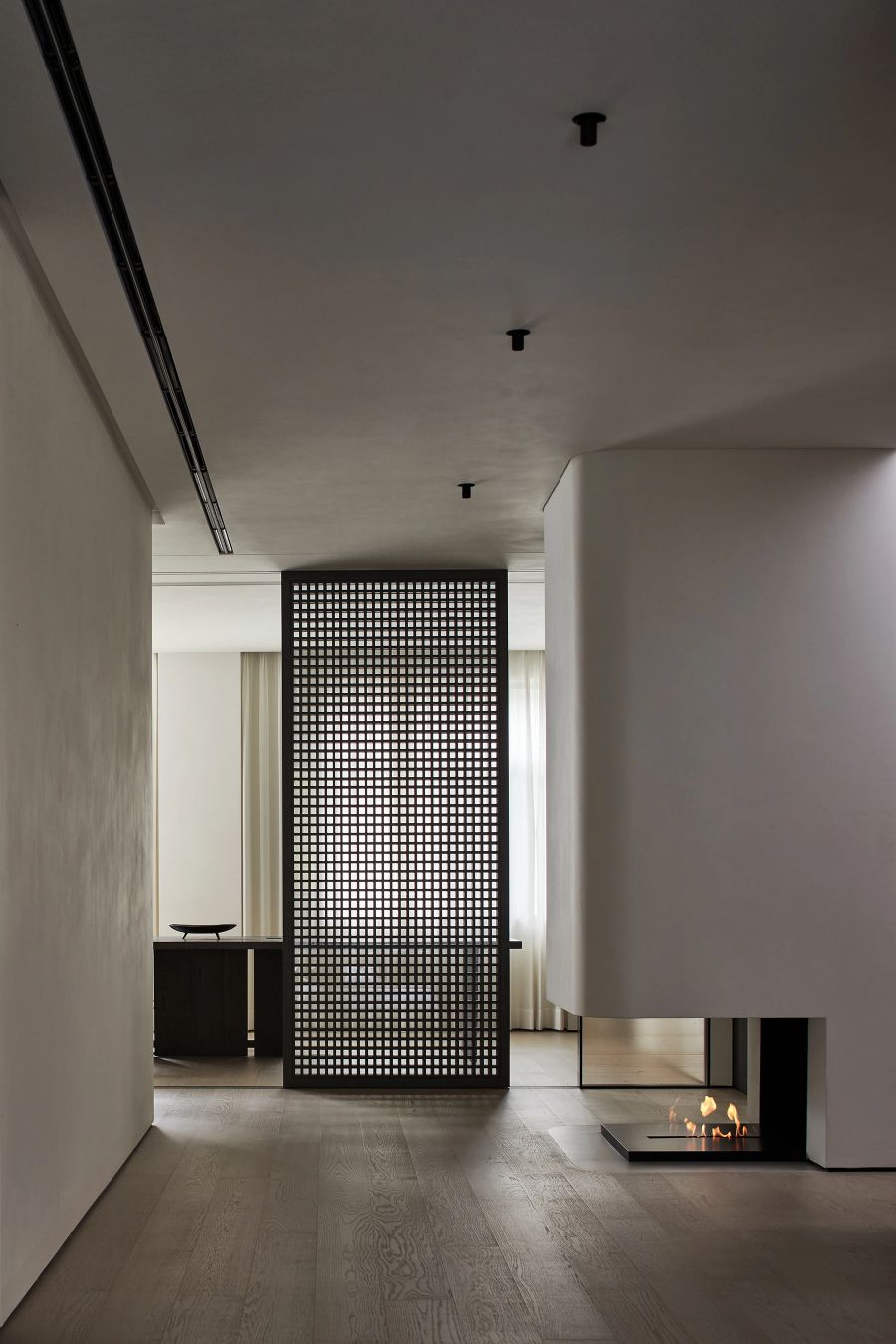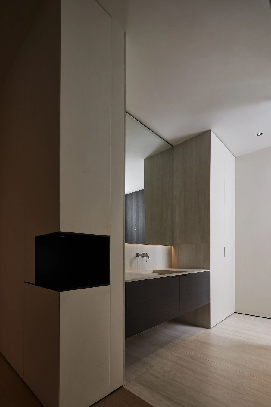 设计师相信建筑的生命感来自其与自然的互动,当室外的绿经过方正的窗落于黑白色系的空间,场景瞬时鲜活。在刻意简化空间内的装饰存在之后,人们的注意力自然被引至户外与对细节处的考量。设计师希望办公空间不光是浅显地用于办公与待客这种直接的商业需求,更是能够体现对于空间设计的态度与理解。