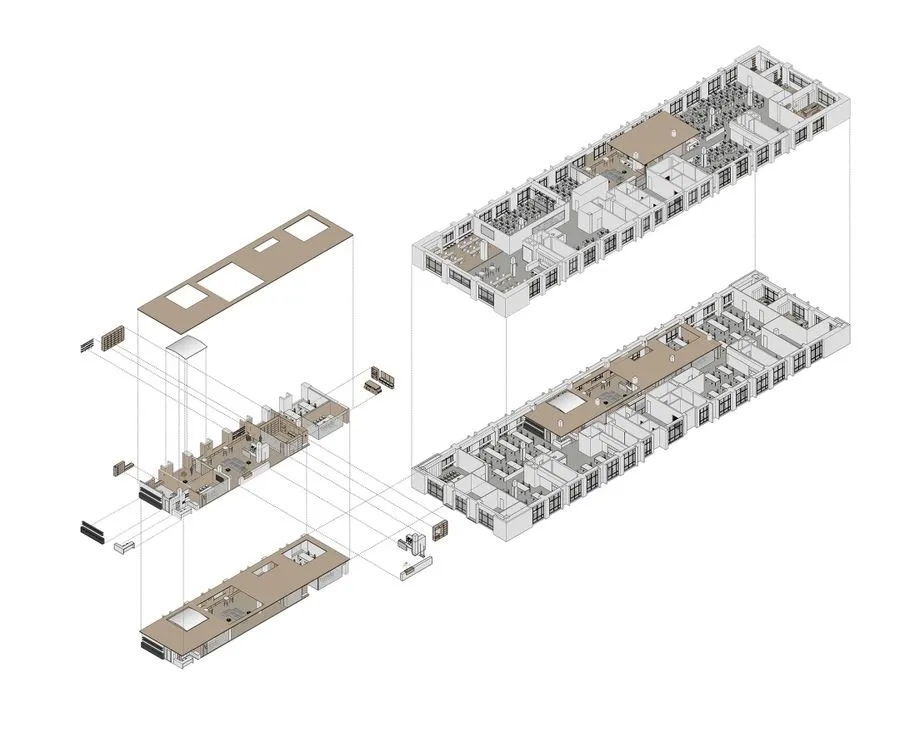 设计师试图用空间的语言讲述一个由暗及明,由旧逐新的设计故事,而在各个空间中行走观摩的过程,也正寓意着设计过程中的等待、蛰伏、困顿乃至涅槃而生。