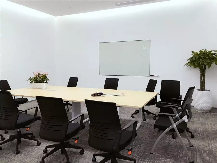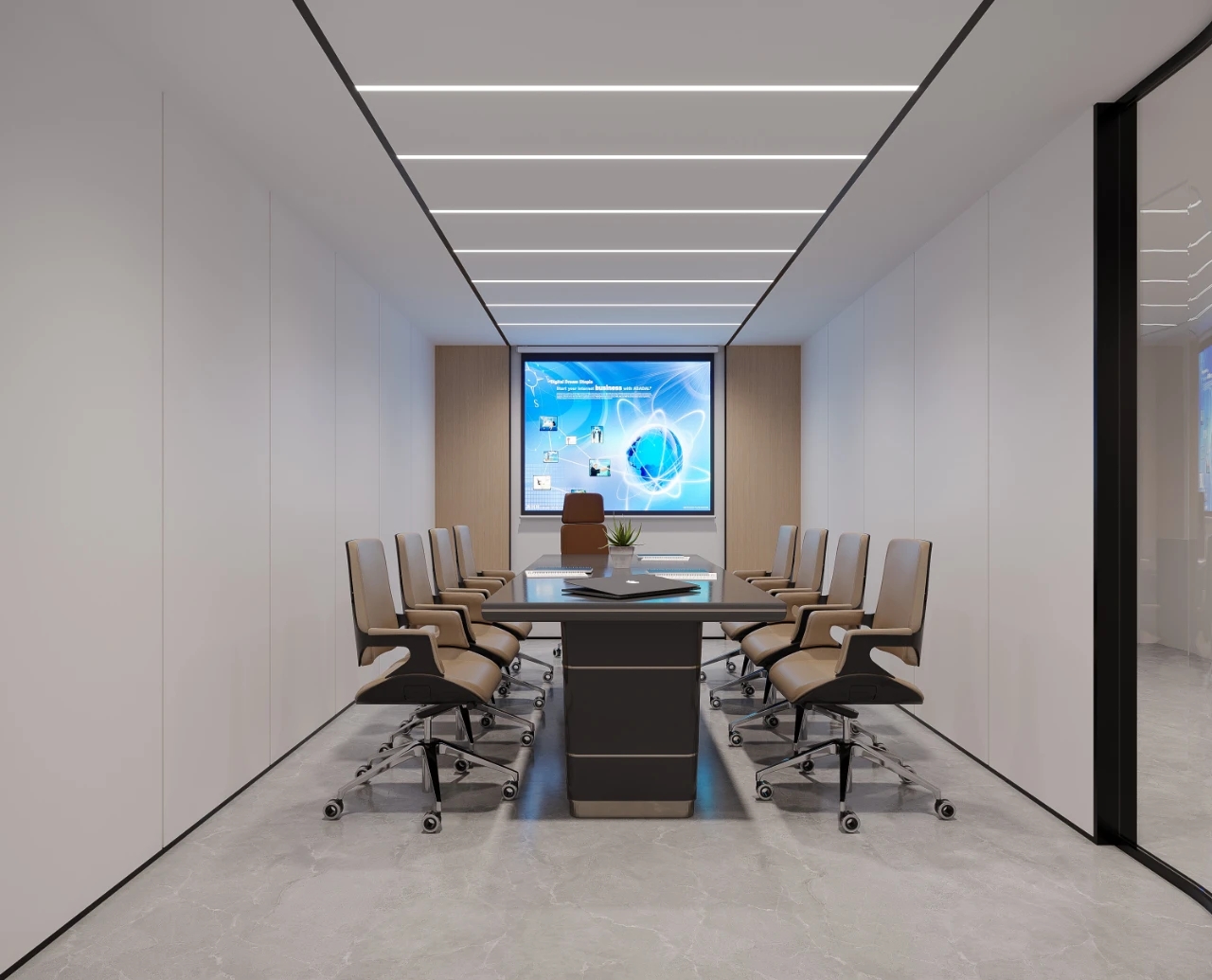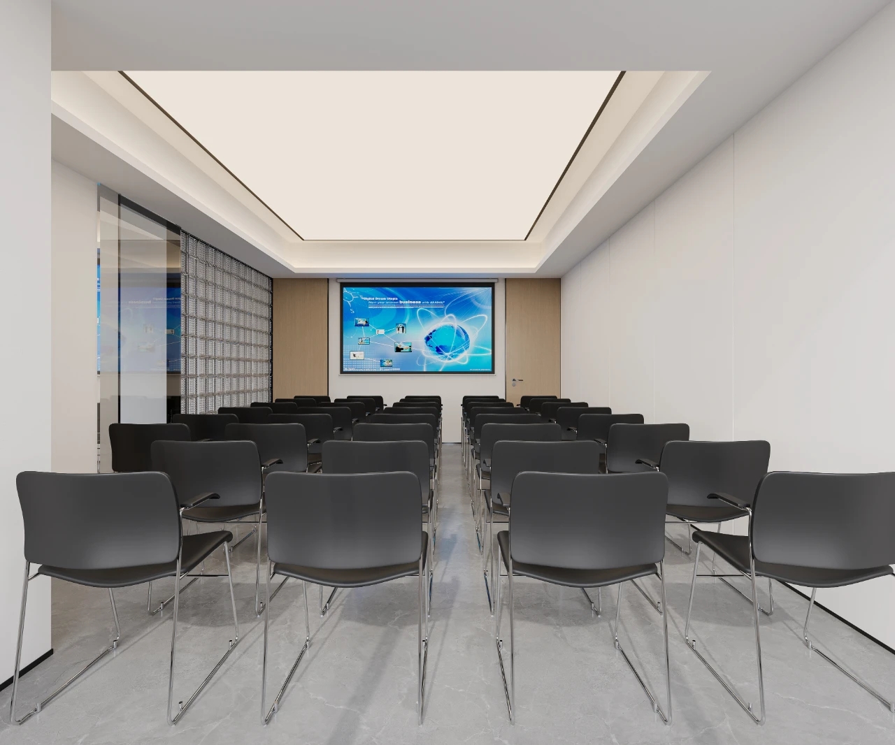 两个会议室统一设计元素,简约地使用原木与白色的材料,以白色衬托原木的温馨,大气又简约的视觉感扑面而来。